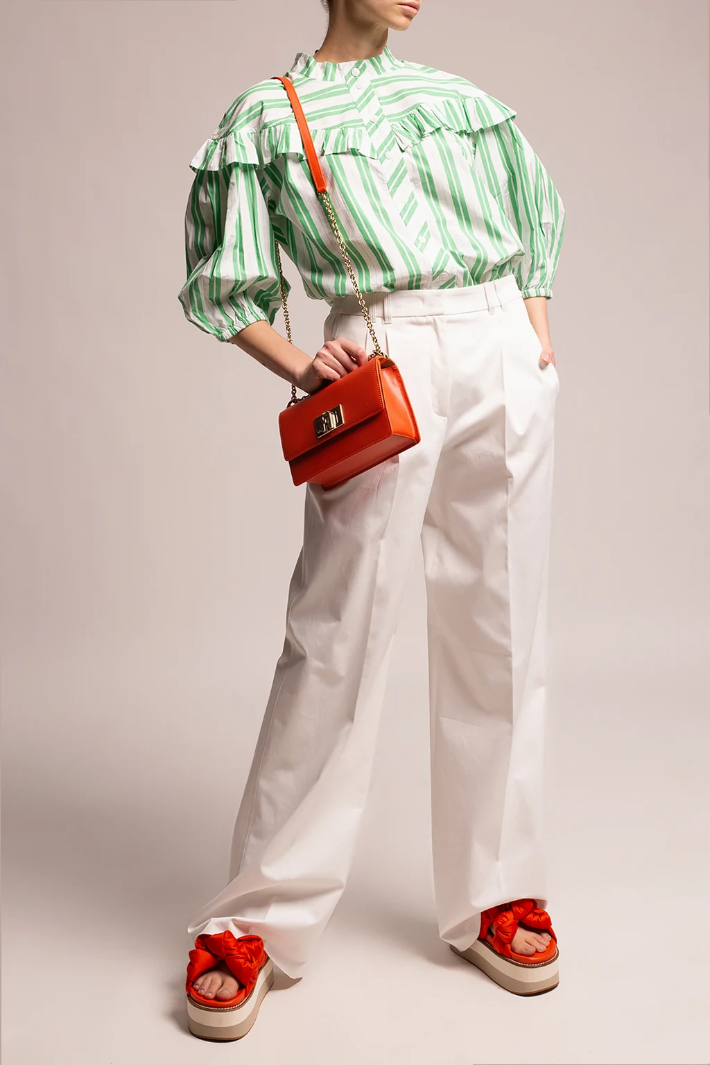 Kremowe, bawełniane spodnie Agnona. Zapinane na zamek, guzik oraz haftkę. Z przodu dwie wsuwane kieszenie. Wysoki stan. Proste nogawki.