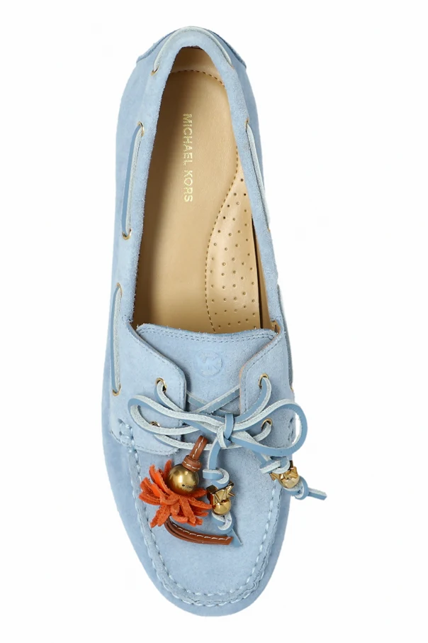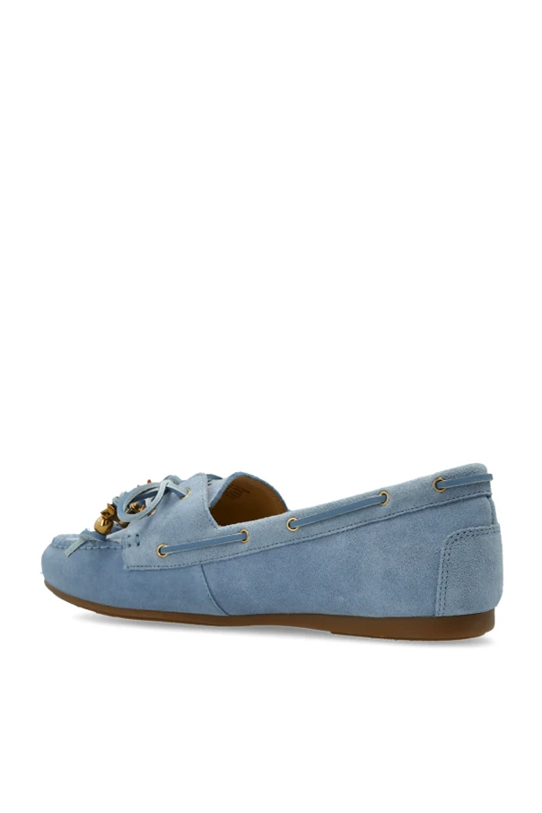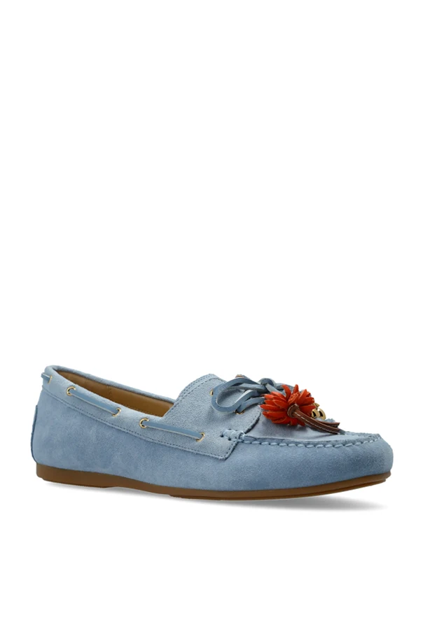 Zamszowe mokasyny „Fallon” z ekskluzywnej kolekcji Michael Michael Kors to wyraz elegancji w swojej najczystszej formie. Utrzymane w niebieskim odcieniu, zachwycają klasyczną, zaokrągloną linią oraz niską, subtelną cholewką. Miękki, wysokogatunkowy zamsz, zastosowany jako warstwa zewnętrzna, zapewnia luksusowy wygląd oraz przyjemną w dotyku, aksamitną fakturę, podkreślając minimalistyczny charakter mokasynów.