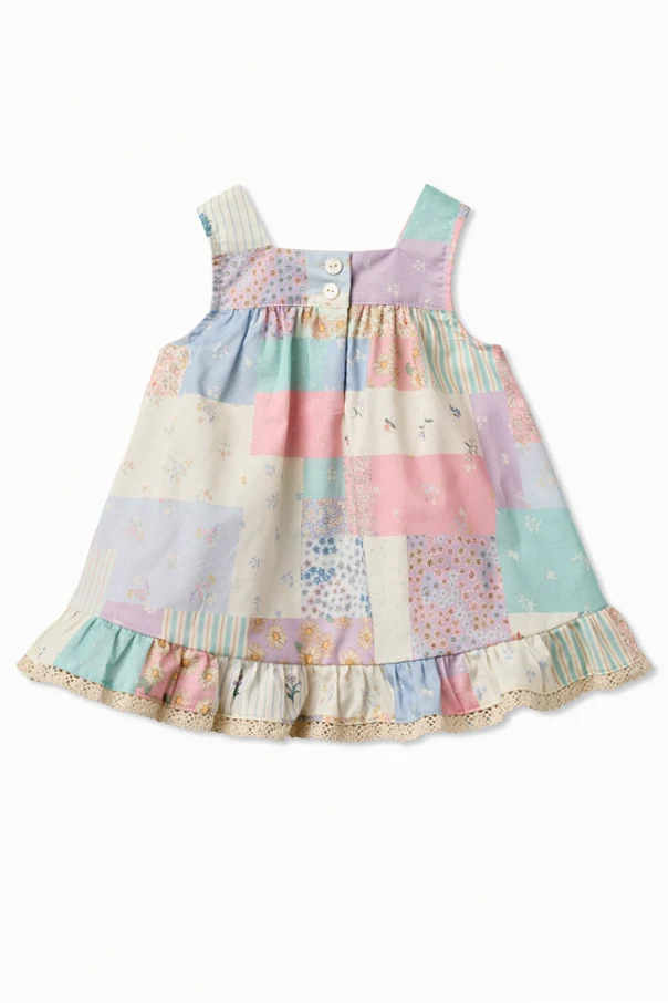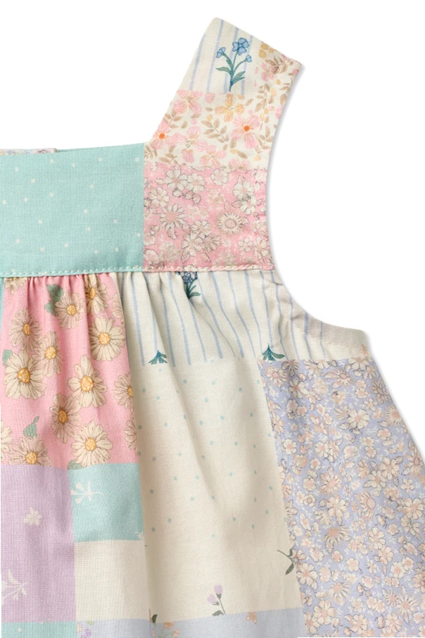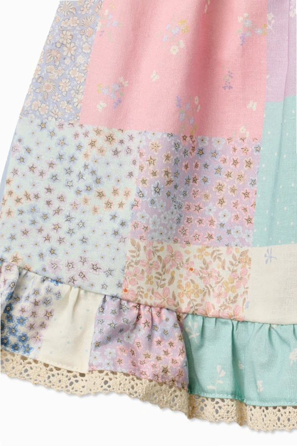 Oczarowuje patchworkowym wzorem – delikatne kwiaty, groszki, subtelne paseczki i motywy roślinne, tworzą harmonijną mozaikę w nastroju multikolor. Naturalna bawełna sprawia, że sukienka jest kusząco miękka, oddychająca oraz łagodna dla wrażliwej skóry dziecka.