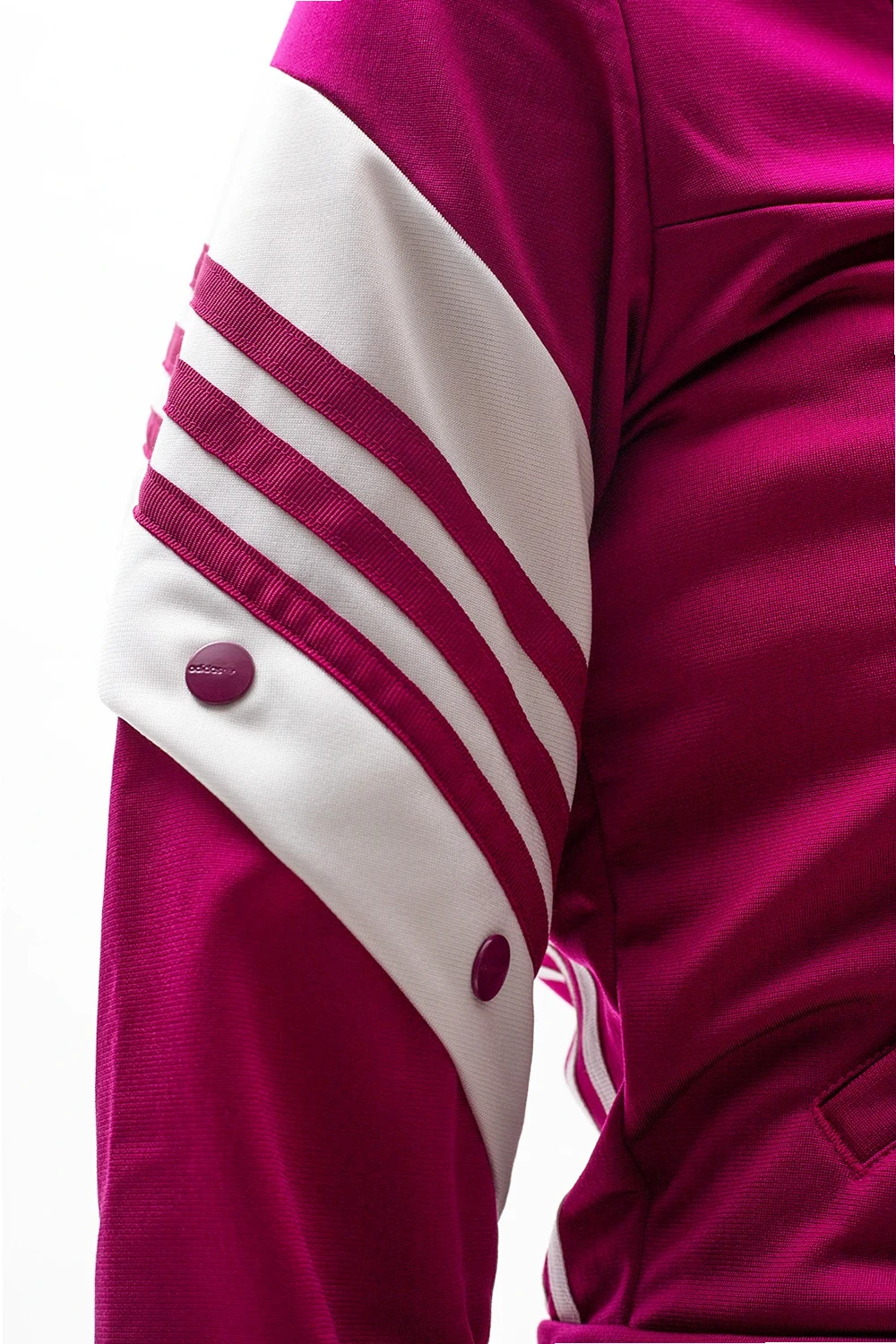Bordowa, krótka bluza ADIDAS Originals x Daniëlle Cathari. Zapinana na zamek. Ozdobiona wyszytym logo oraz wstawkami z charakterystycznymi dla marki potrójnymi paskami w kolorze biało-czarnym. Dwie kieszenie: zapinana na zamki oraz zapinana na zatrzask. Rękawy zakończone ściągaczami. Produkt został wykonany z pochodzącego z recyklingu materiału, co pozwala oszczędzać zasoby naturalne i zmniejsza emisje szkodliwych dla środowiska substancji.