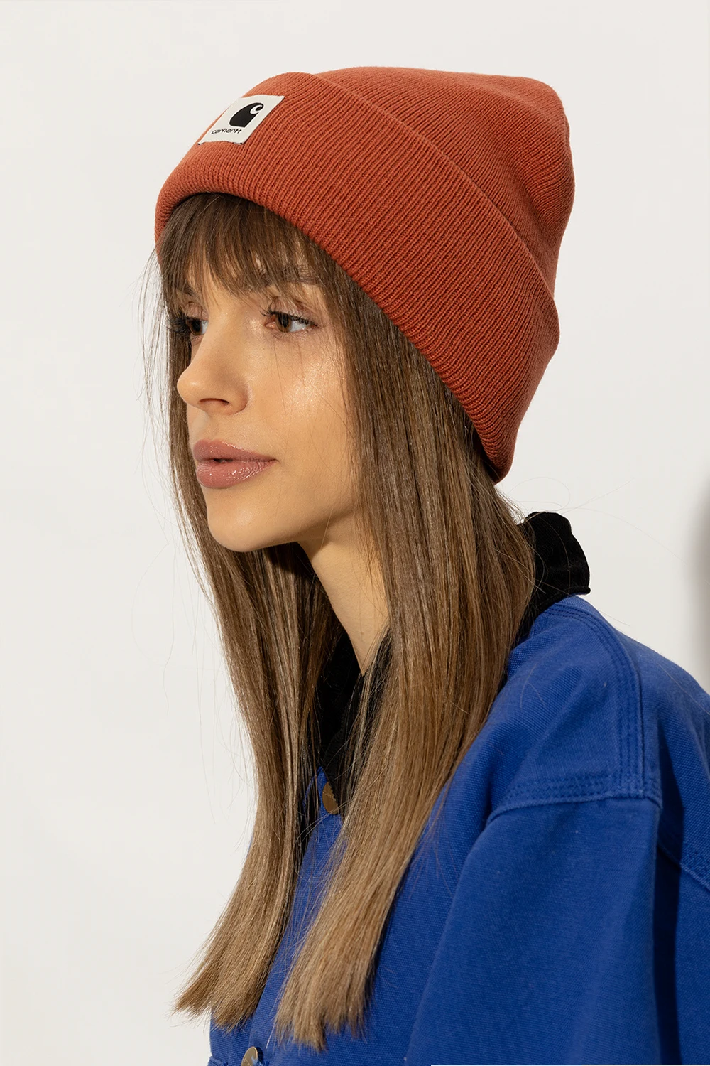 Pomarańczowa czapka, model ‘Ashley’ Carhartt WIP. Z przodu naszywka z logo.