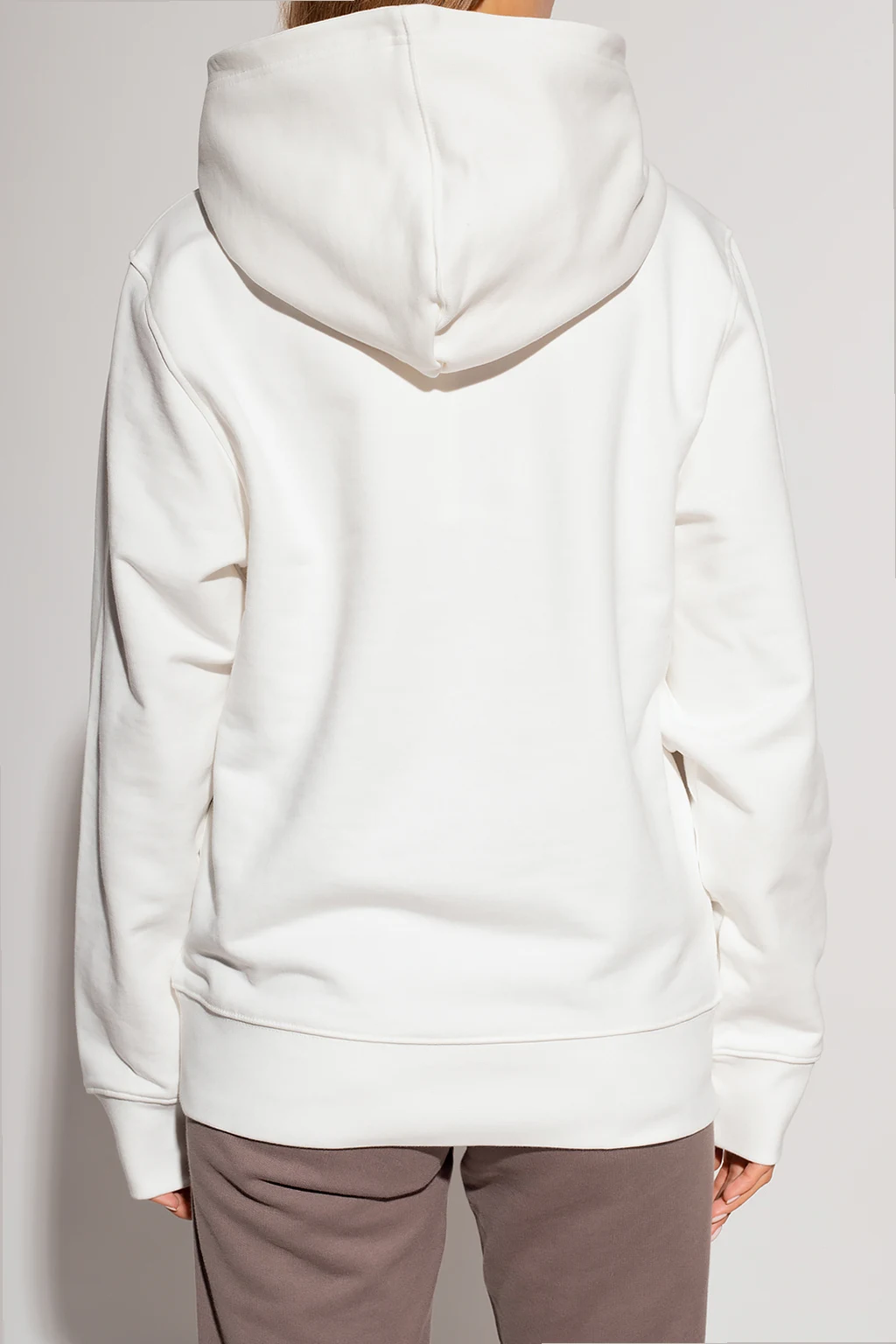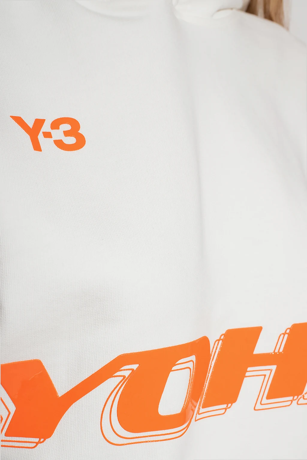 Biała bluza Y-3 Yohji Yamamoto. Wykonana z bawełny. Ozdobiona pomarańczowym nadrukiem z logo. Dół i długie rękawy wykończone ściągaczem.