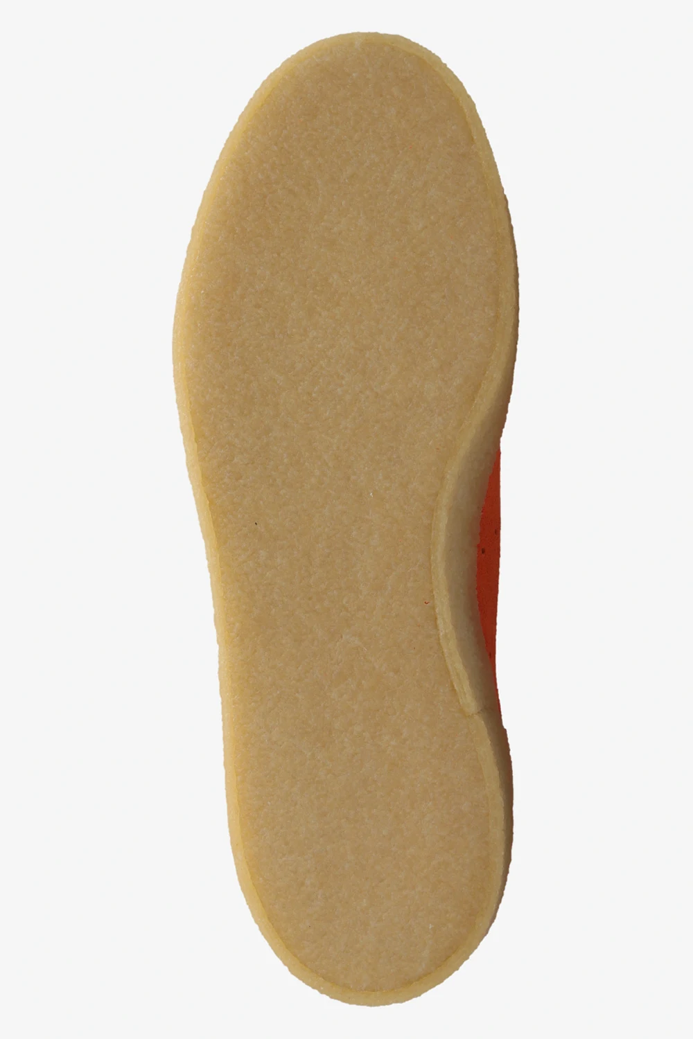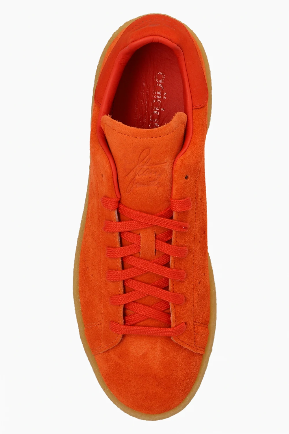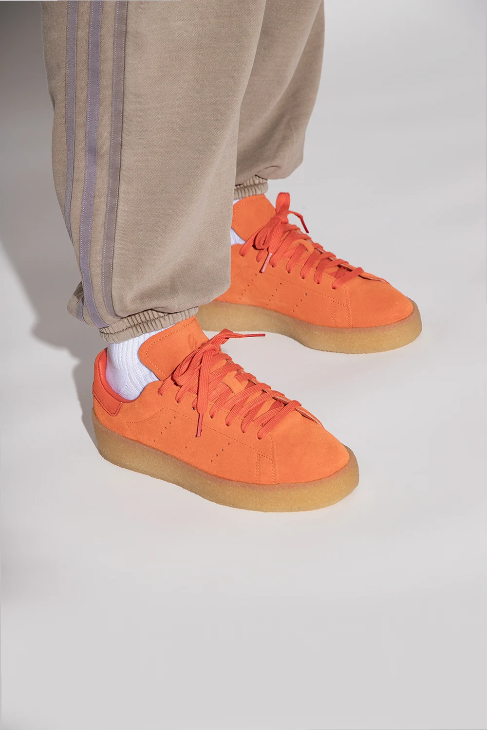 Pomarańczowe, sznurowane buty sportowe, model ‘Stan Smith Crepe’ ADIDAS Originals. Wykonane ze skóry. Ozdobione charakterystycznymi perforowanymi trzema paskami oraz aplikacją z logo. Brązowa, gumowa podeszwa.