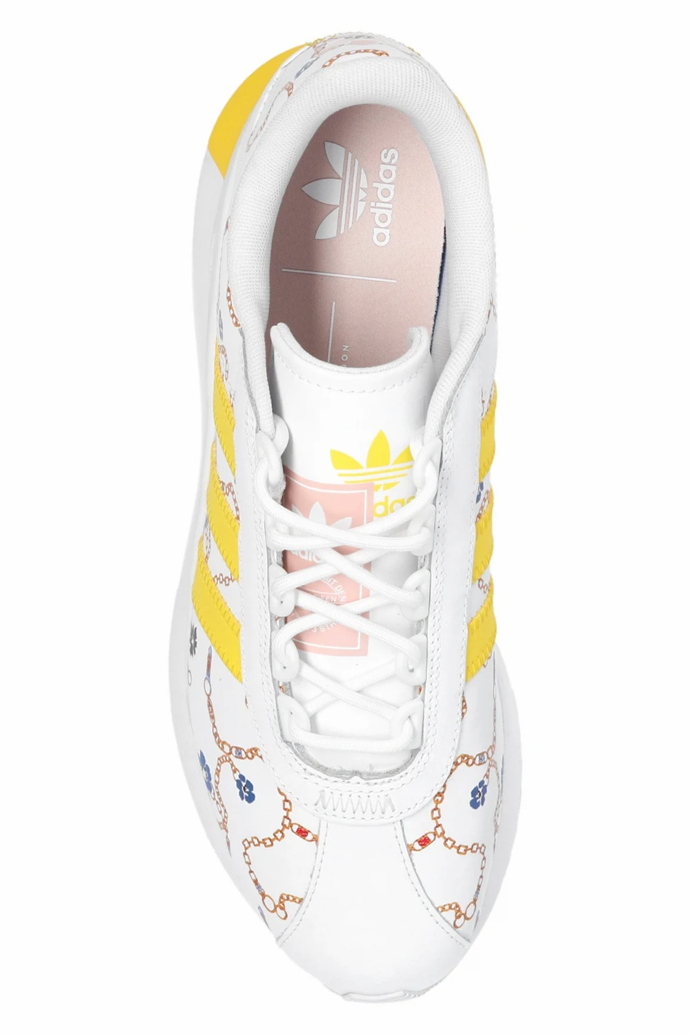 Białe, sznurowane buty sportowe, model ‘SL Andridge’ ADIDAS Originals x HER Studio London. Wykonane ze skóry. Nadrukowany wzór zaprojektowany specjalnie dla kolekcji. System amortyzacji z pianki EVA. Biała, gumowa podeszwa. Zainspirowane biegowym modelem vintage z lat 70.