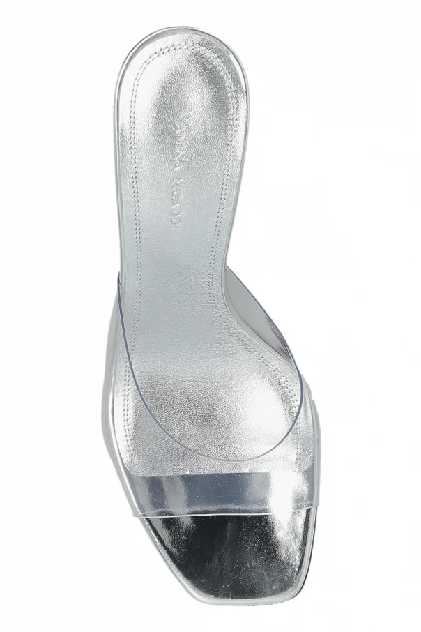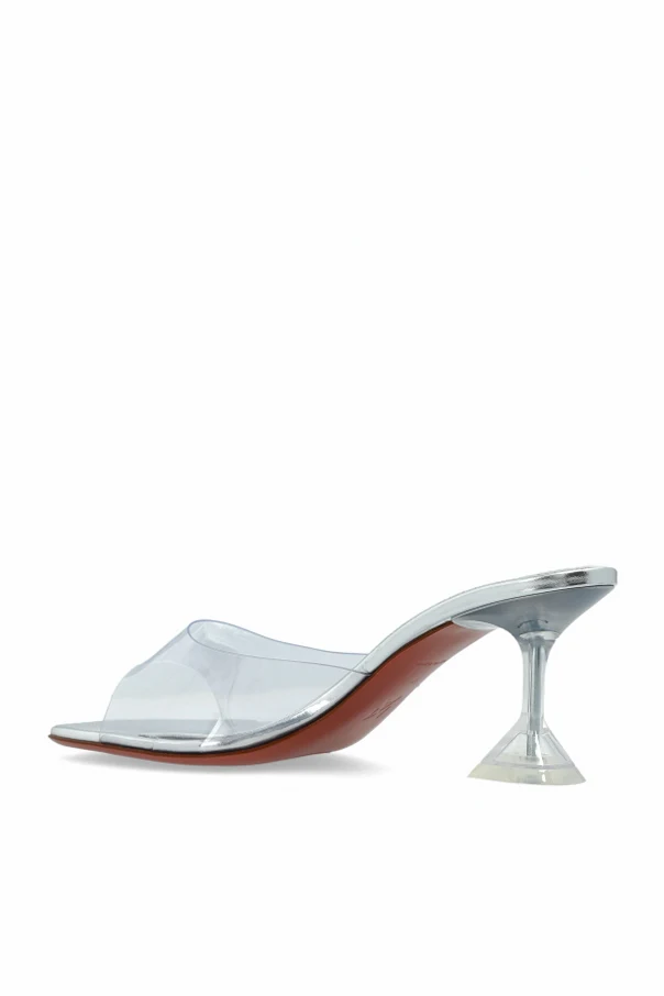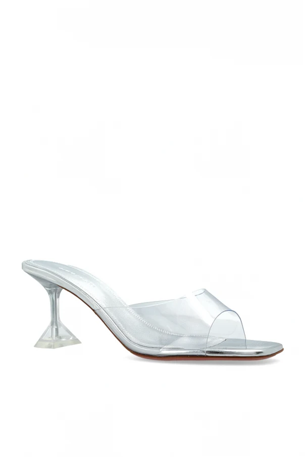 Klapki na obcasie "Lupita" to wyrafinowany hołd dla nowoczesnej elegancji autorstwa Amina Muaddi. Model typu mules, z odkrytą piętą oraz palcami, zachwyca minimalistyczną formą i futurystycznym sznytem. Przezroczysty, elastyczny pasek na przodzie delikatnie podkreśla linię stopy, urzekając subtelną prowokacją, zaś kwadratowy, otwarty profil palców wpisuje się w najnowszy kanon luksusu.
