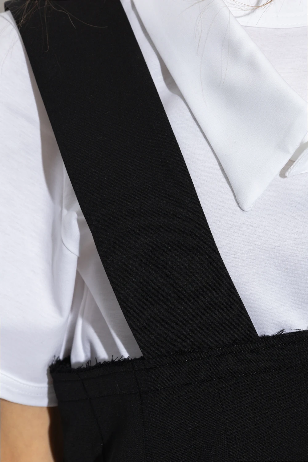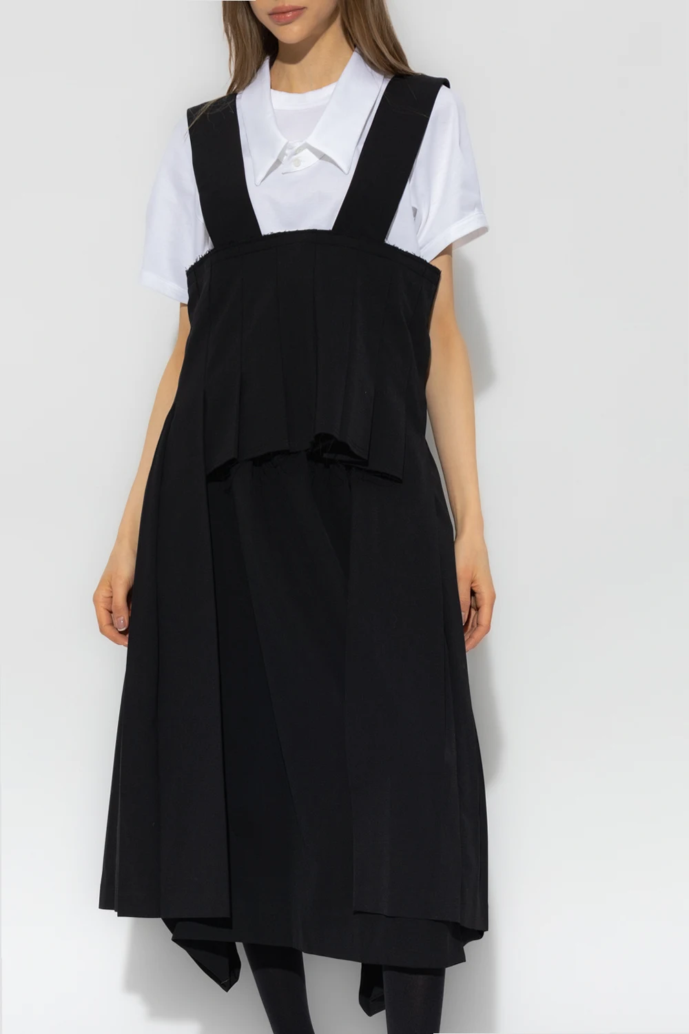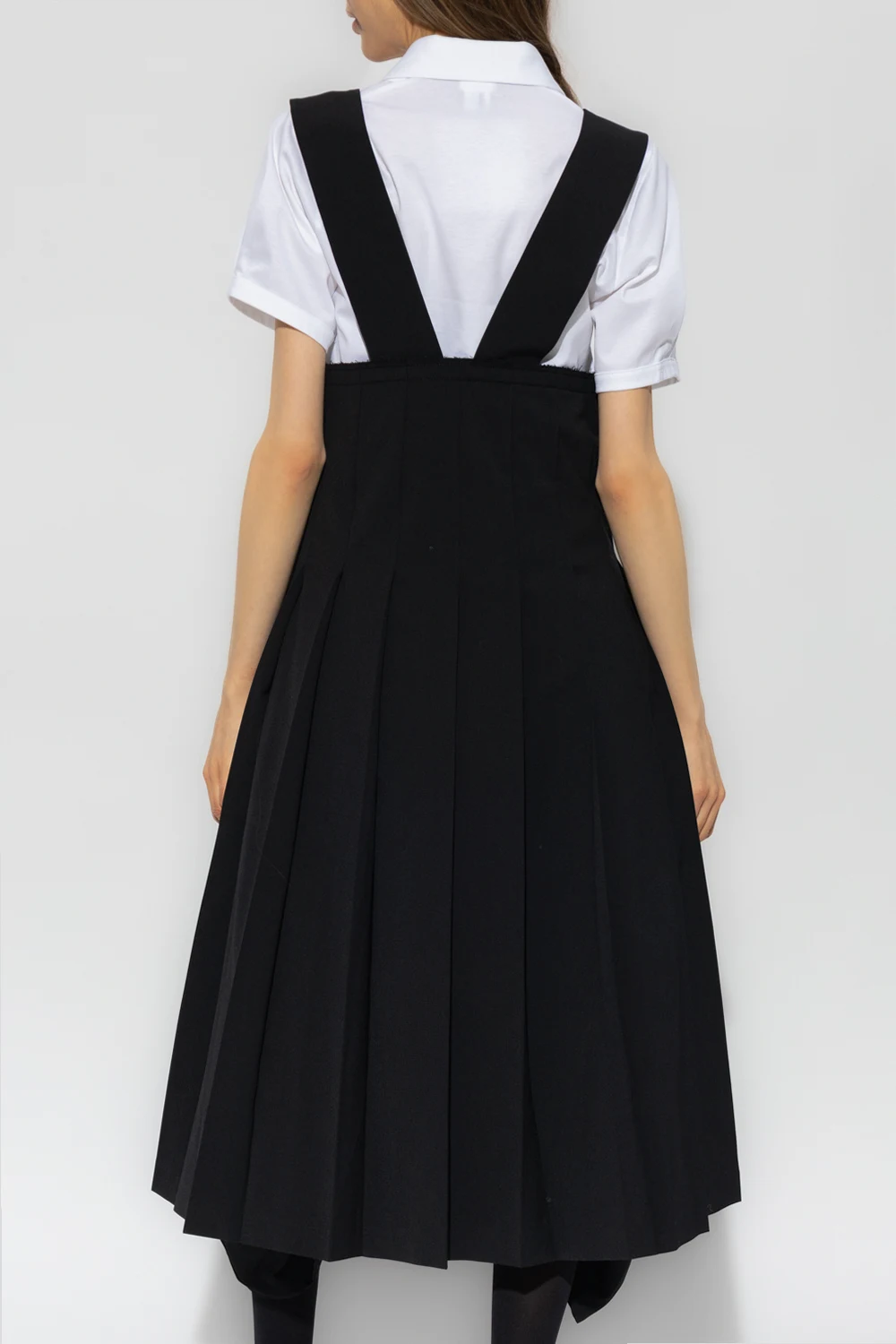 Czarna, plisowana spódnica CDG by Comme des Garcons. Dekoracyjne szelki. Dwie kieszenie wsuwane. Asymetryczne wykończenie.