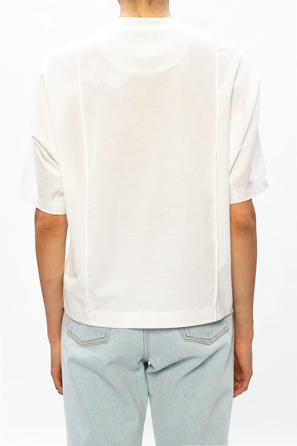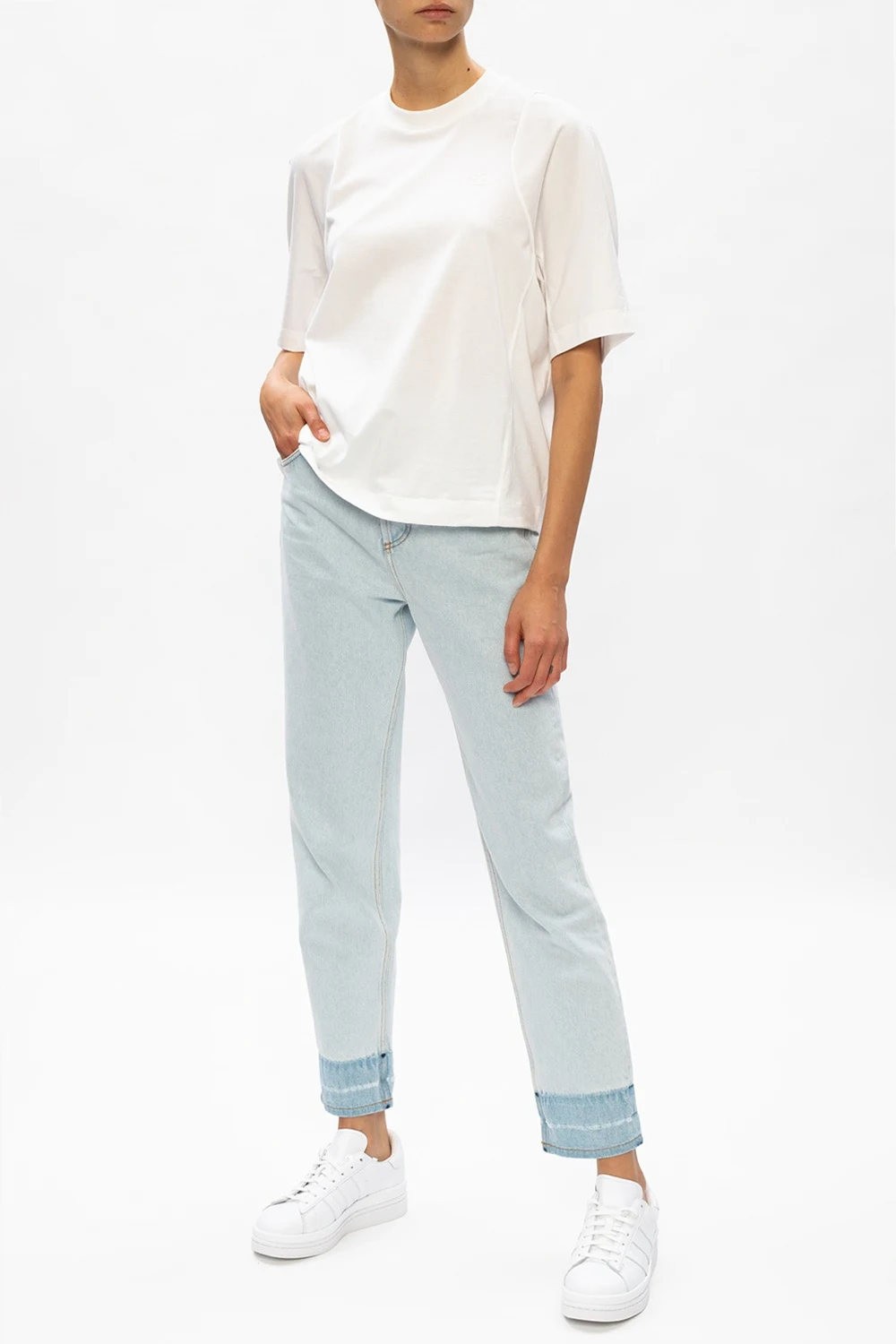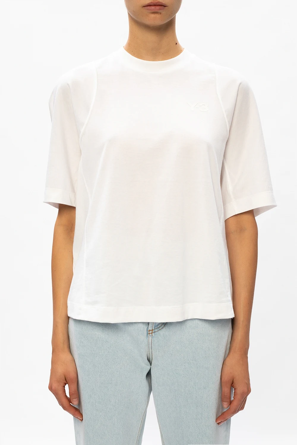 Biały, bawełniany t-shirt Y-3 Yohji Yamamoto. Ozdobiony nadrukowanym logo. Okrągły dekolt.