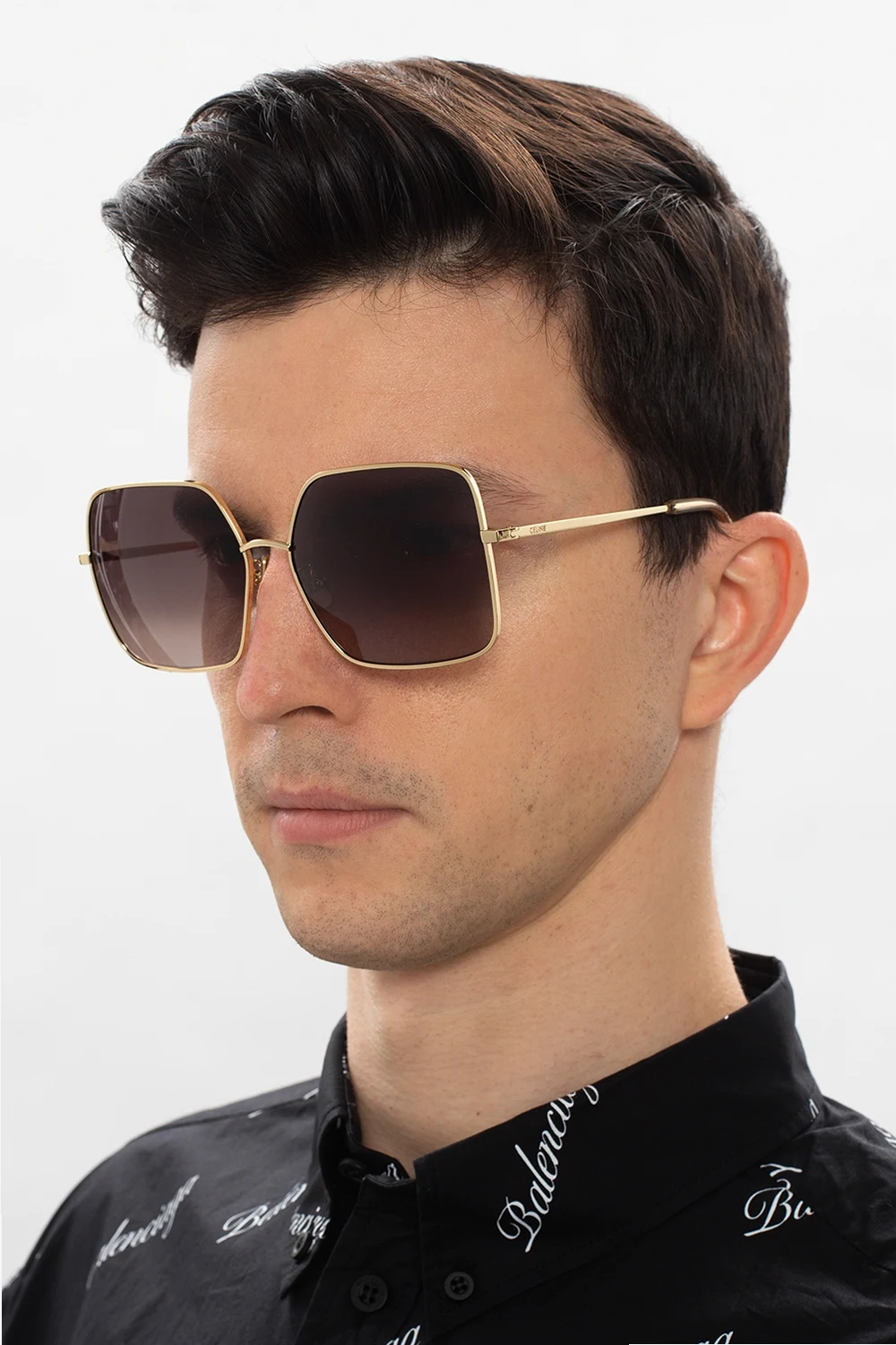 Okulary przeciwsłoneczne Celine. Oprawki w kolorze złotym. Certyfikowane, brązowe soczewki UVA/UVB. Ozdobione wytłoczonym logo. Dołączone czarne etui.