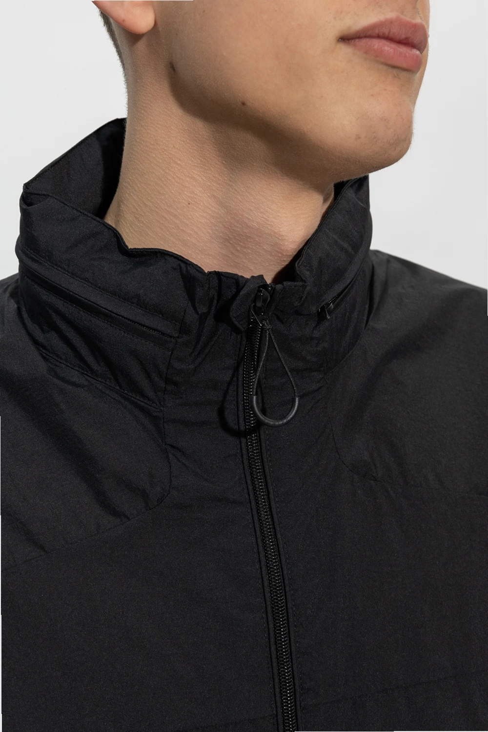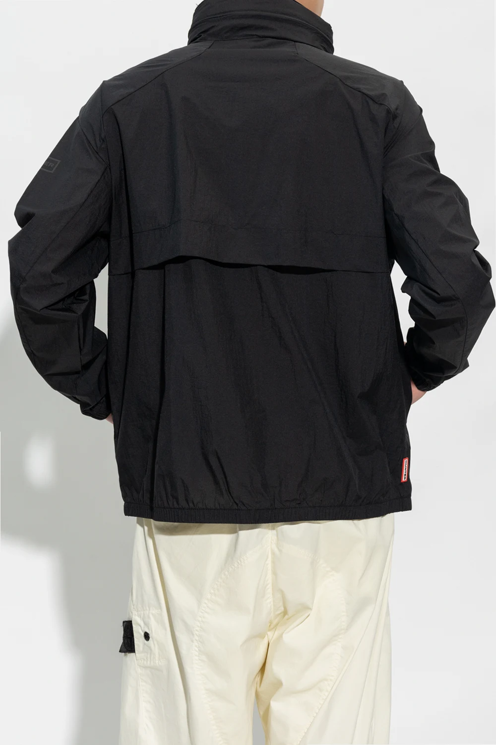 Czarna kurtka Hunter. Wykonana z wodoodpornego materiału z recyklingu. Zapinana na zamek. Kaptur chowany w stójce. Z przodu dwie kieszenie zapinane na zamek. Z tyłu rozcięcie. Długie rękawy i dół wykończone ściągaczem.