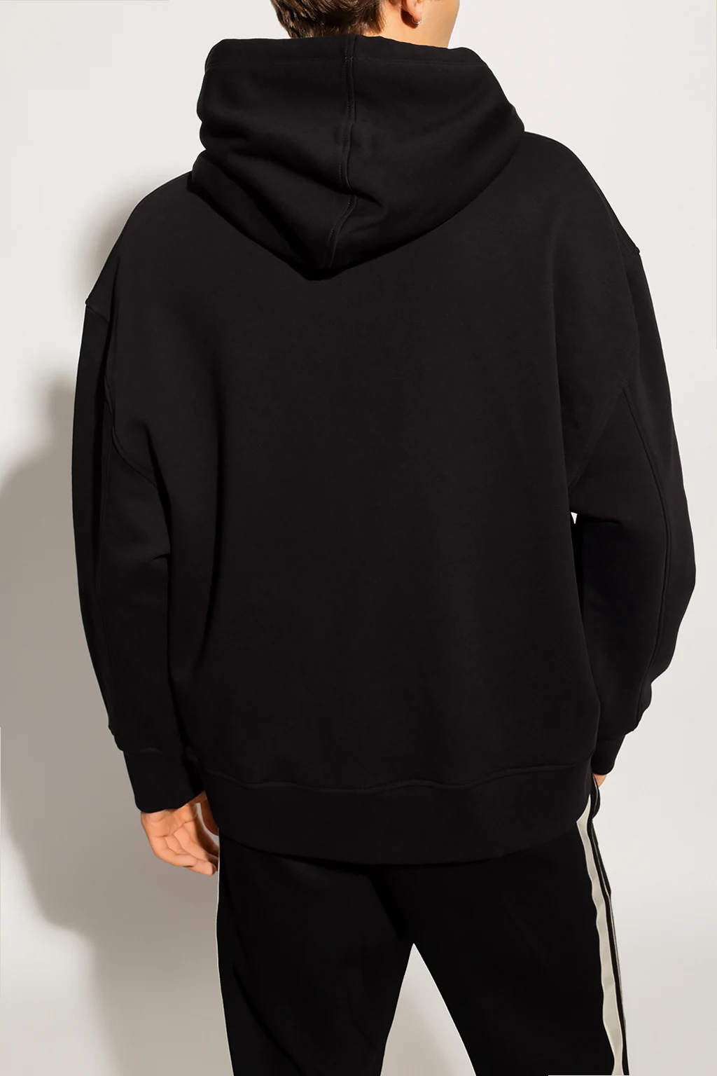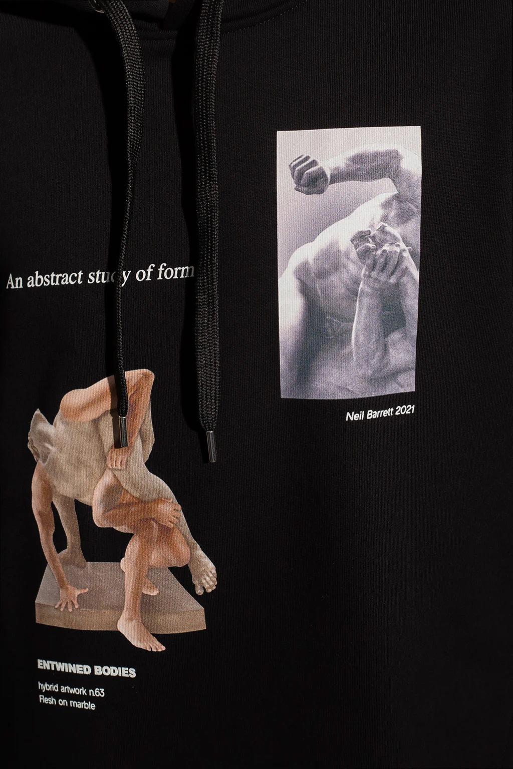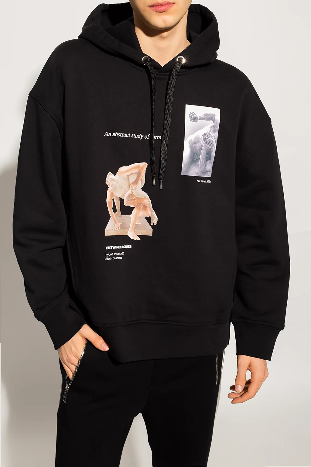 Czarna, bawełniana bluza Neil Barrett. Wykonana z bawełny. Kaptur ściągany trokami. Z przodu nadrukowany kolorowy wzór i wsuwana kieszeń. Długie rękawy i dół wykończony ściągaczem.