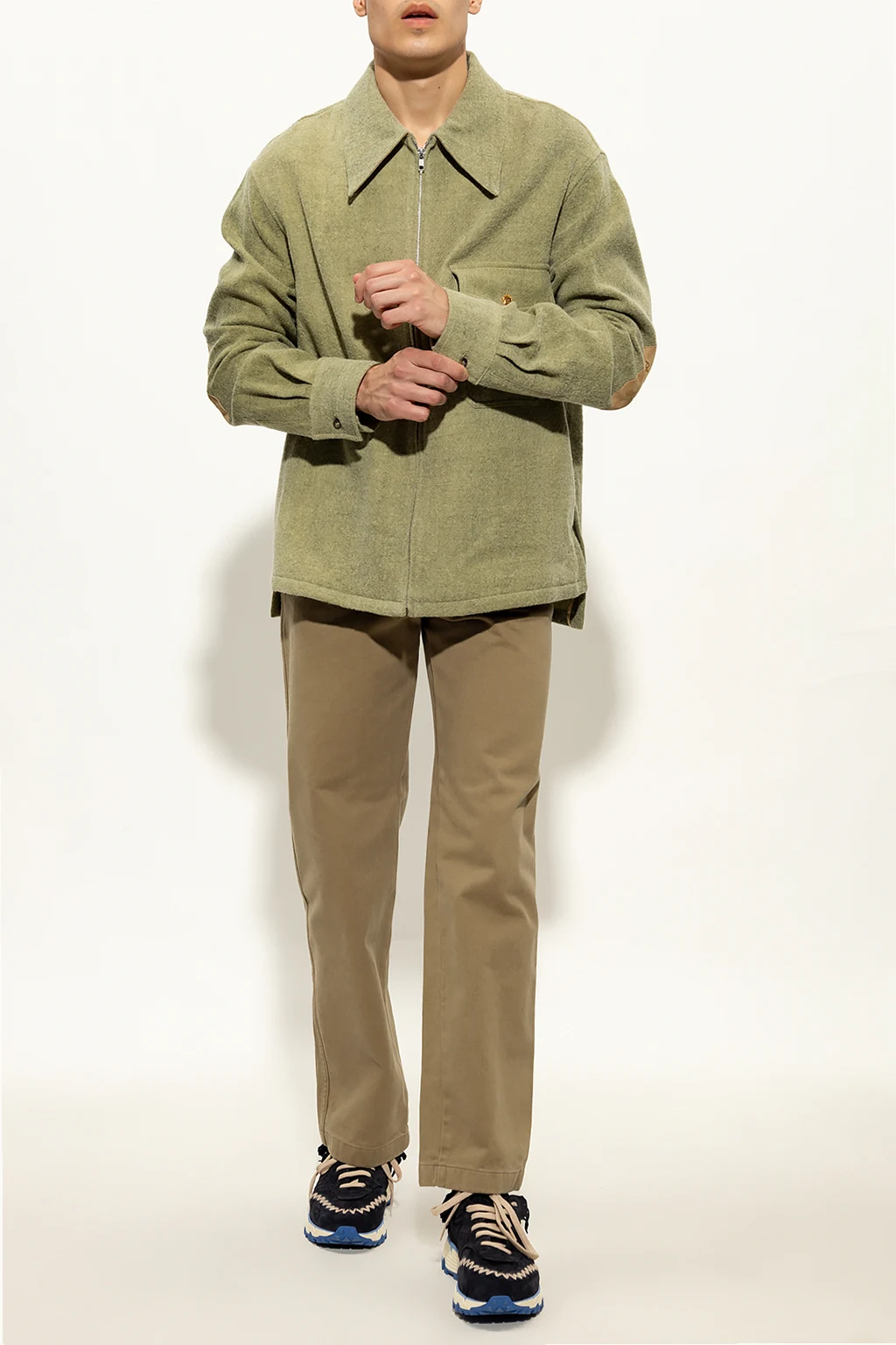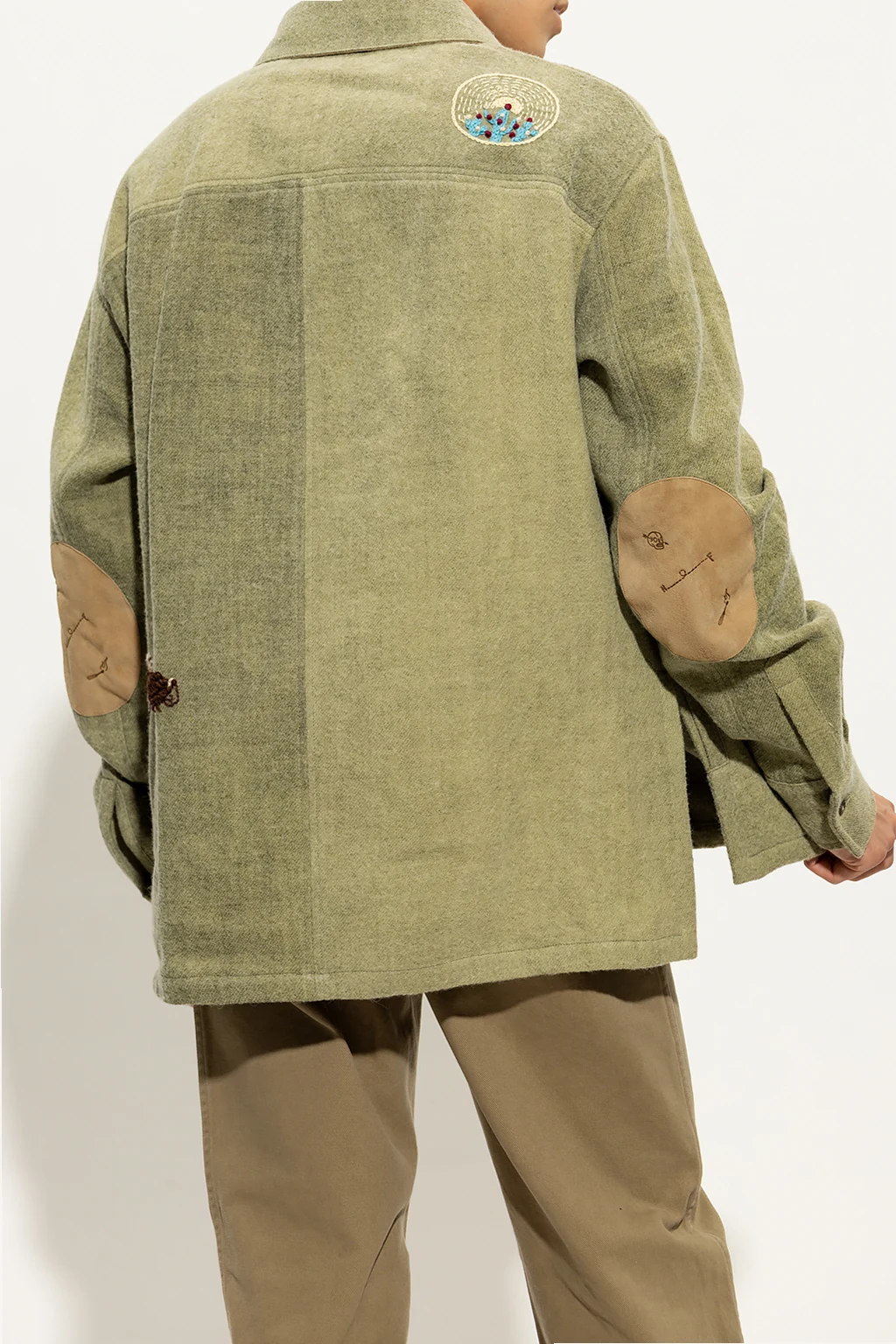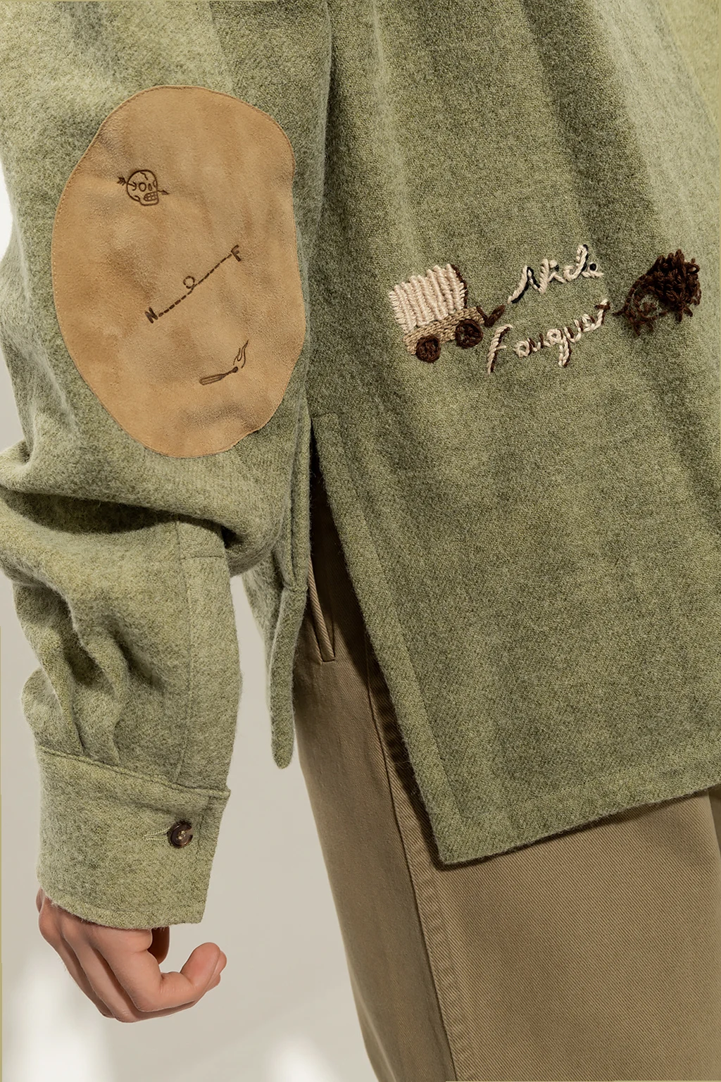 Zielona kurtka Nick Fouquet. Wykonana z wełny. Zapinana na zamek. Trzy kieszenie: dwie wsuwane oraz z patką zapinaną na dekoracyjny guzik. Długie rękawy. Na dole rozcięcia. Dekoracyjne, kolorowe naszywki.