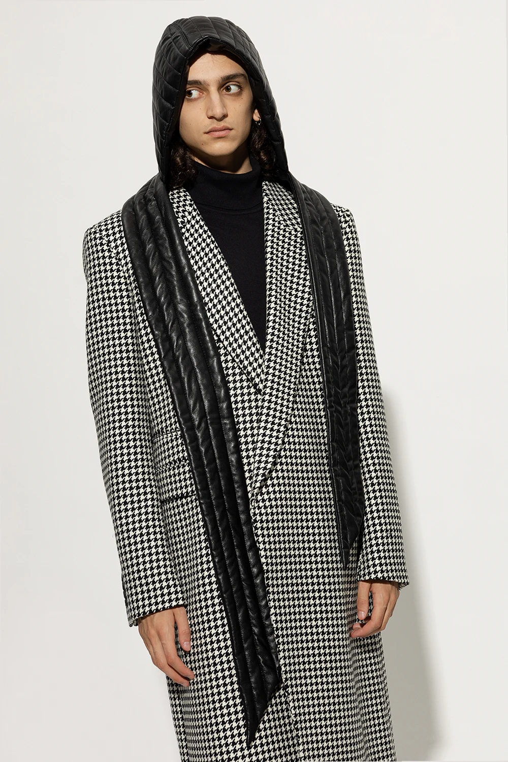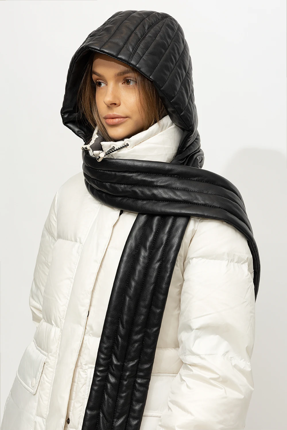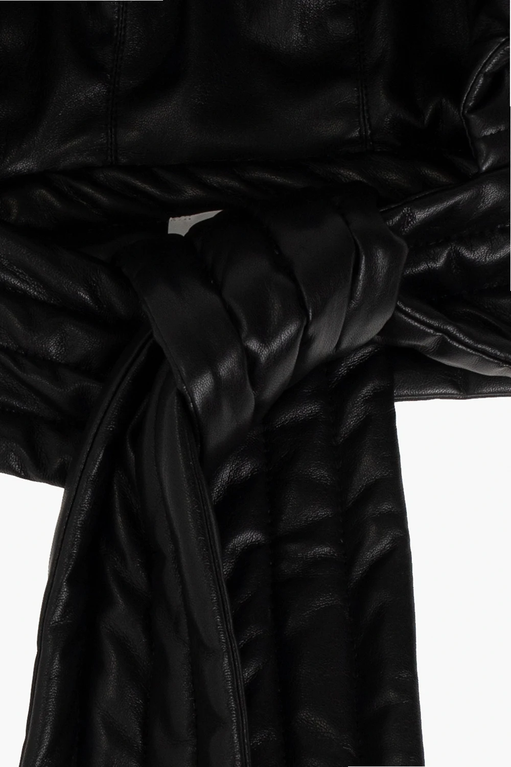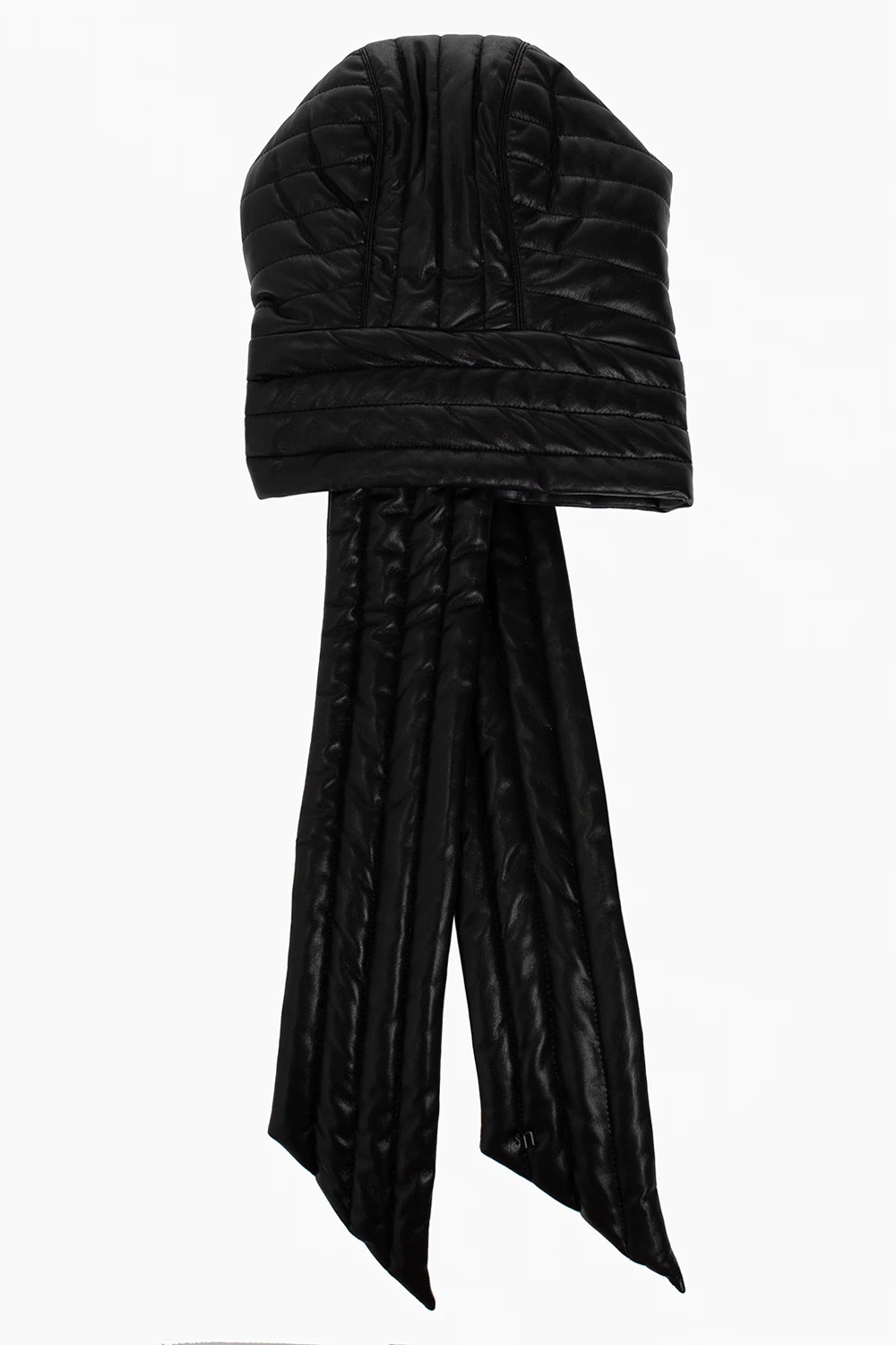 Czarny, pikowany kaptur, model ‘Hill’ Nanushka. Wykonany z charakterystycznej dla marki skóry wegańskiej OKOBOR™. Wiązany pod szyją.