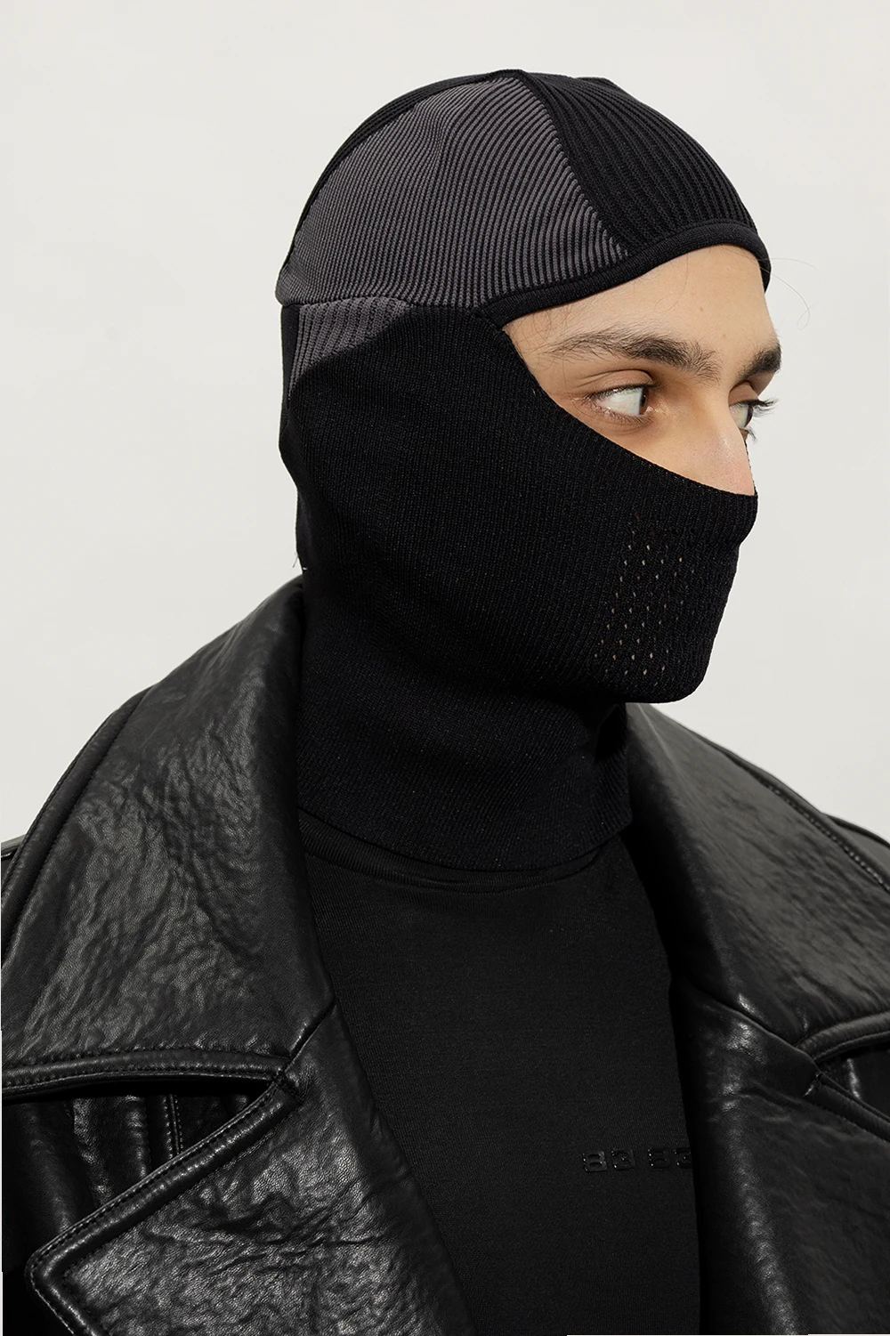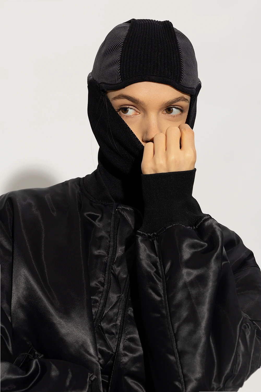 Czarno-szara kominiarka Y-3 Yohji Yamamoto. Z tyłu wyszyte logo.