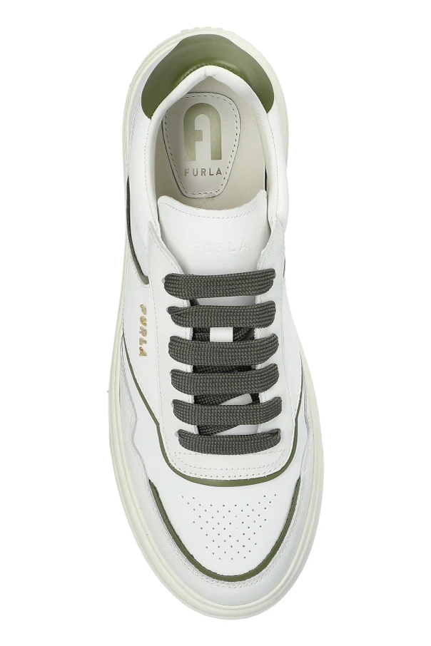 Buty sportowe Nuage marki Furla to synonim ponadczasowej elegancji w sportowym wydaniu. Wyróżniają się białym wybarwieniem, którego czystość została subtelnie przełamana oliwkowo-zielonymi detalami przy sznurowadłach oraz wokół podeszwy i języka, nadając całości wyrafinowanego charakteru.