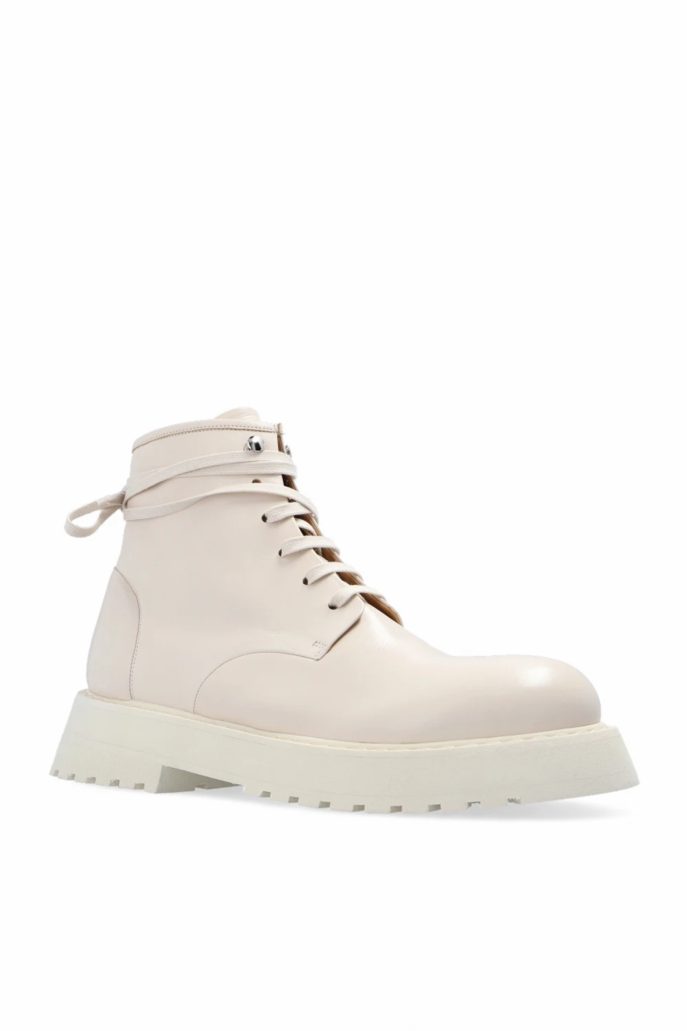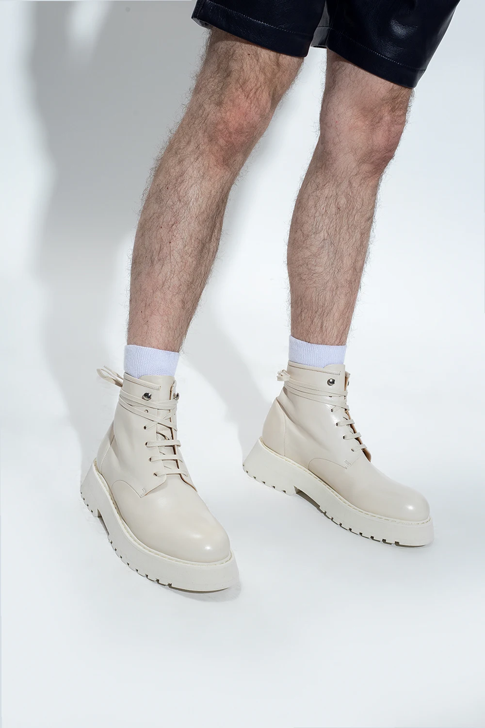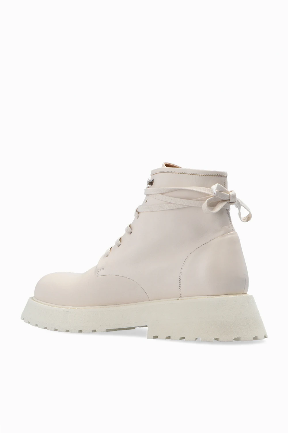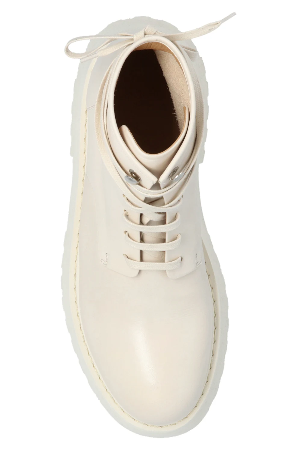 Kremowe, sznurowane botki, model ‘Miccaro’ Marsll. Wykonane ze skóry. Dołączone zapasowe sznurowadła. Biała, gumowa podeszwa.