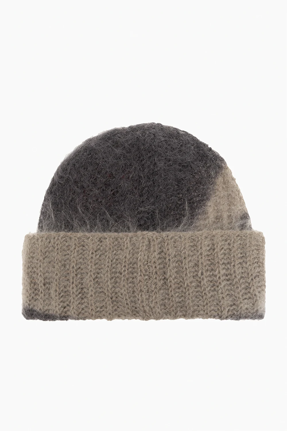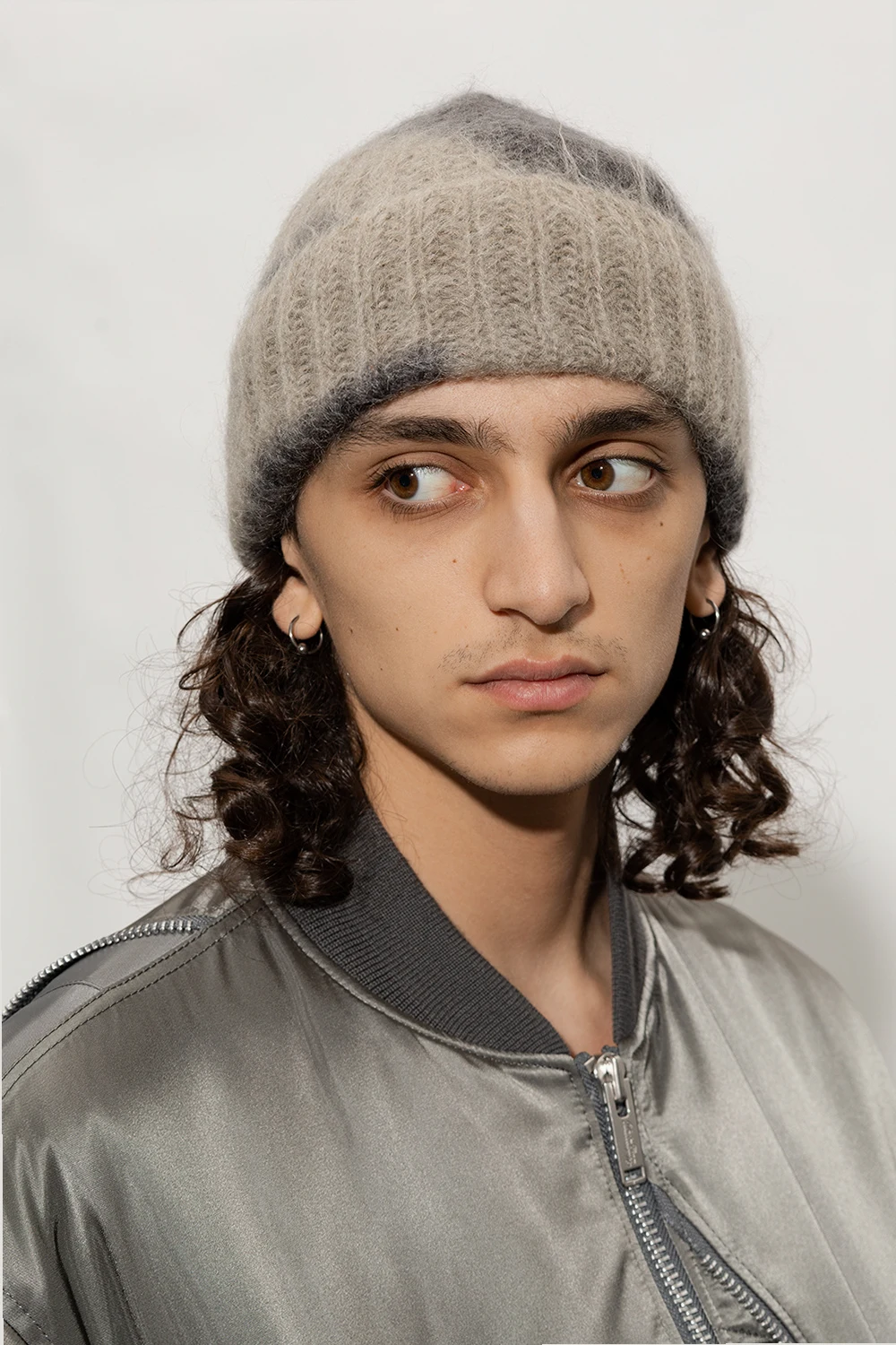 Szara czapka, model ‘K-LELIO’ Diesel. Wykonana z prążkowanej mieszanki moheru i wełny o szczotkowanym wykończeniu. Dwukolorowy wzór został osiągnięty w procesie podwójnego barwienia.