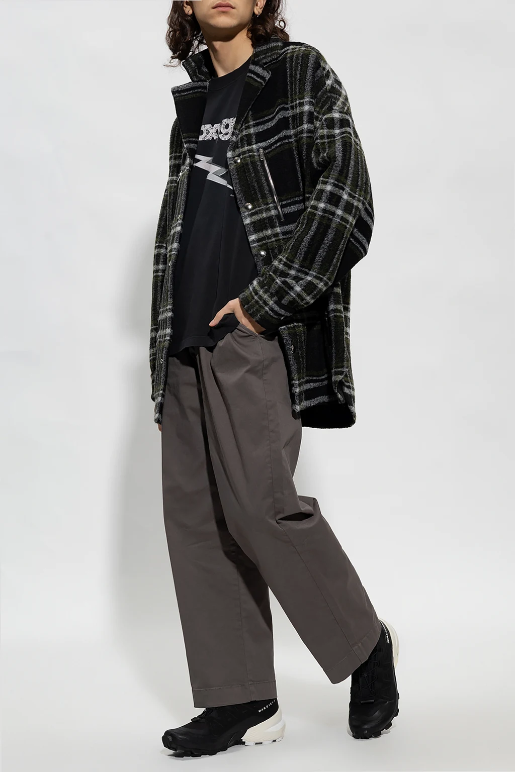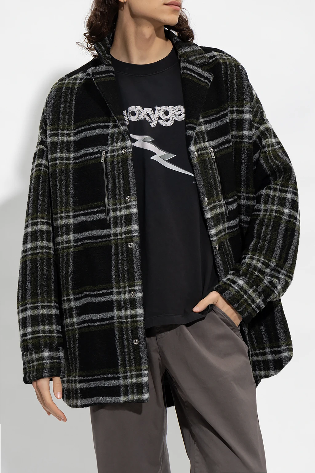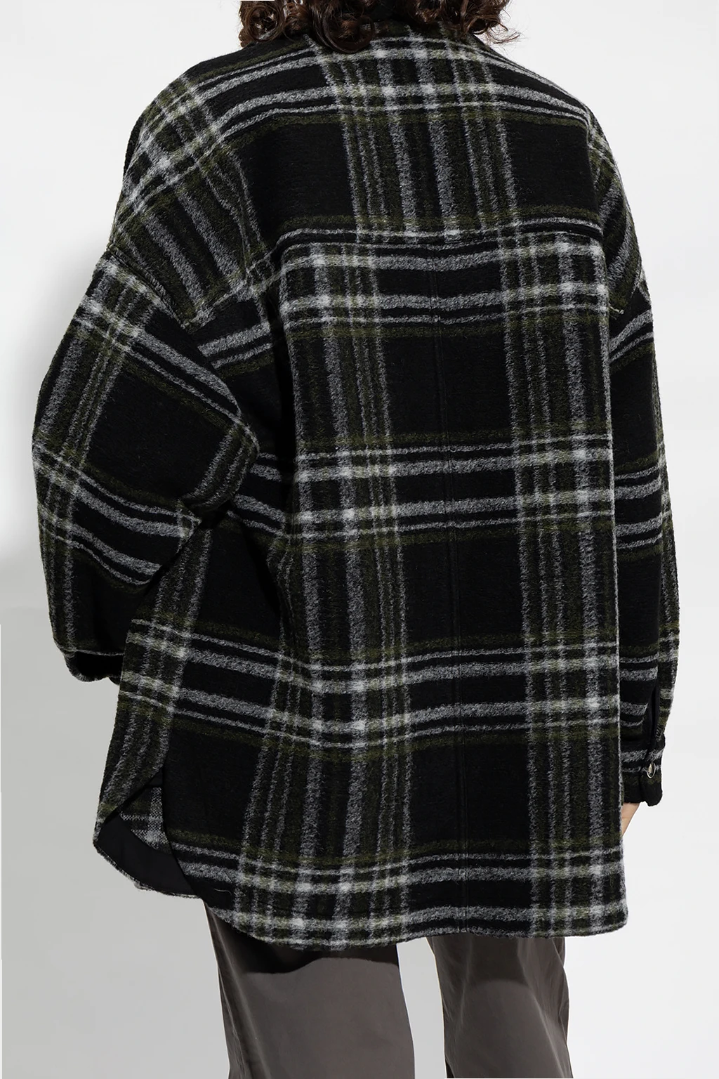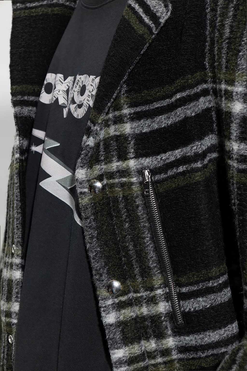 Czarno-biało-ciemnozielona kurtka, model ‘Willis’ Iro. Zapinana na zatrzaski. Ozdobiona wzorem w kratę. Cztery kieszenie: dwie wsuwane i dwie zapinane na zamek. Otwarte klapy. Długie rękawy zakończone mankietem zapinanym na zatrzask.