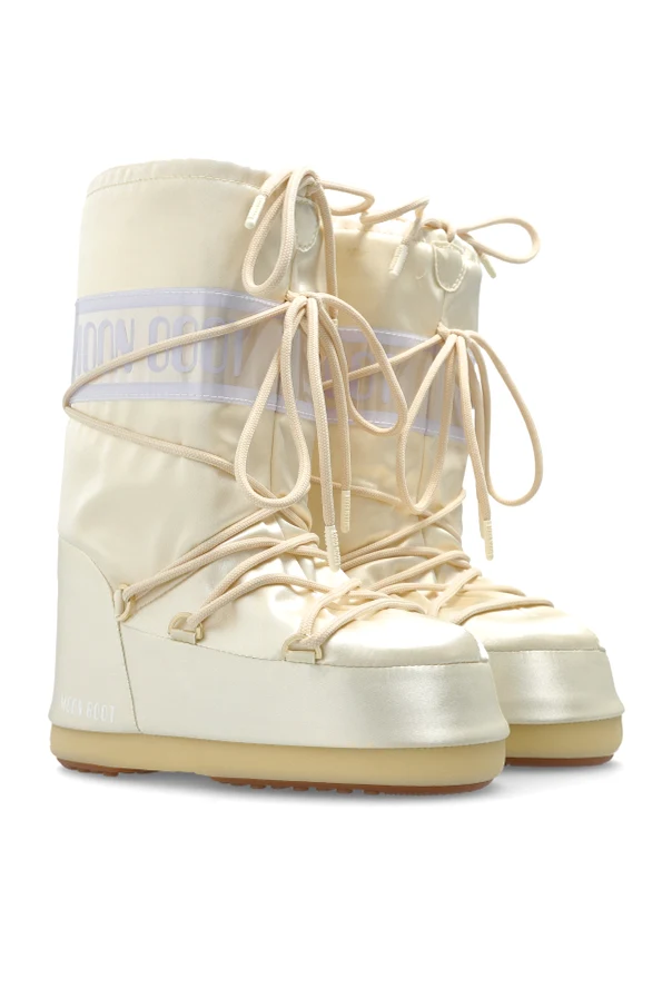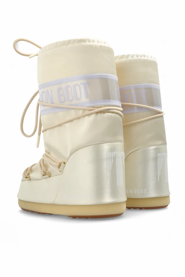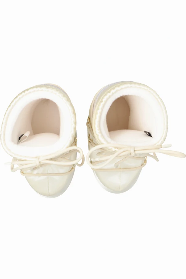 Śniegowce ‘Icon Pearly’ marki Moon Boot Kids to wyjątkowe obuwie, którego imponujący, cylindryczny fason stanowi nawiązanie do kultowych modeli zimowych. Harmonijna, kremowa barwa o perłowym połysku wzbogaca całość o subtelne światło oraz nutę luksusu, doskonale komponując się z szerokim, połyskującym pasem prezentującym rozpoznawalne logo marki.