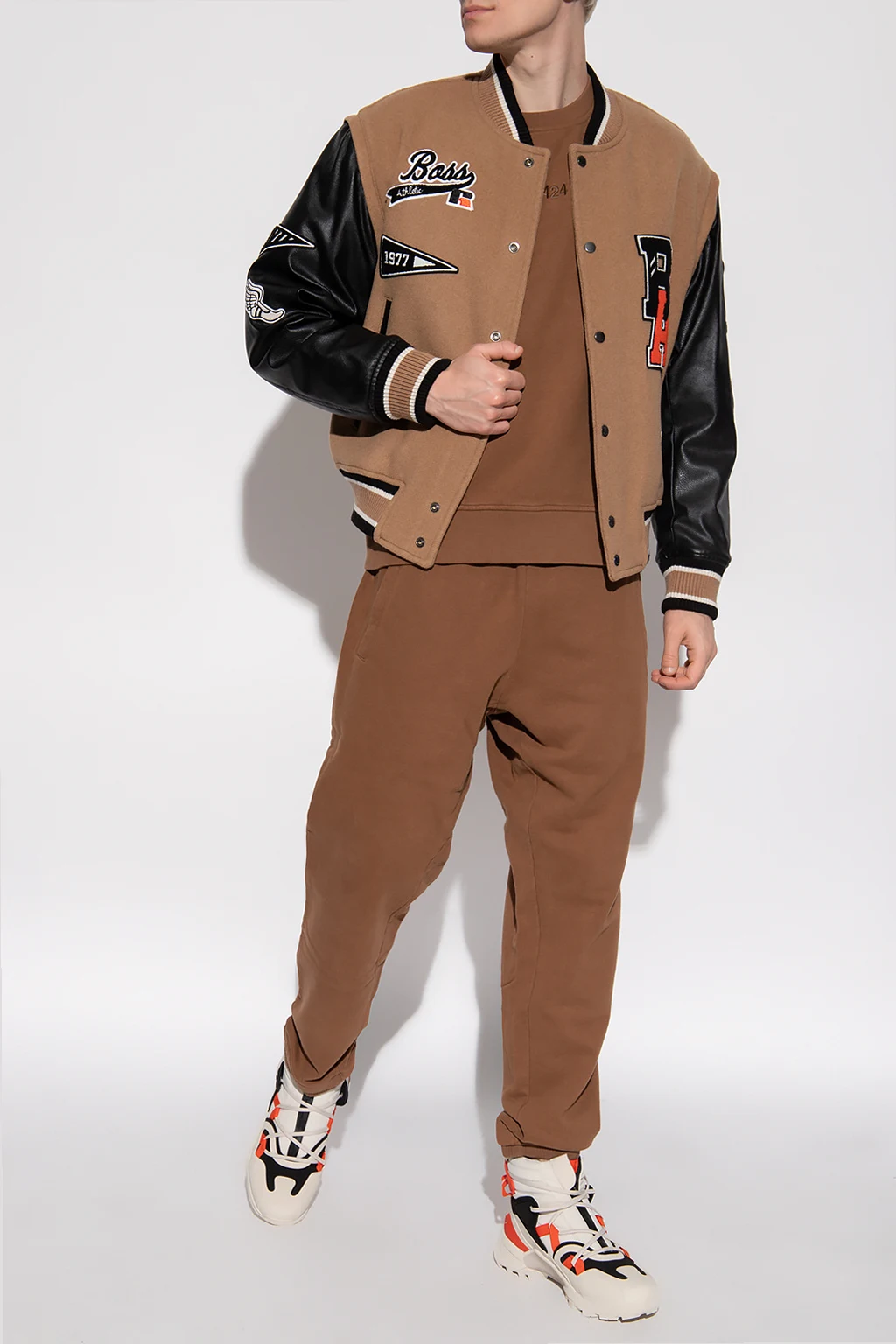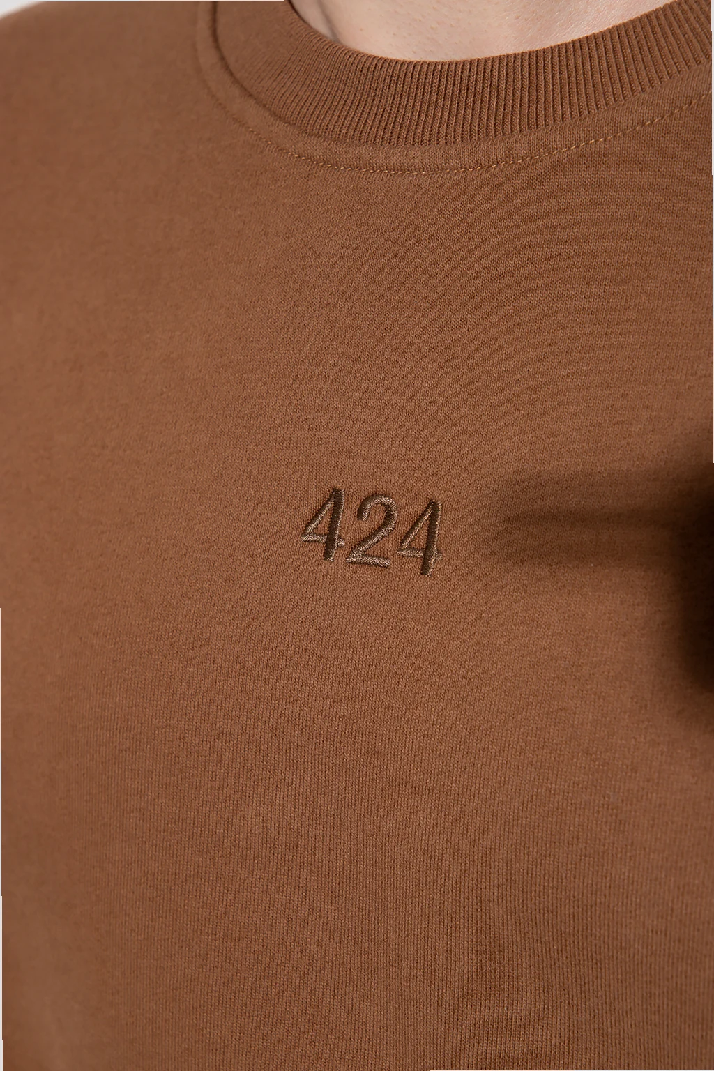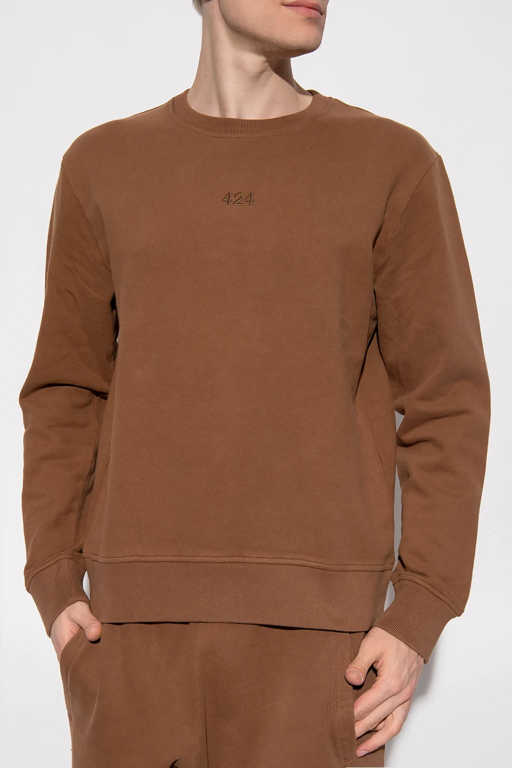 Brązowa, bawełniana bluza 424. Z przodu ozdobiona wyszytym logo. Okrągły dekolt. Dół i długie rękawy zakończone ściągaczami.