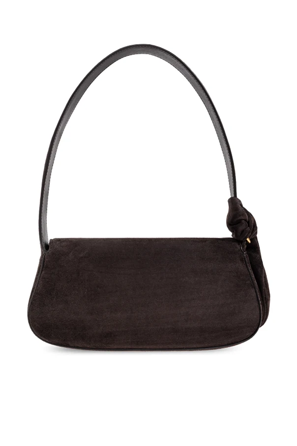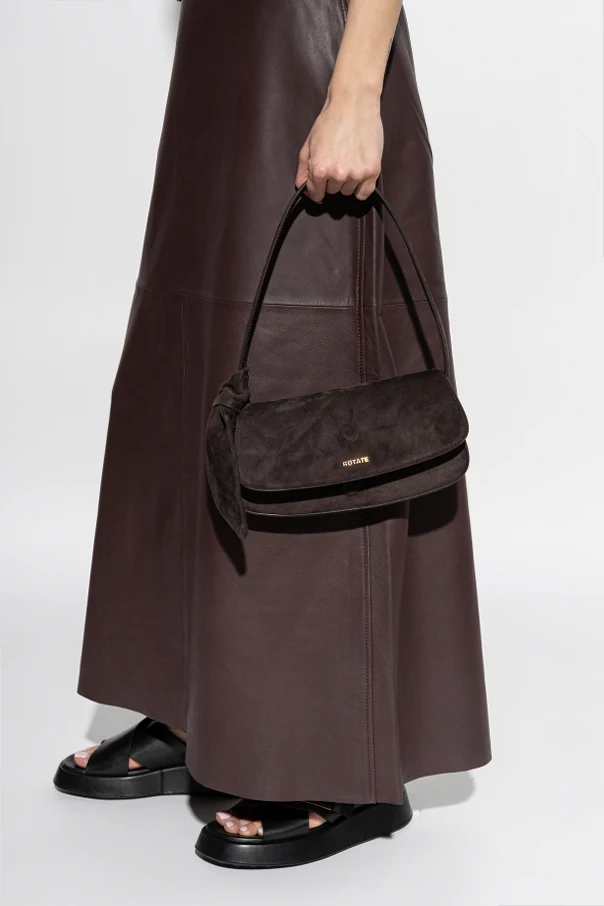 Starannie wykonana z najwyższej jakości zamszu skórzanego, emanuje ekskluzywnym charakterem i niezwykłą miękkością. Gładkie, pozbawione ozdobników lico, w połączeniu z dyskretnym, złotym logo projektanta ROTATE na froncie, podkreśla wyrafinowany styl produktu.