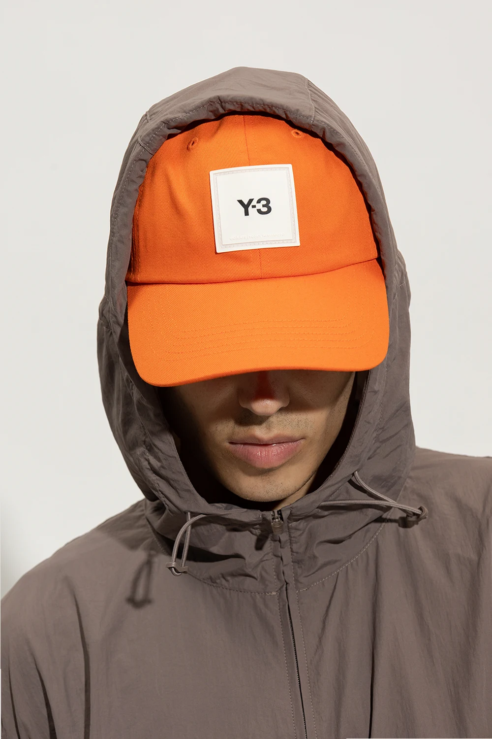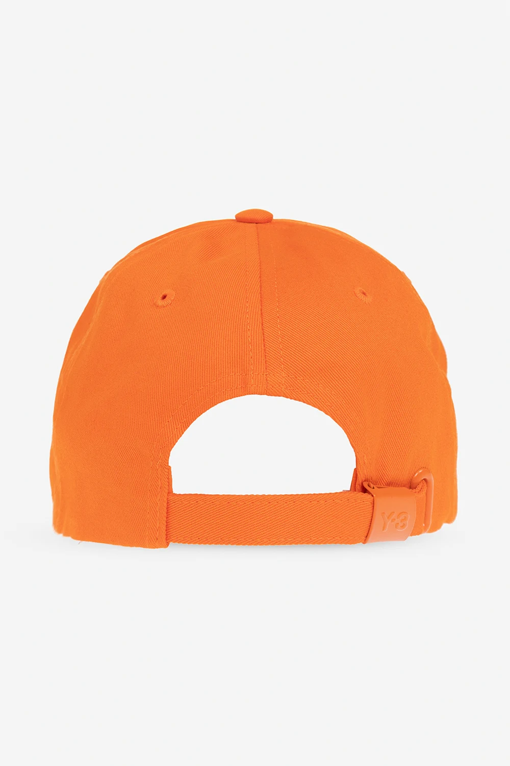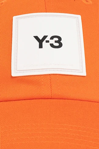 Pomarańczowa czapka z daszkiem Y-3 Yohji Yamamoto. Wykonana z bawełny. Ozdobiona naszywką z logo. Z tyłu regulowana na pas z klamrą.