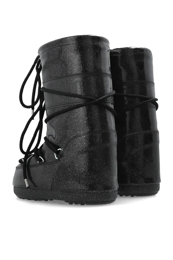 Śniegowce „Icon Glitter” marki Moon Boot Kids to uosobienie nowoczesnej elegancji w dziecięcym wydaniu. Ich wyrazista, cylindryczna sylwetka w kolorze czarnym łączy minimalistyczny charakter z urzekającym, błyszczącym wykończeniem, podkreślonym subtelnym efektem drobinek „glitter”. Wysoka cholewka zapewnia optymalną ochronę przed śniegiem i mrozem, otulając stopę miękką, ocieplaną wyściółką.