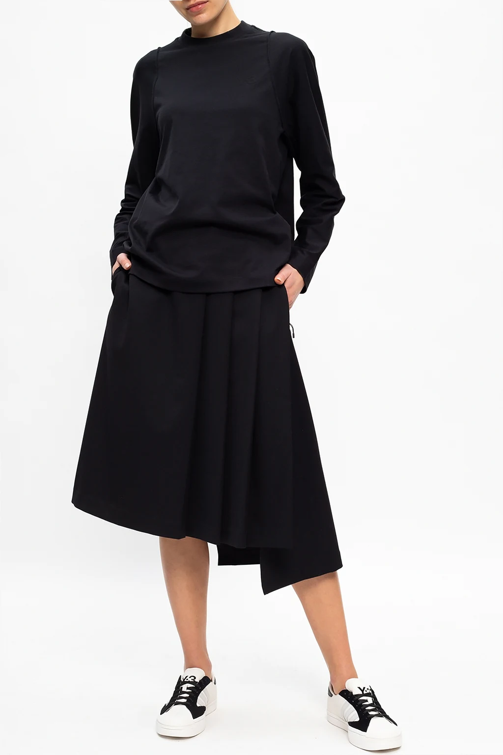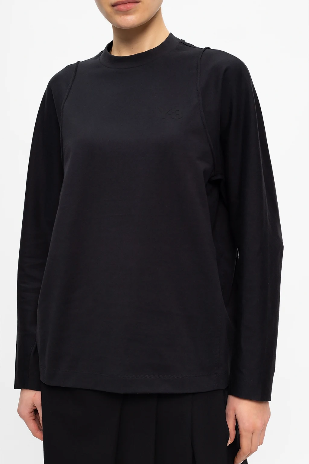 Czarny t-shirt z długimi rękawami Y-3 Yohji Yamamoto. Wykonany z bawełny. Nadrukowane logo. Okrągły dekolt.