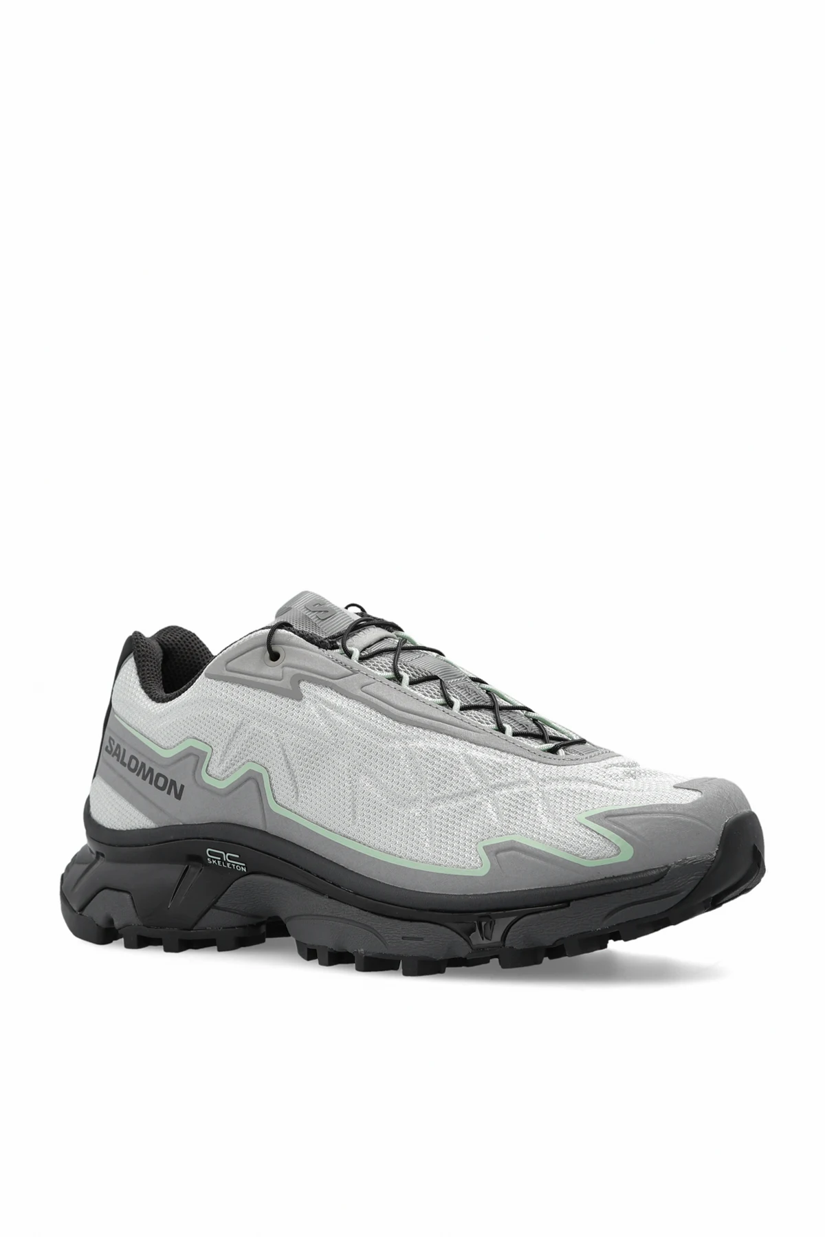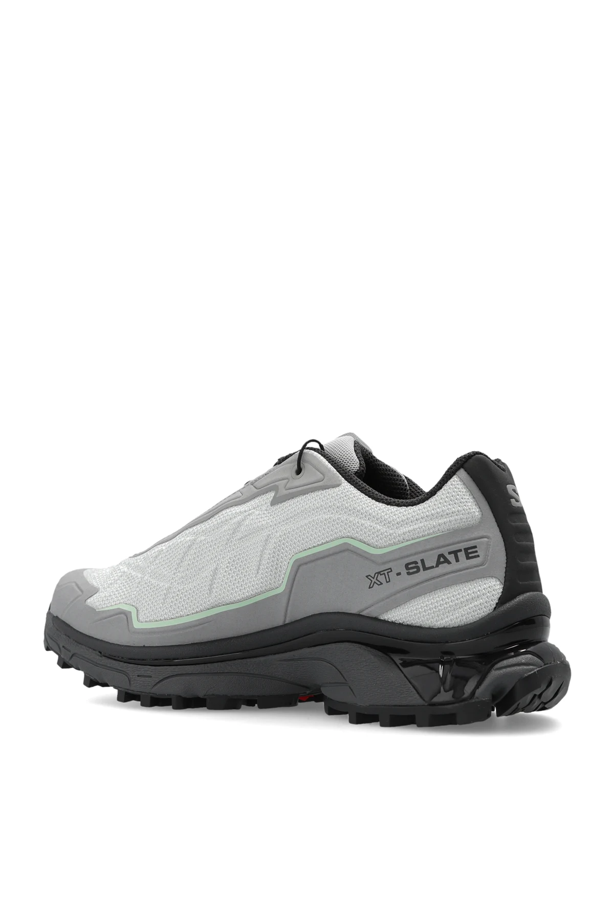 Szaro-czarno-zielone buty sportowe, model ‘XT-SLATE ADVANCED’ Salomon. System sznurowania Quicklace™. Ozdobione logo. Buty posiadają system Advanced Chassis™, pochłaniający energię na nierównych i zmiennych nawierzchniach, ograniczający zmęczenie stóp i poprawiający komfort. Podeszwa środkowa z pianki EVA. Czarno-szara podeszwa zewnętrzna Contagrip® z odwróconym wzorem kostki bieżnika w jodełkę gwarantującym przyczepność na mokrych, miękkich, twardych i suchych nawierzchniach.