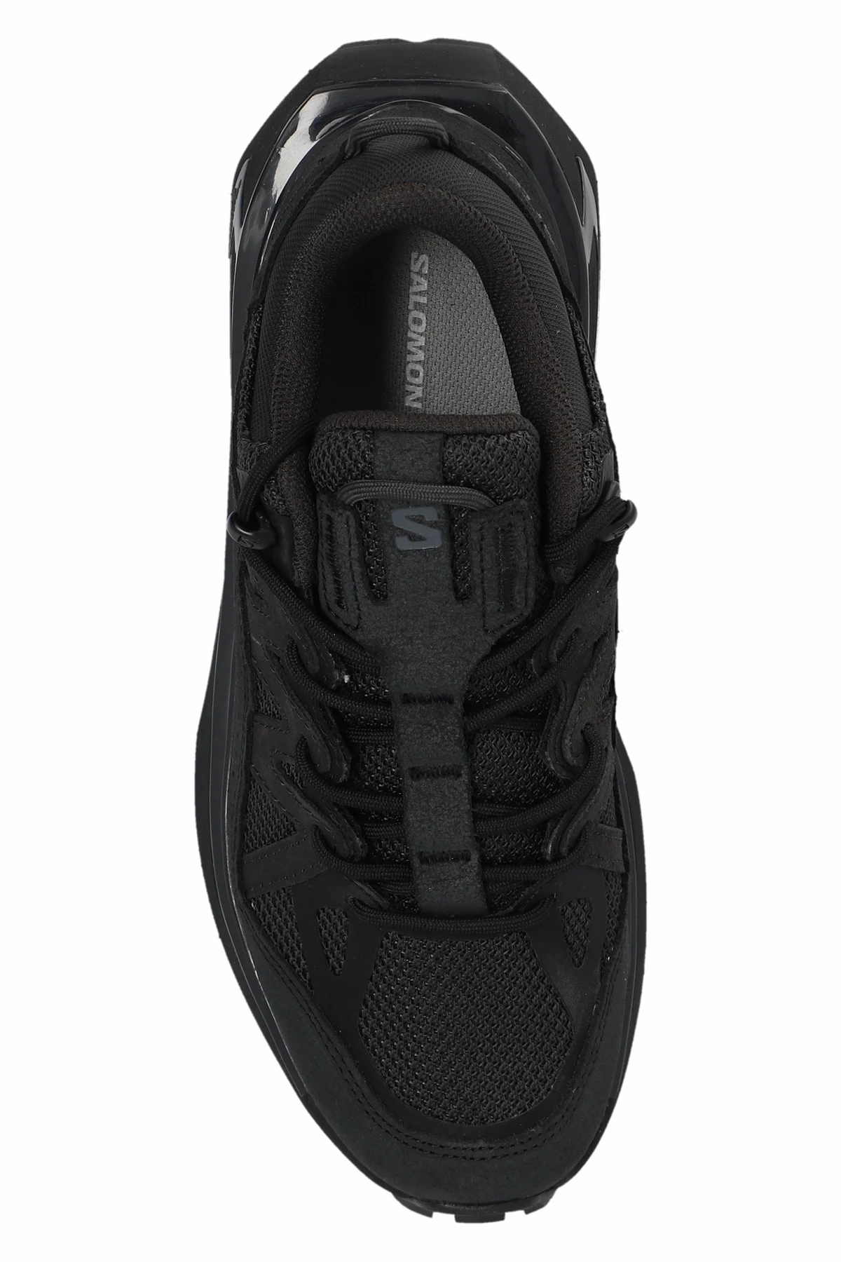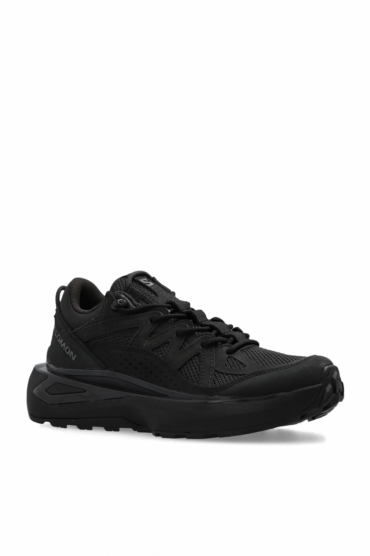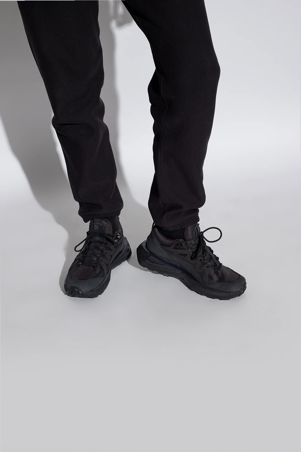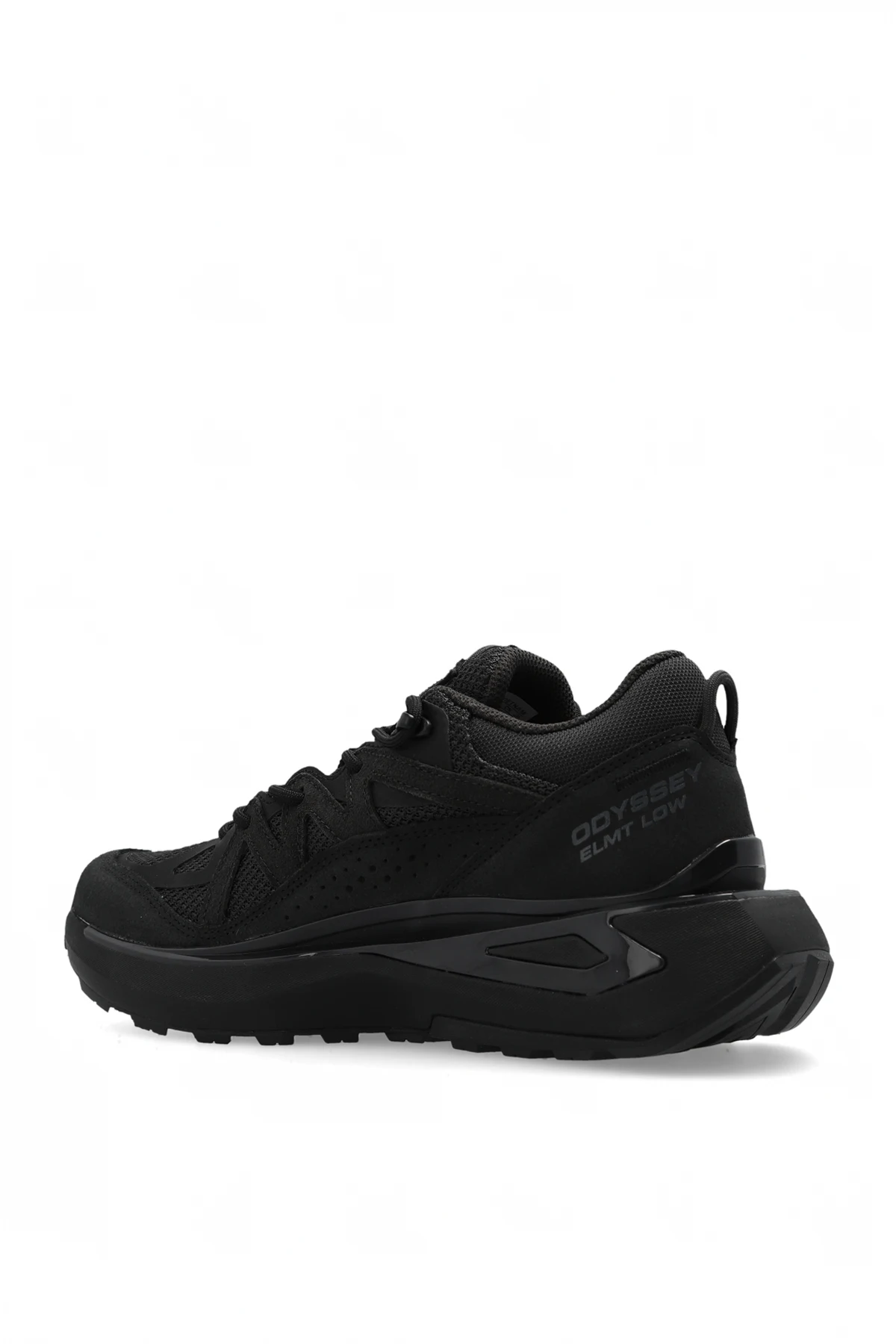 Czarne, sznurowane buty sportowe, model ‘ODYSSEY ELMT LOW’ Salomon. Wykonane ze skóry, materiału i tworzywa sztucznego. Ozdobione logo. Wykorzystana technologia Contagrip® to podeszwa stworzona z myślą o maksymalnej przyczepności na grząskich, miękkich, nieregularnych i nierównych nawierzchniach. Ma głębokie kostki bieżnika wykonane z materiału zapewniającego dobrą przyczepność.