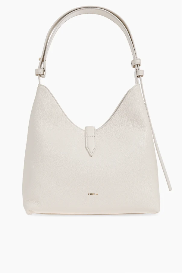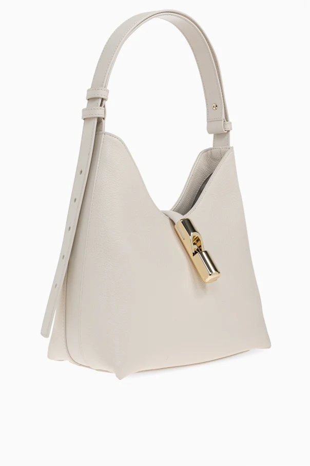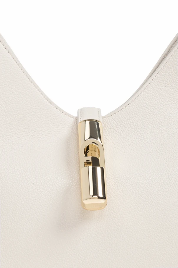 Charakterystyczny, rzeźbiarski detal zamknięcia o lśniącym, złotym wykończeniu stanowi główną ozdobę modelu, nadając mu unikatowy wyraz. Dyskretne, złote logo projektanta Furla na tylnej stronie jest wyrazem tradycji włoskiego rzemiosła, a regulowana rączka dopasowana kolorystycznie zapewnia komfort noszenia.