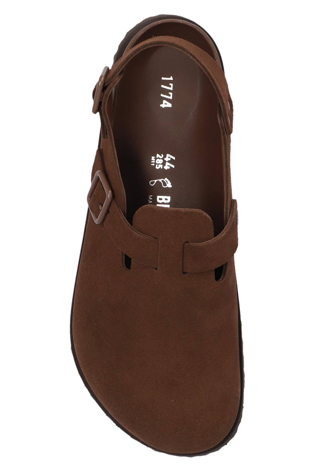 Niezaprzeczalnie eleganckie i ponadczasowe, buty "Tokio II" od renomowanej marki Birkenstock 1774 definiują wygodę i styl. Wykonane z najwyższej jakości zamszopodobnego materiału , te casualowe klapy zachwycają wizualnie swoim ciepłym, brązowym odcieniem, dodającym szyku każdej stylizacji.