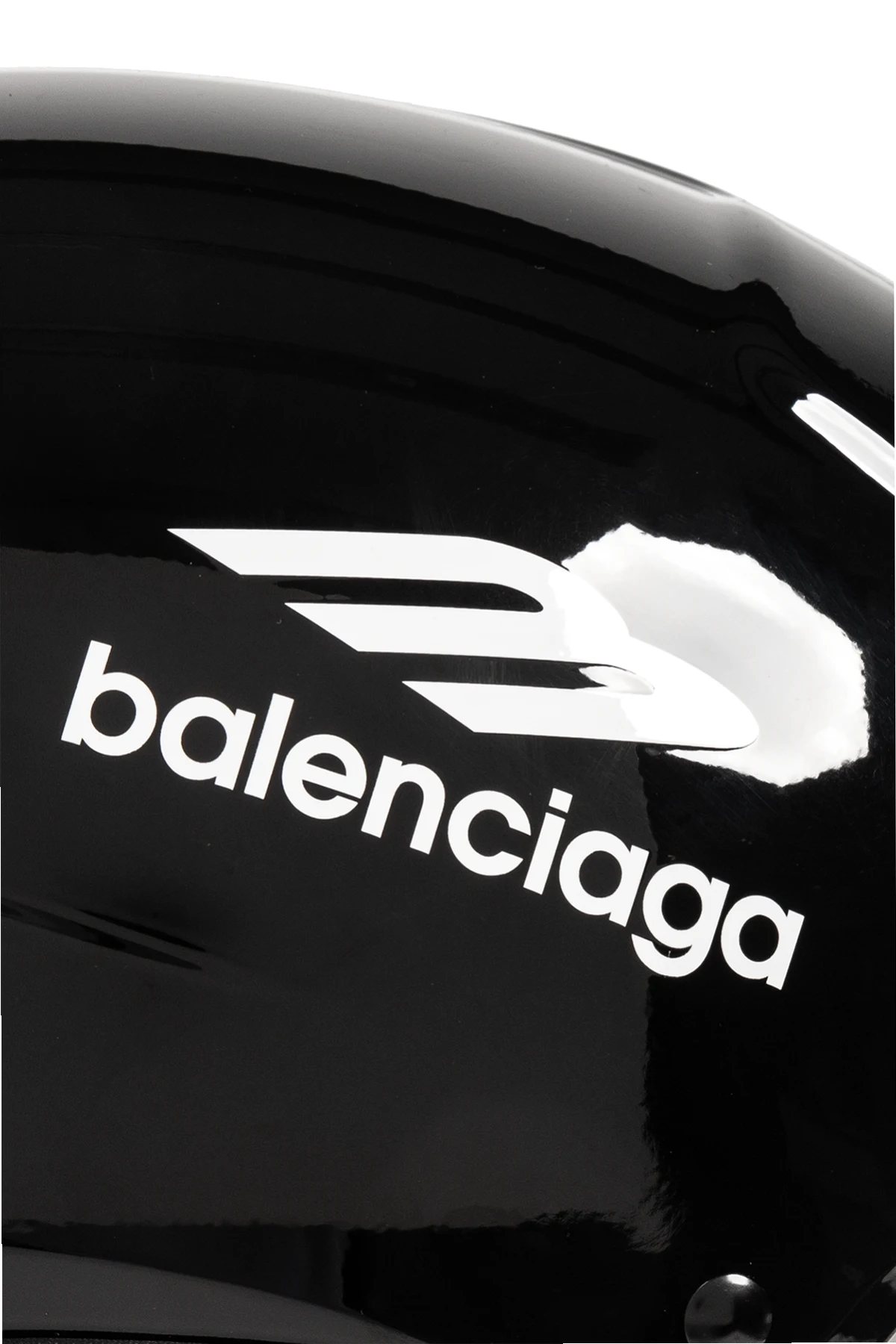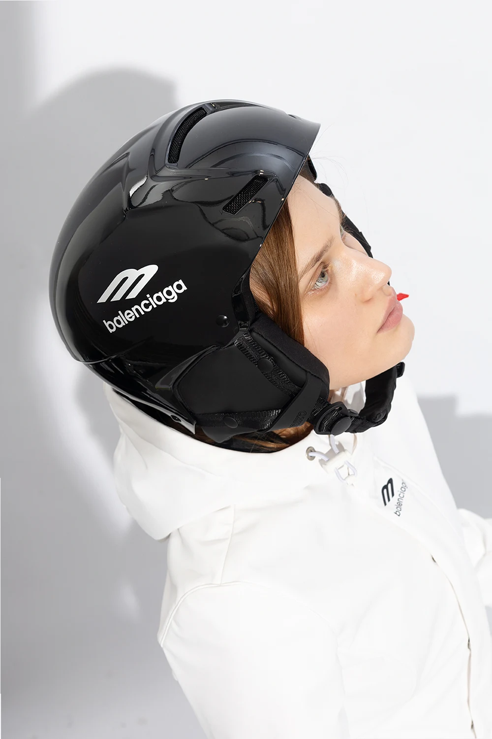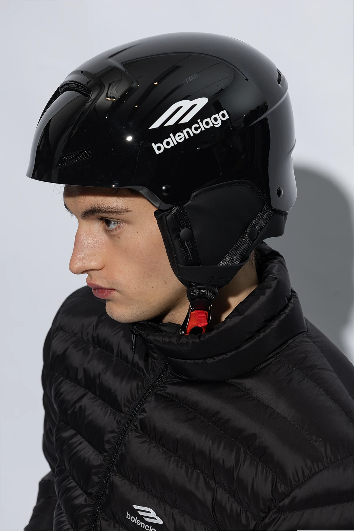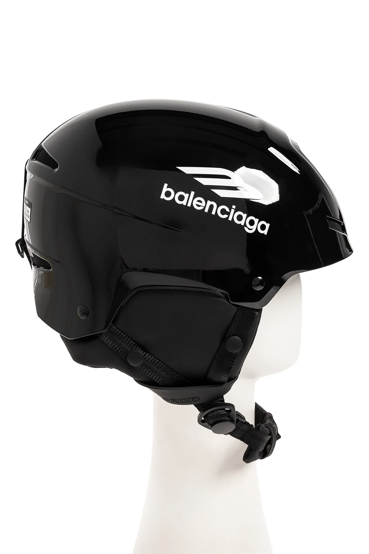Czarny kask do narciarstwa alpejskiego i snowboardu Balenciaga, kolekcja ‘Skiwear’. Wykonany z Briko©. System mocowania z podwójnym pierścieniem D-ring. Po bokach biały nadruk z logo.