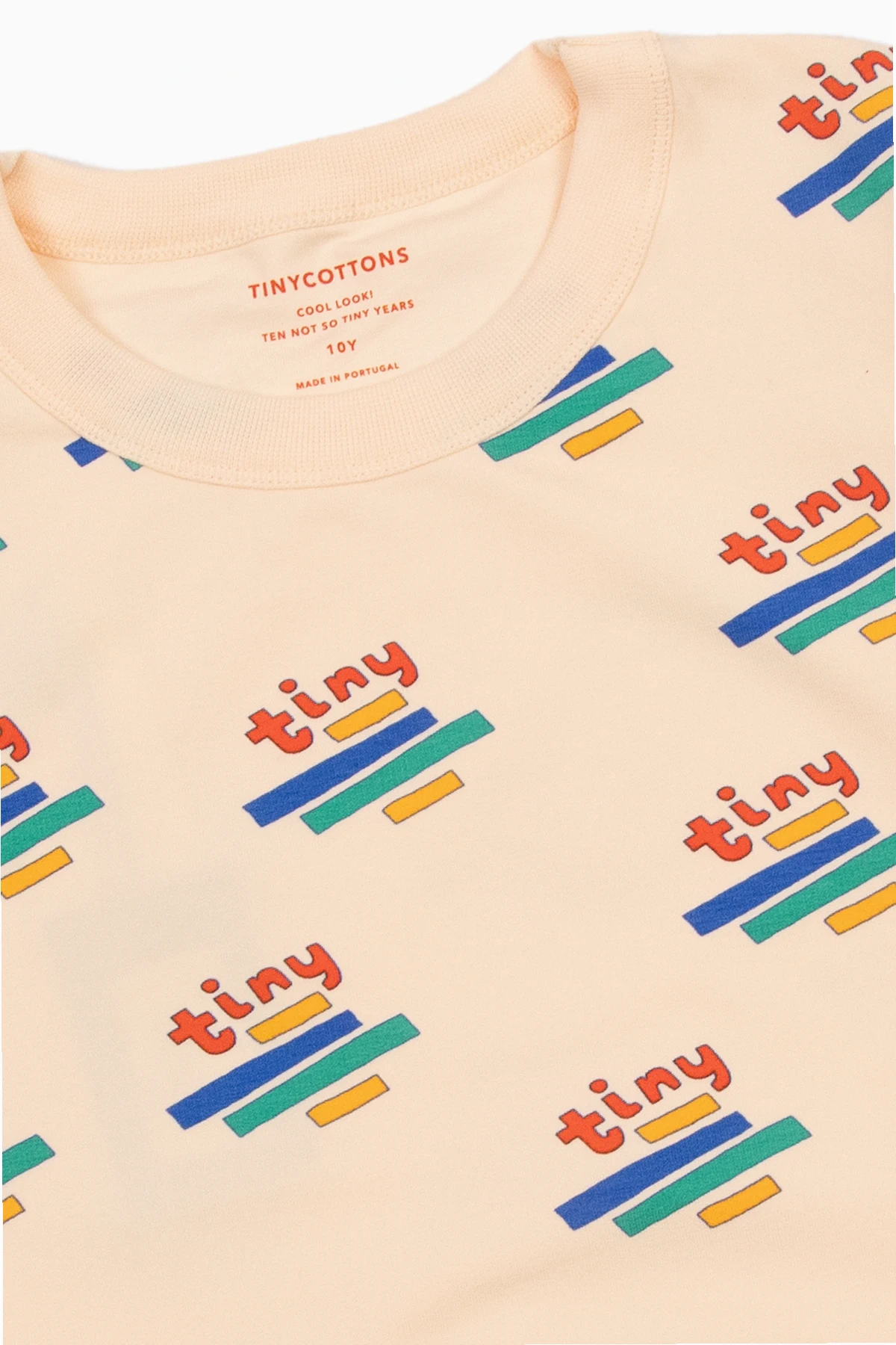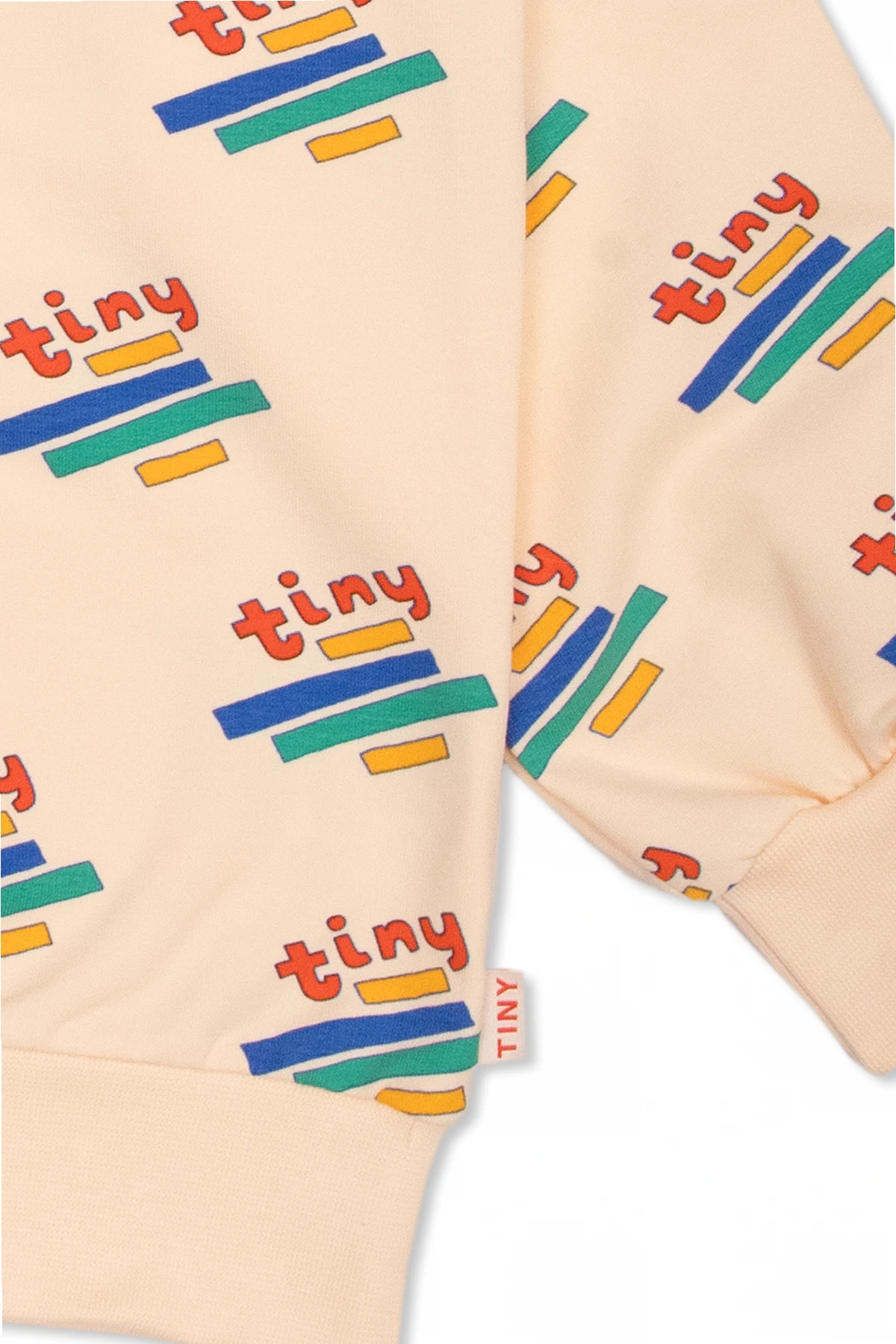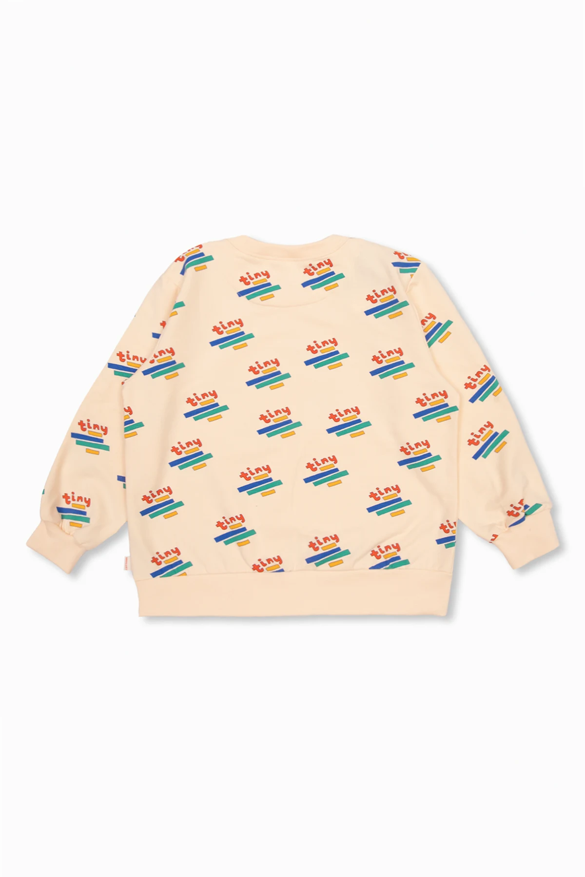 Kremowa bluza Tiny Cottons. Wykonana z bawełny Pima. Ozdobiona kolorowym wzorem z logo. Okrągły dekolt, długie rękawy i dół zakończone ściągaczem.