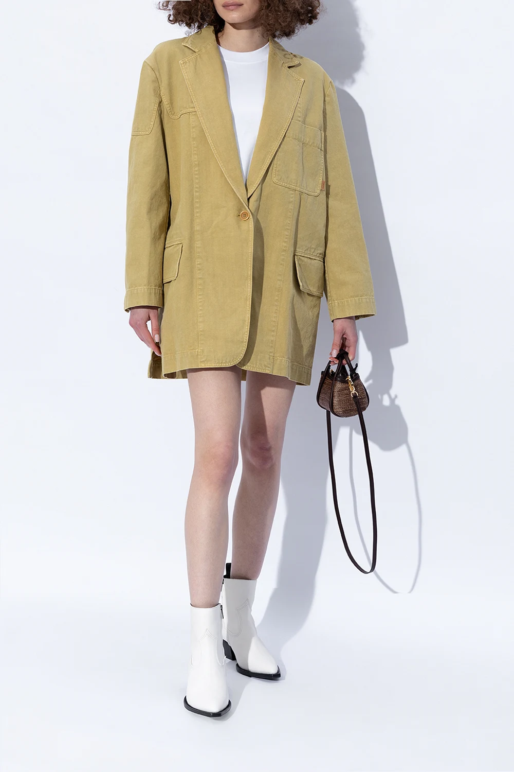 Wykonane z najwyższej jakości skóry, botki ‘Debbie’ charakteryzują się gładką fakturą, co świadczy o ich luksusowym charakterze. Ostry, zwężający się nosek oraz średniej wysokości, blokowy obcas w czarnym kolorze, tworzą wyjątkowy kontrast i nadają butom wyrazistego charakteru. Subtelne przeszycia podkreślają kształt obuwia, zaś pętelka u tyłu oraz zamek błyskawiczny po wewnętrznej stronie ułatwiają zakładanie. Metalowy emblemat z boku botka jest nie tylko dowodem na ekskluzywność produktu, ale również subtelnym akcentem, który dodaje elegancji.