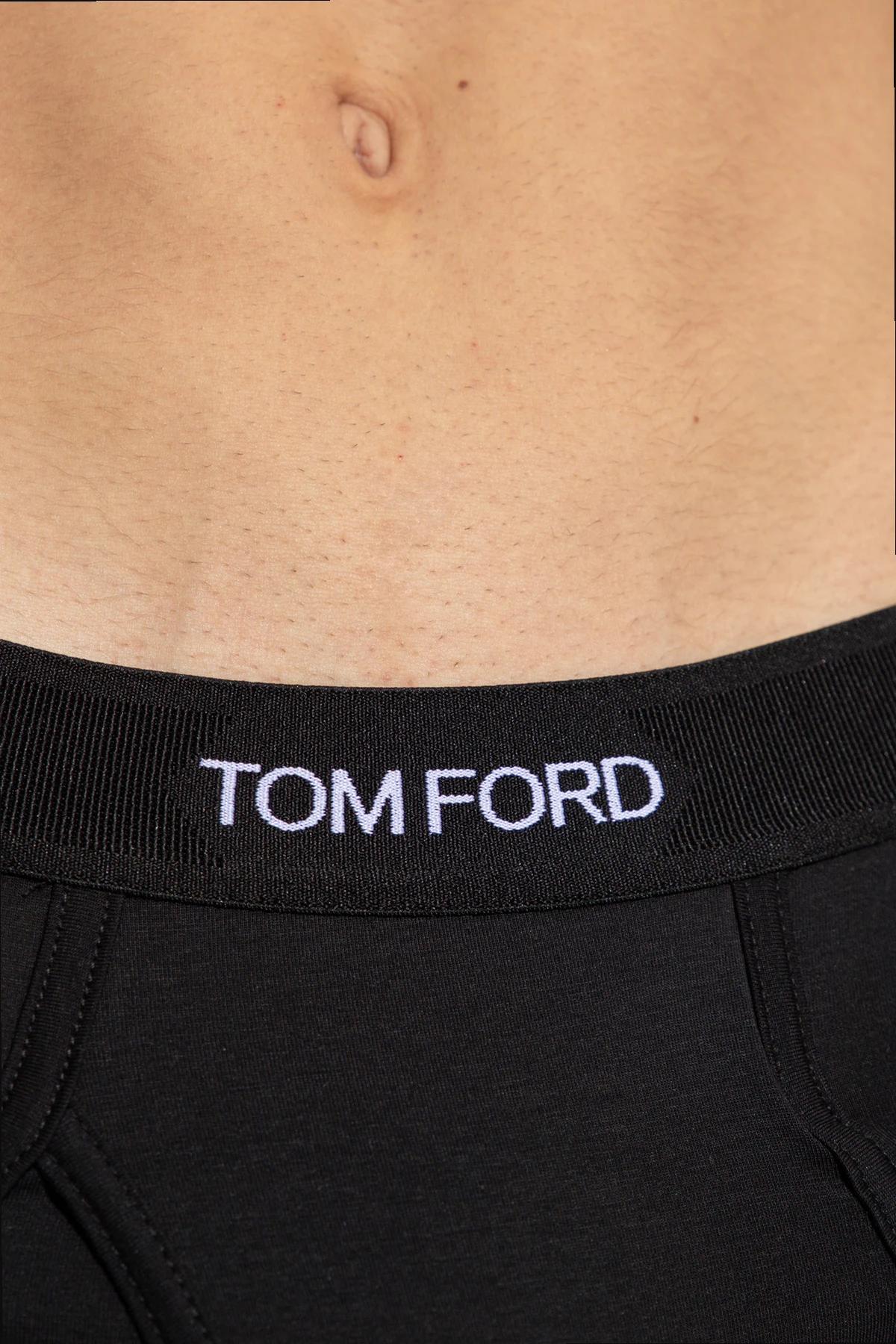 Dwupak slipów w kolorze czarnym Tom Ford. Wykonane z bawełny i modalu. W pasie wszyta czarna guma z logo.