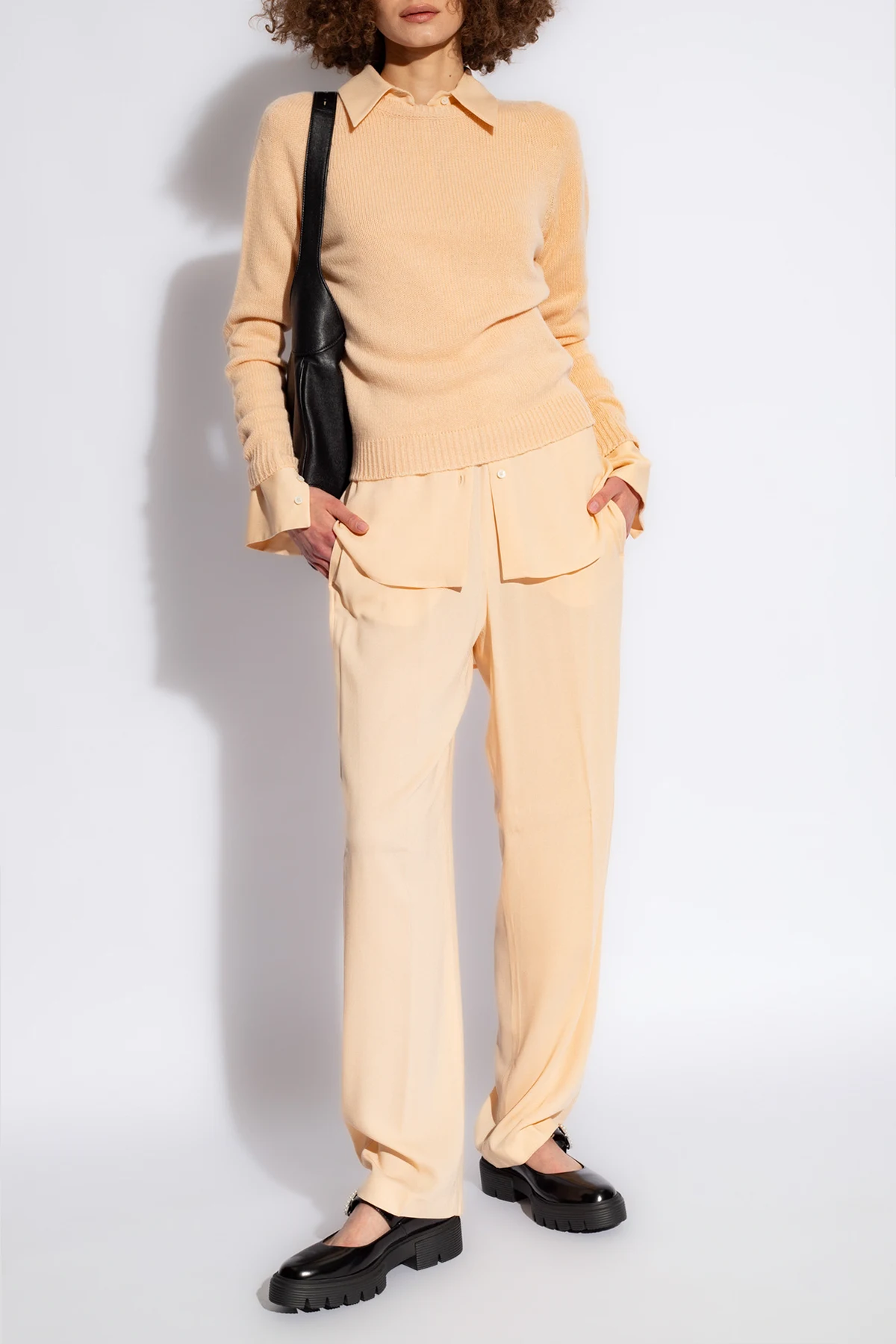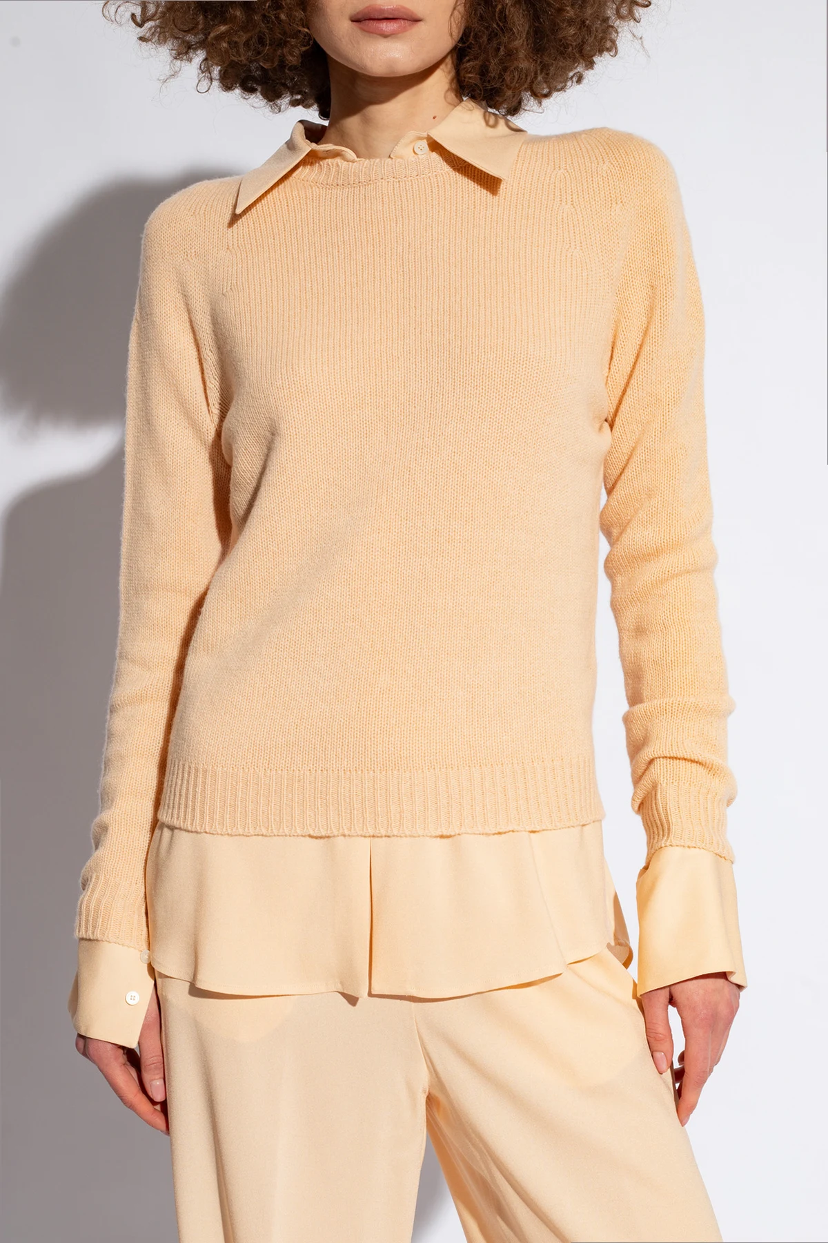 Beżowy sweter Fabiana Filippi. Wykonany z kaszmiru. Okrągły dekolt, długie rękawy oraz dół wykończone ściągaczem.
