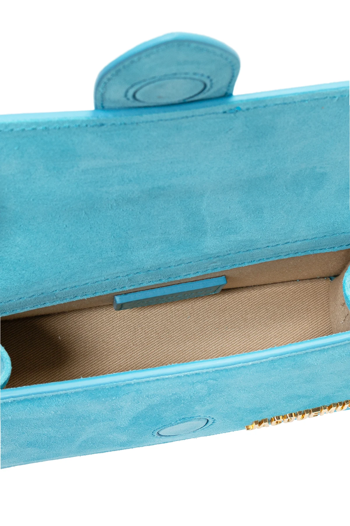 Torba ma prostokątny kształt z zaokrąglonymi krawędziami, co nadaje jej subtelnej finezji. Klapa zamykana na magnes, ozdobiona centralnym paskiem oraz złotymi literami marki "Jacquemus", dodaje jej wysmakowanego charakteru.