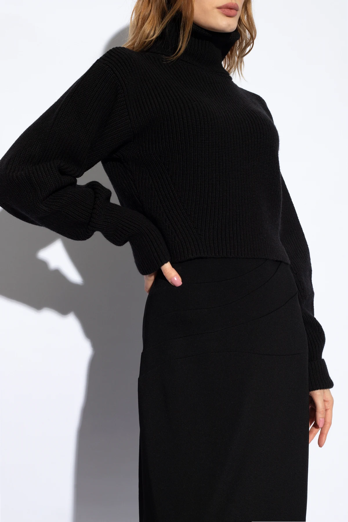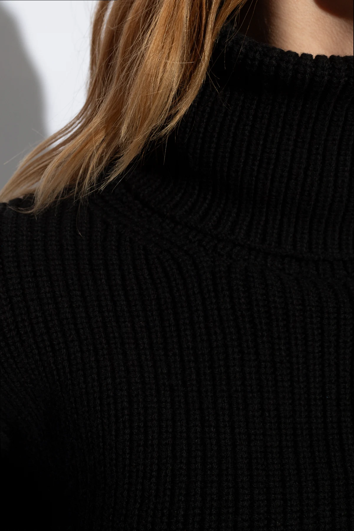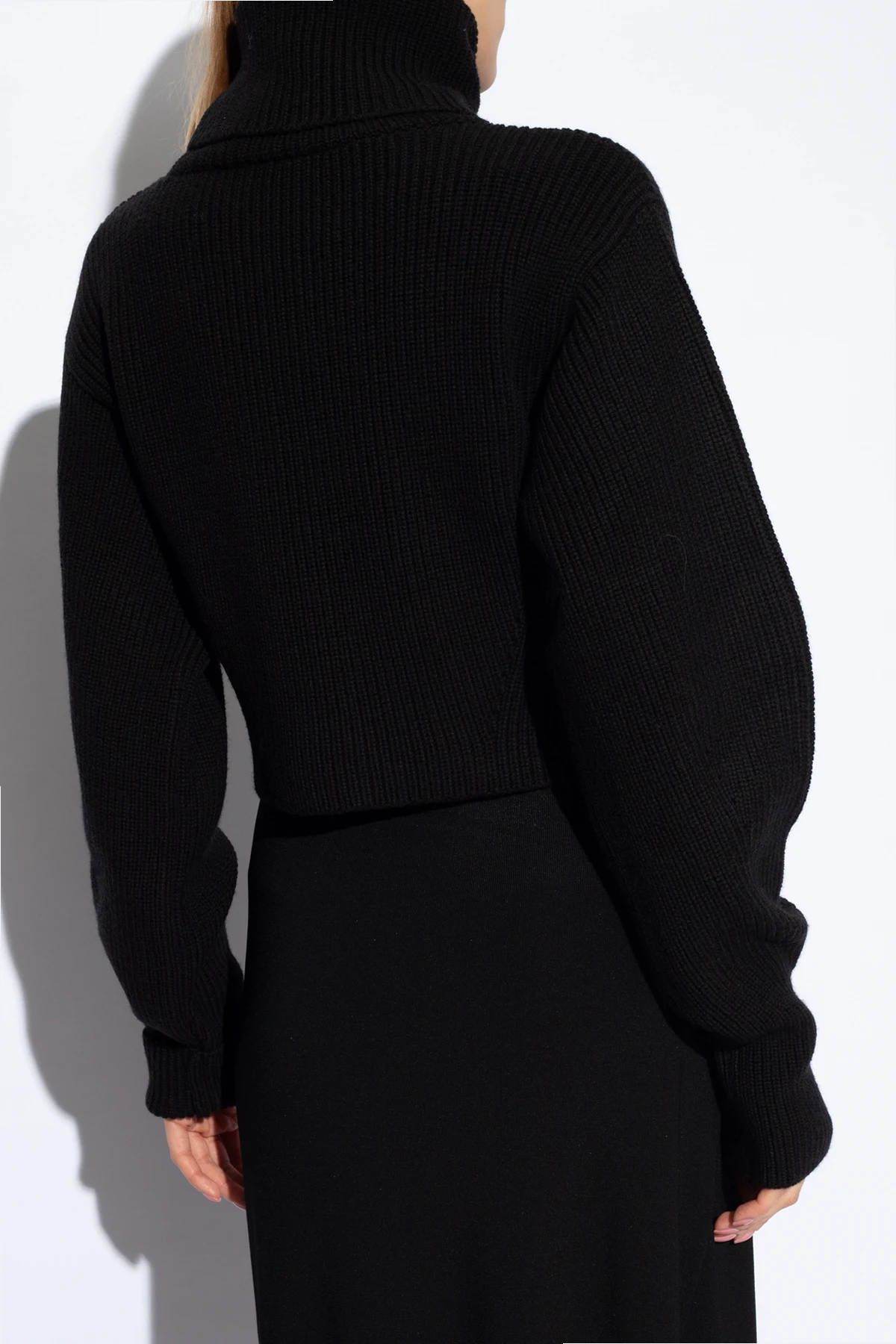 Krótki, czarny golf, model ‘Tokke’ Gauge81. Wykonany z wełny merynosów. Długie rękawy.