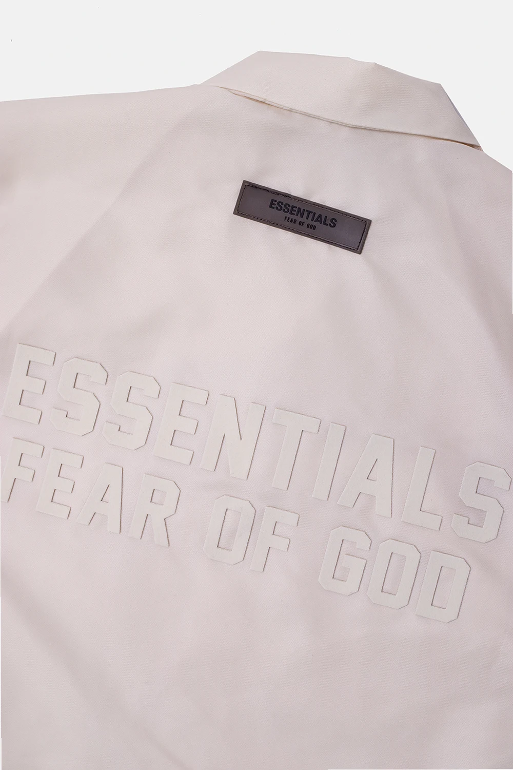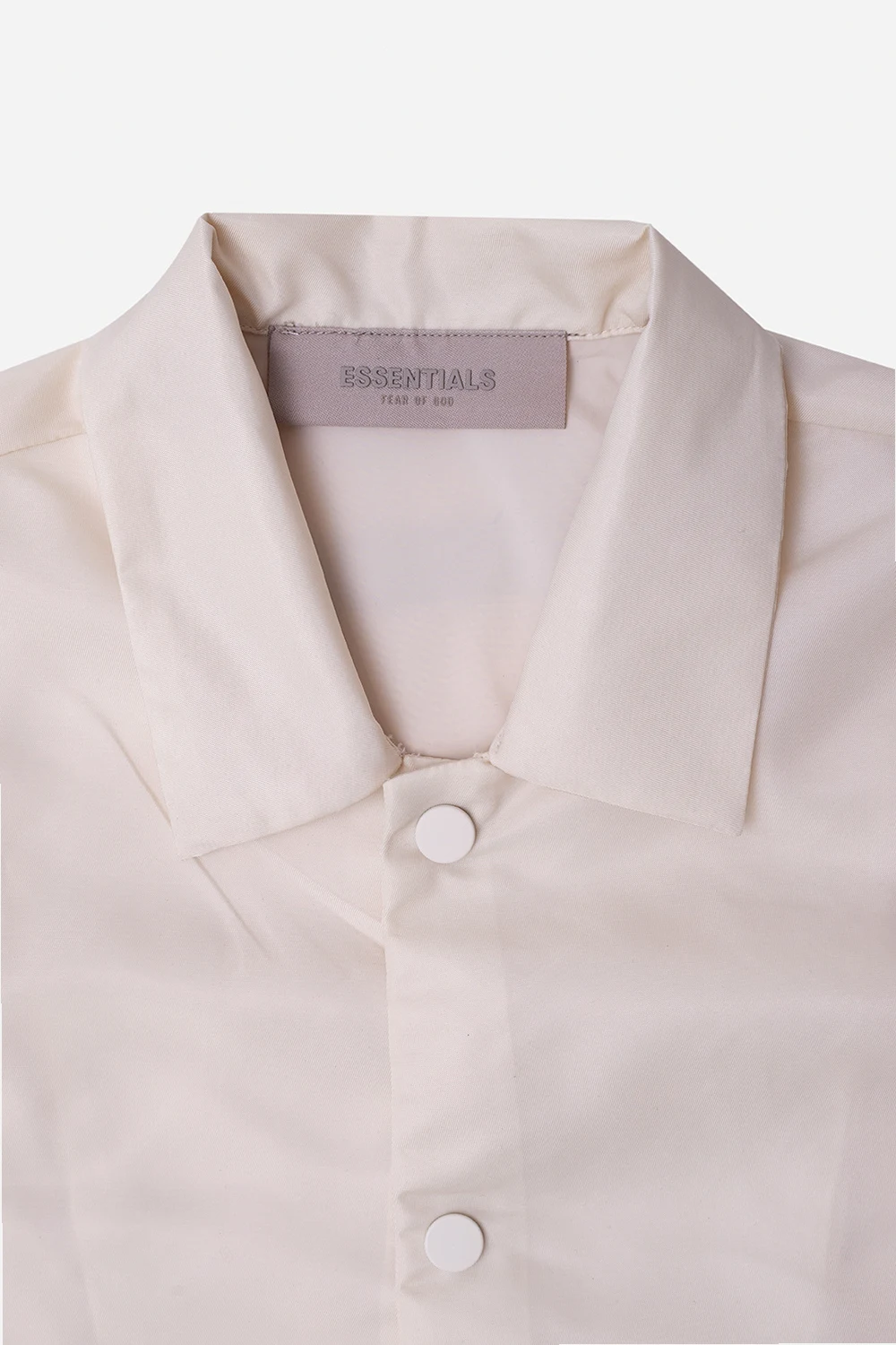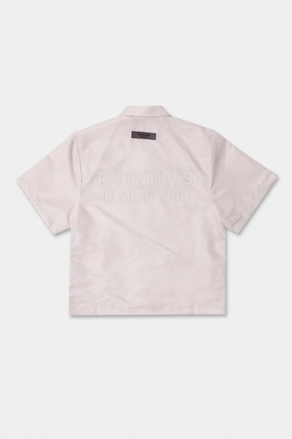 Kremowa koszula Fear Of God Essentials Kids. Zapinana na zatrzaski. Ozdobiona wzorem z logo. Krótkie rękawy.