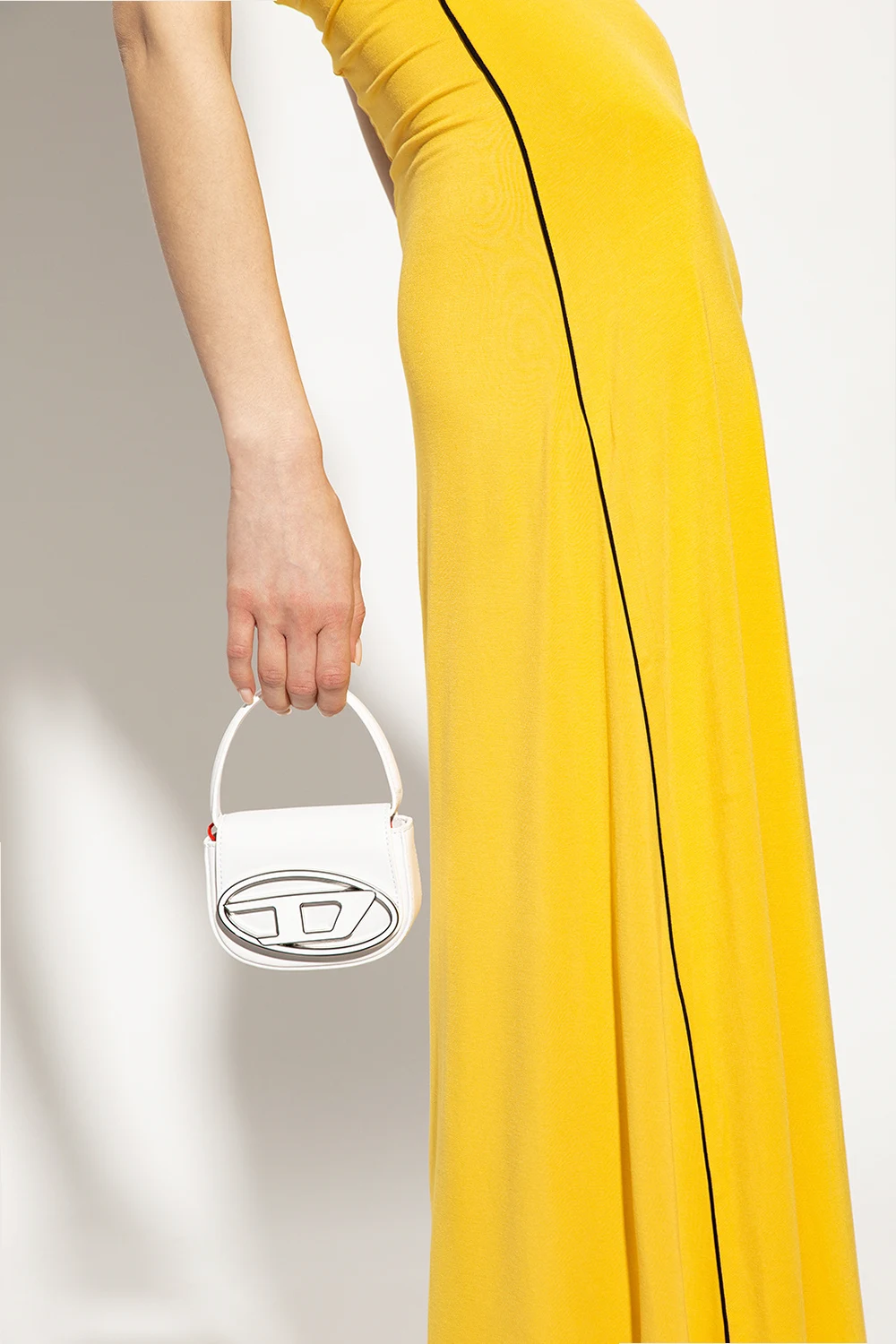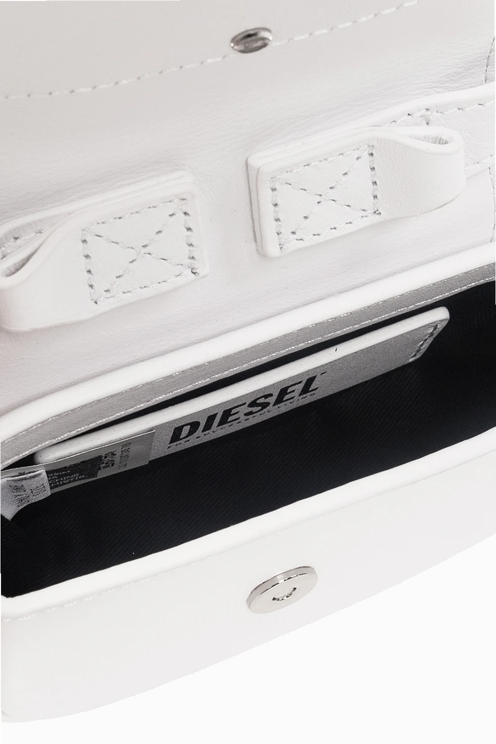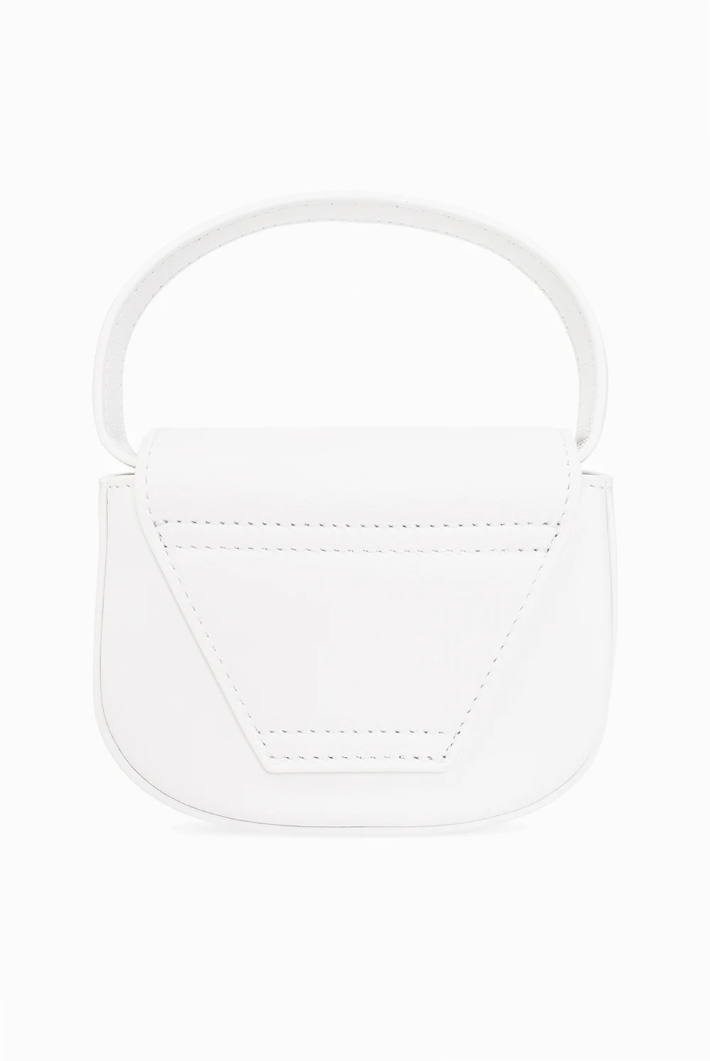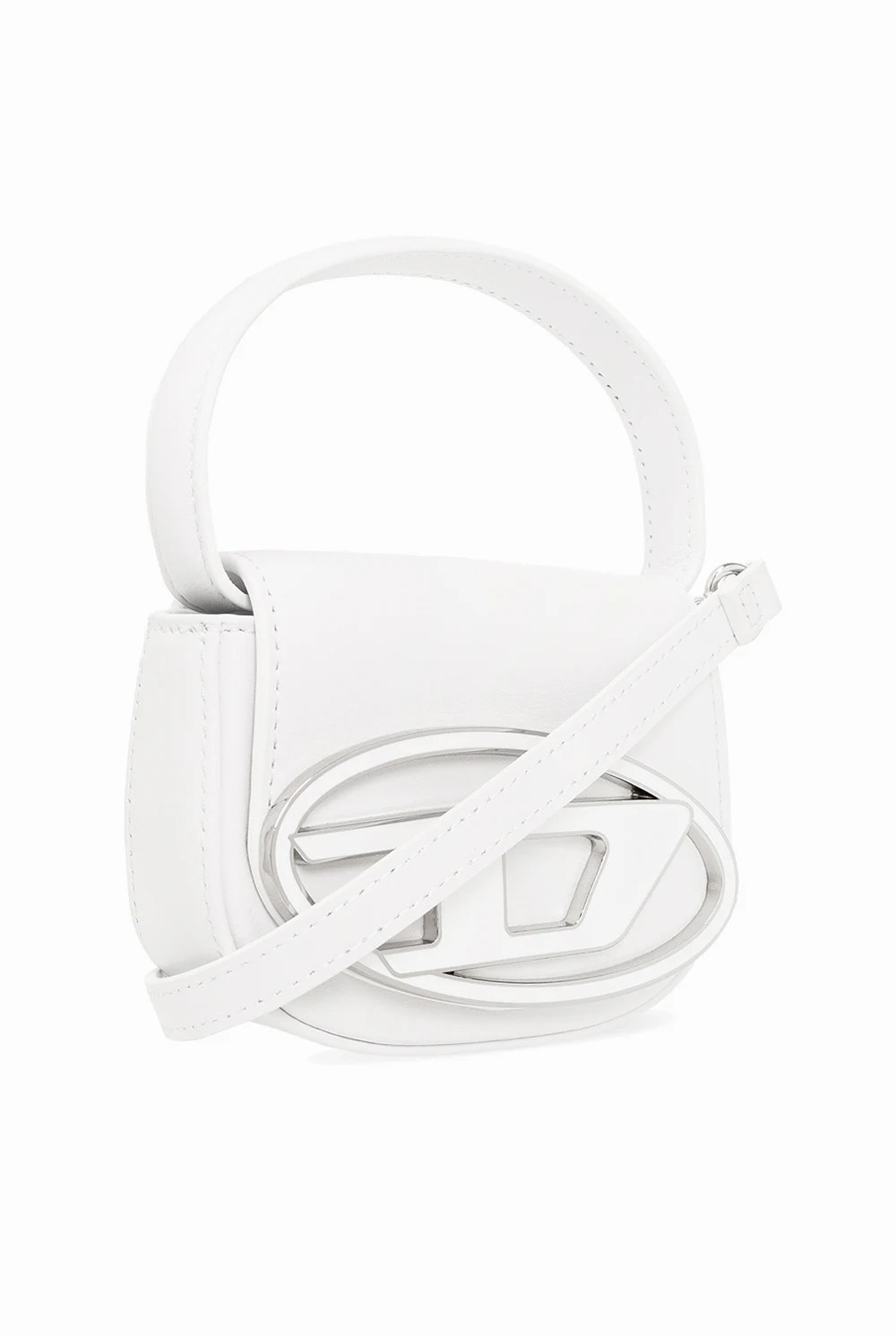 Biała torba na ramię, model ‘1DR XS’ Diesel. Wykonana ze skóry. Zamykana na magnetyczny zatrzask. Z przodu ozdobiona metalową aplikacją w kształcie logo. Półokrągła rączka. Odpinany pasek na ramię z możliwością regulacji długości. Wewnątrz komora. Metalowe elementy w kolorze srebrnym.