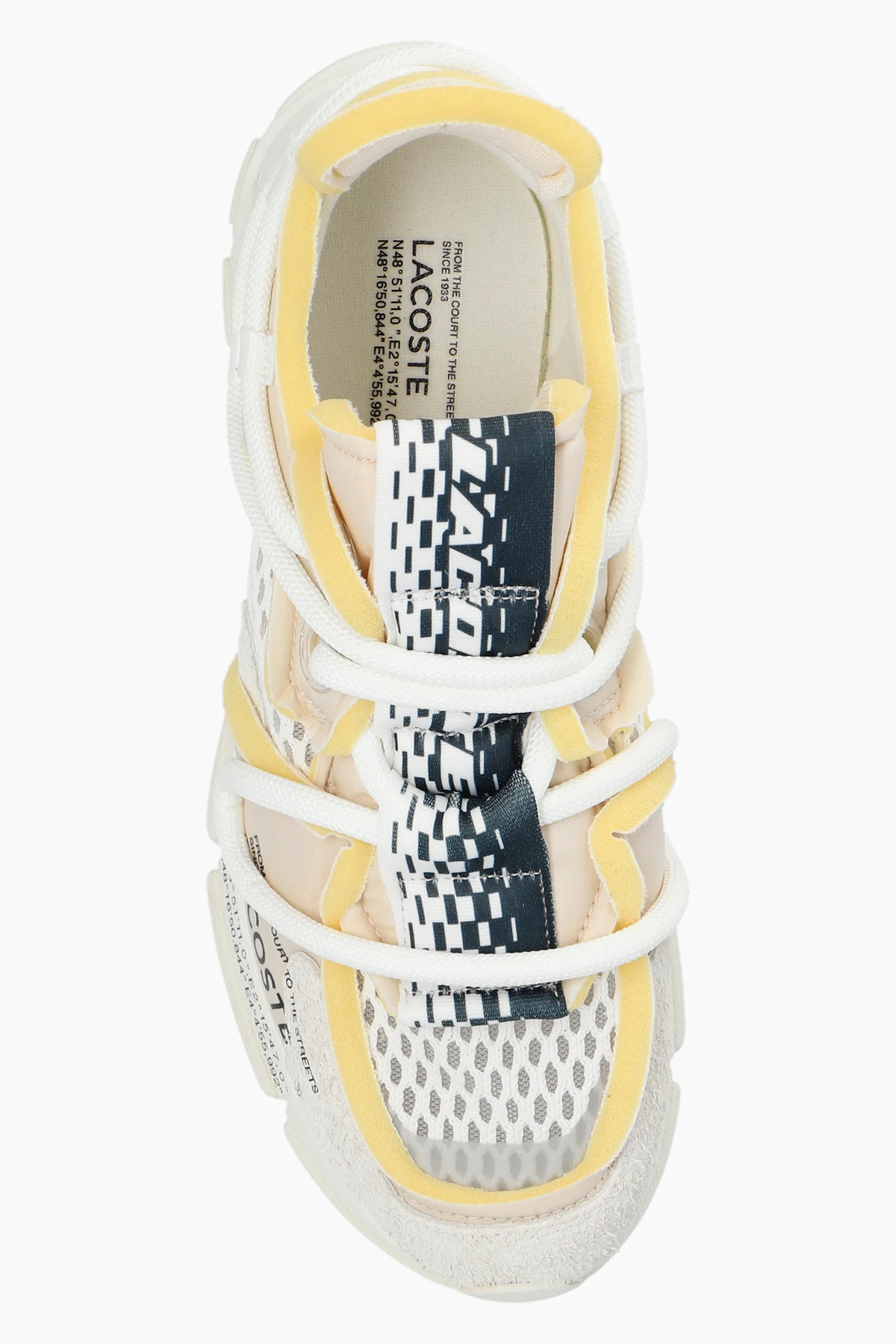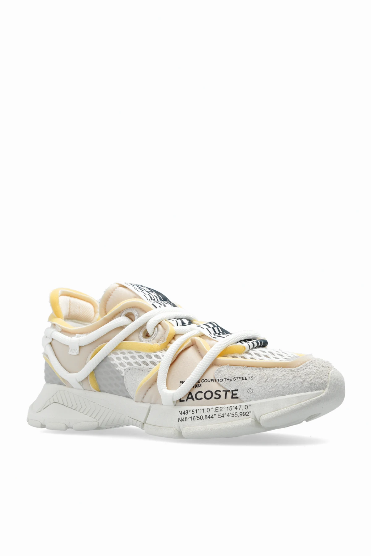 Zapraszamy do odkrycia butów sportowych ‘L003 Active Runway’ od renomowanego projektanta Lacoste , które łączą w sobie elegancję z funkcjonalnością. Dominujący kolor biały, dopełniony subtelnie przez akcenty beżowe i szare, nadaje tym obuwiom uniwersalny charakter. Złożona konstrukcja, łącząca różnorodne tekstury takie jak przewiewne siatkowe panele i zamszowe wstawki, prezentuje niebanalną estetykę.