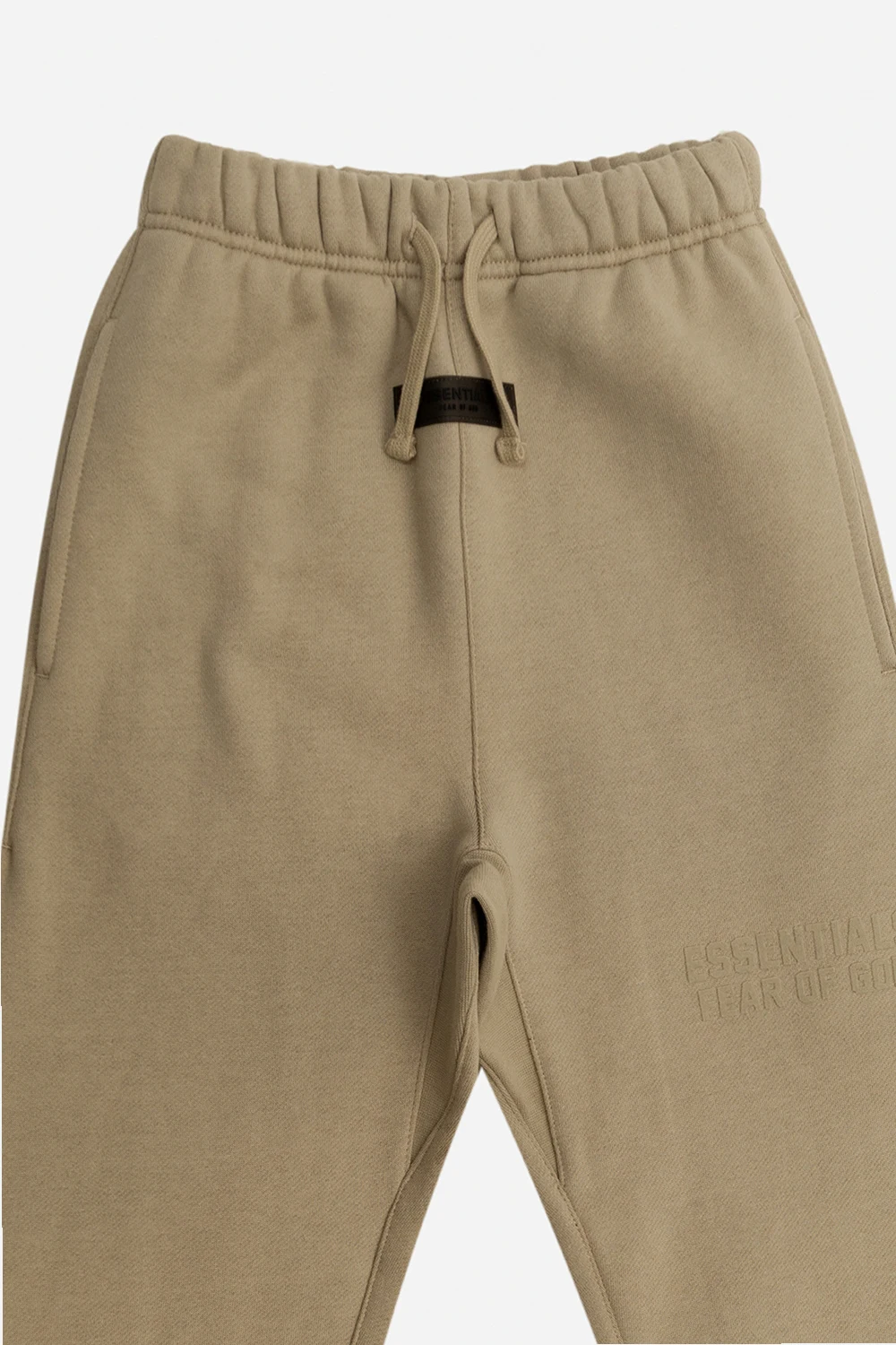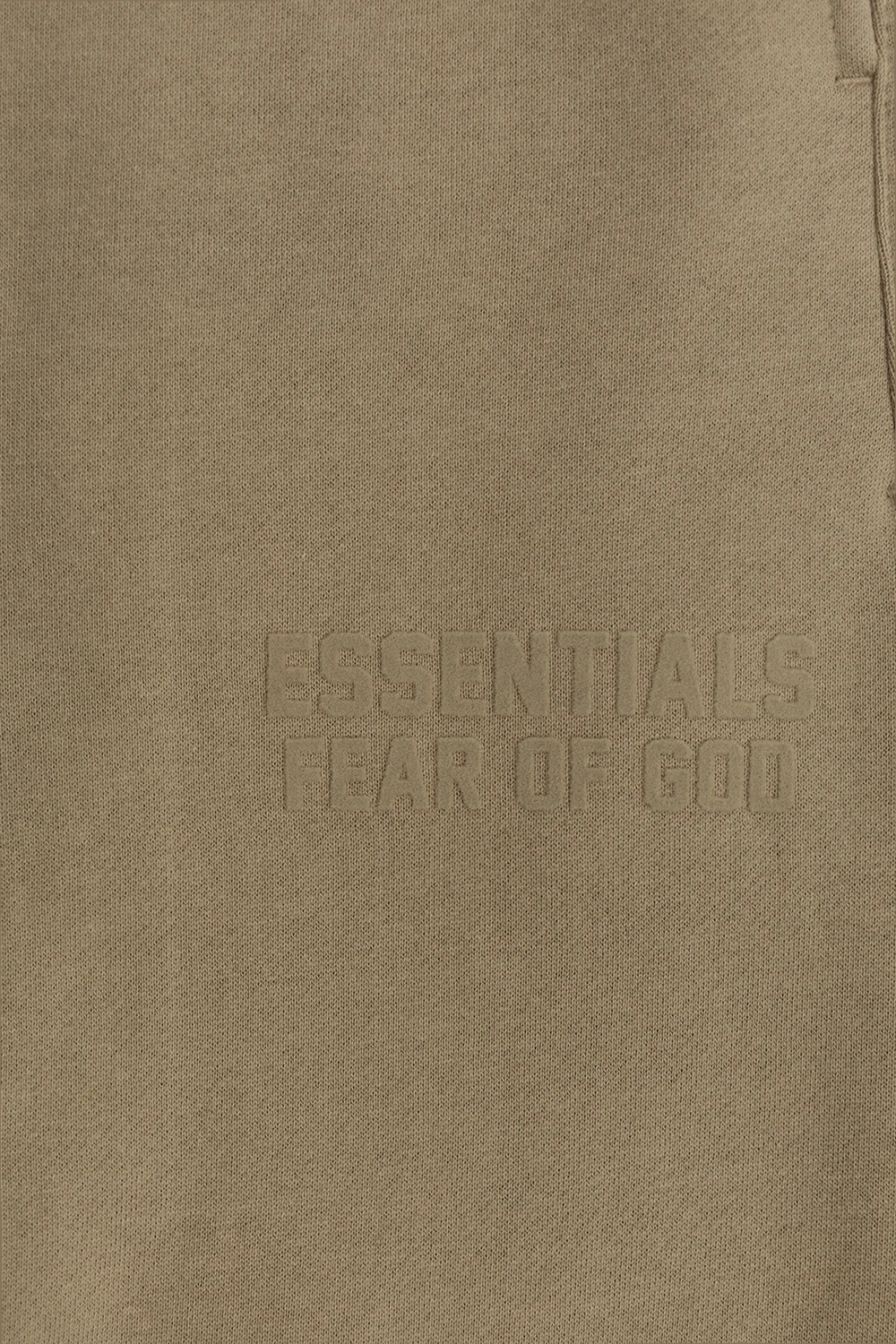 Szare spodnie dresowe Fear Of God Essentials Kids. Wykonane z bawełny. W pasie wszyta guma ściągana trokami. Ozdobione naszywką z logo. Dwie wsuwane kieszenie. Długie nogawki zakończone ściągaczem.