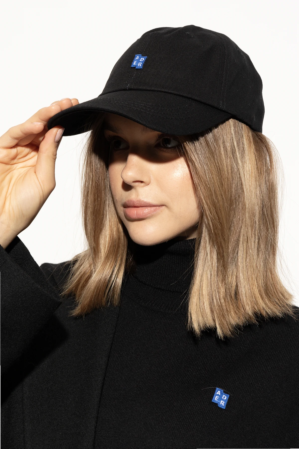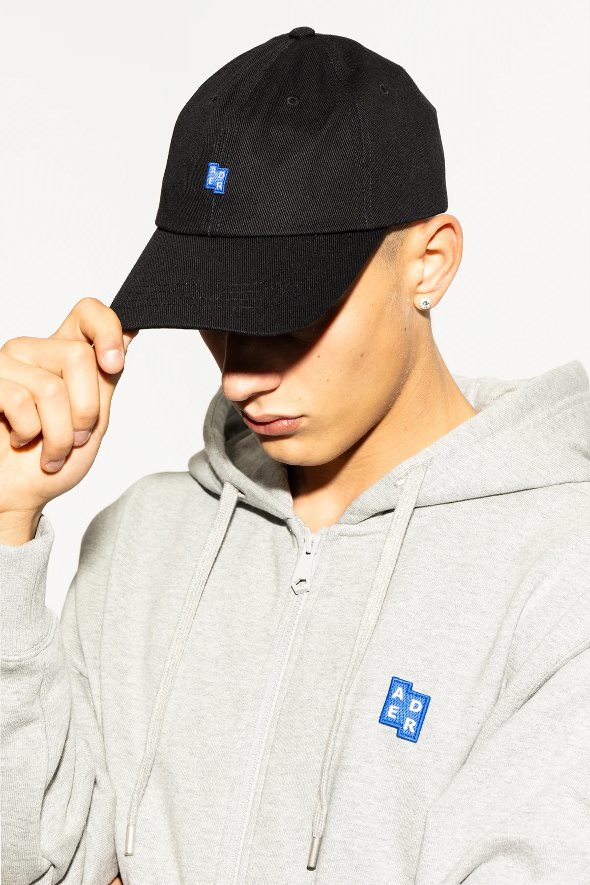 Charakterystycznym elementem jest małe, kwadratowe logo w kolorze niebieskim z białymi literami "ADER" umieszczone na przodzie. Czapka posiada klasyczny kształt z lekko wygiętym daszkiem, który dodaje jej uniwersalnego charakteru.