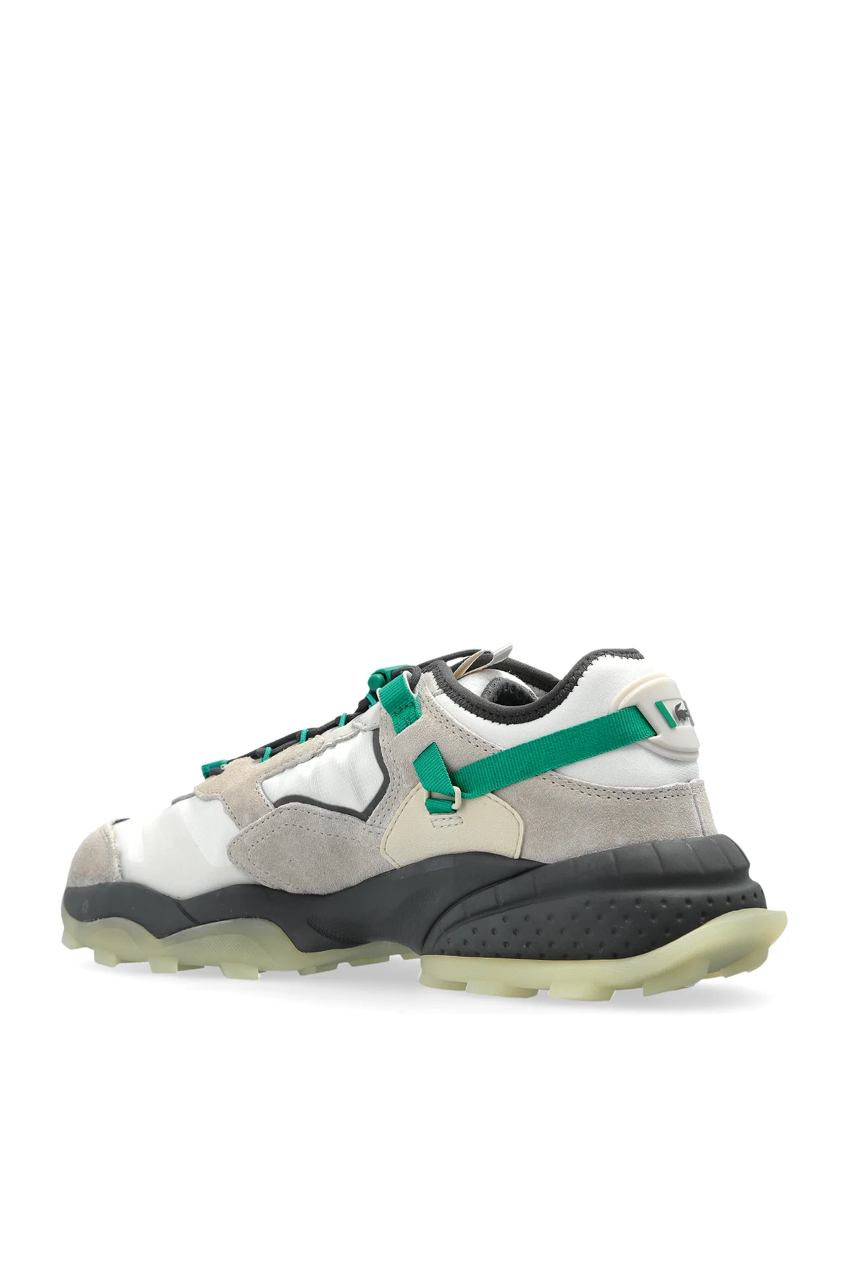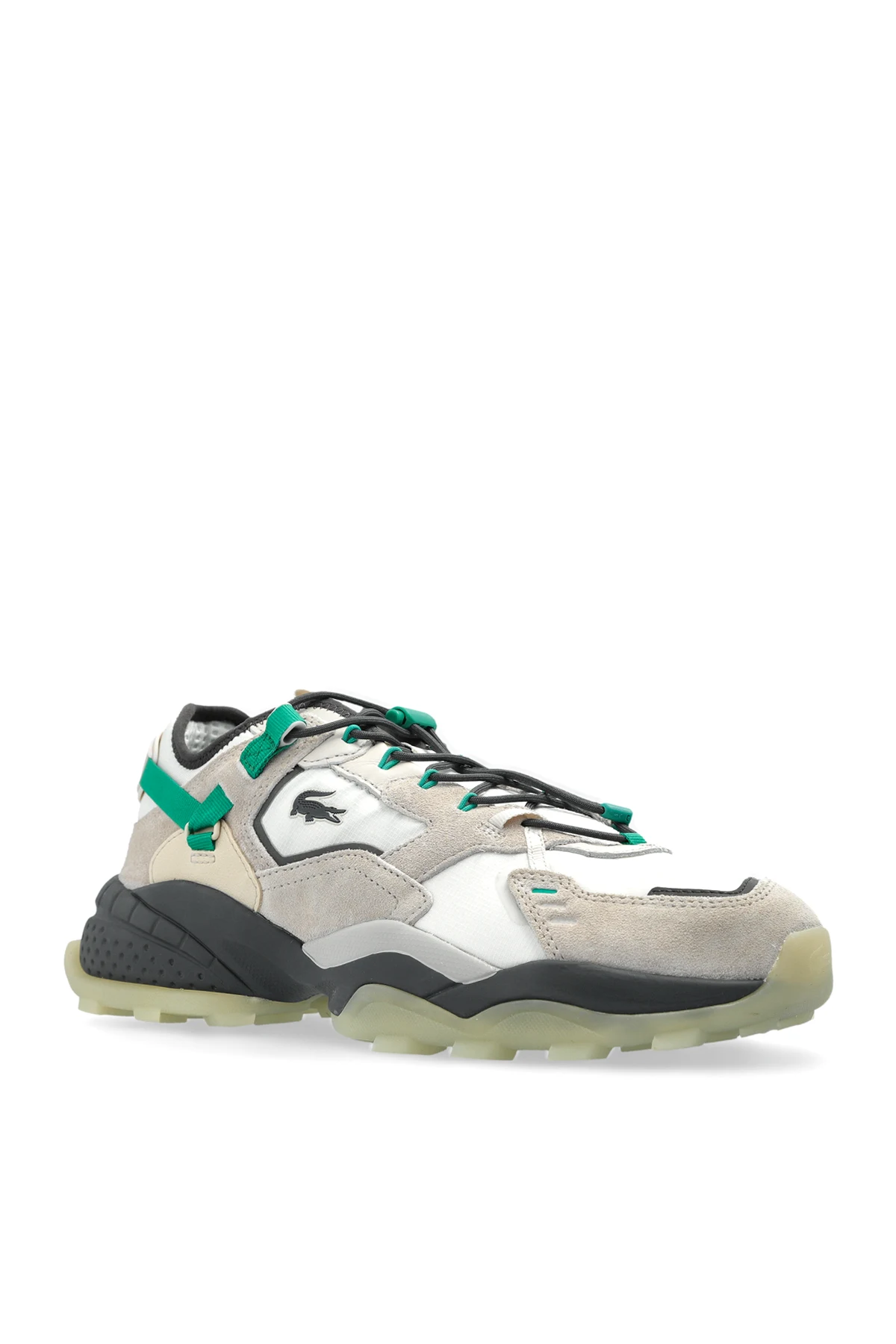 Detale w postaci sznurowadeł z zielonymi akcentami oraz logo Lacoste zdobiącego język i bok butów podkreślają ich ekskluzywny charakter. Produkty tej marki, od pokoleń łączące francuskie dziedzictwo sportowe z nowoczesną elegancją, są symbolem wyrafinowanego stylu i funkcjonalności.