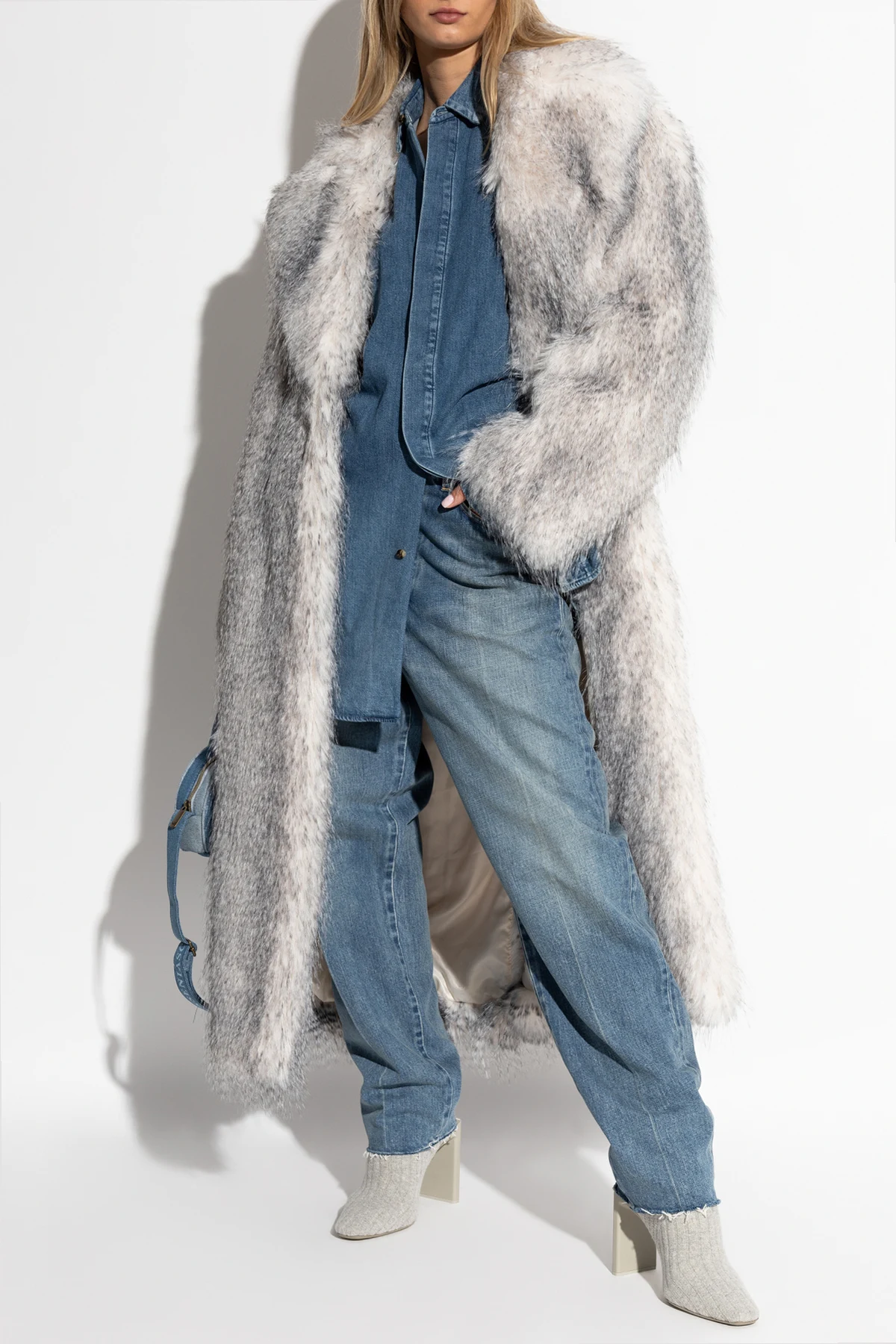 Jeansy mają krój typu "boyfriend" , luźniejszy w biodrach i nogawkach, co nadaje im casualowy, nieco oversize'owy wygląd. Wykonane z klasycznego, nieelastycznego denimu w niebieskim kolorze, mają subtelne przetarcia, które dodają im stylu vintage.