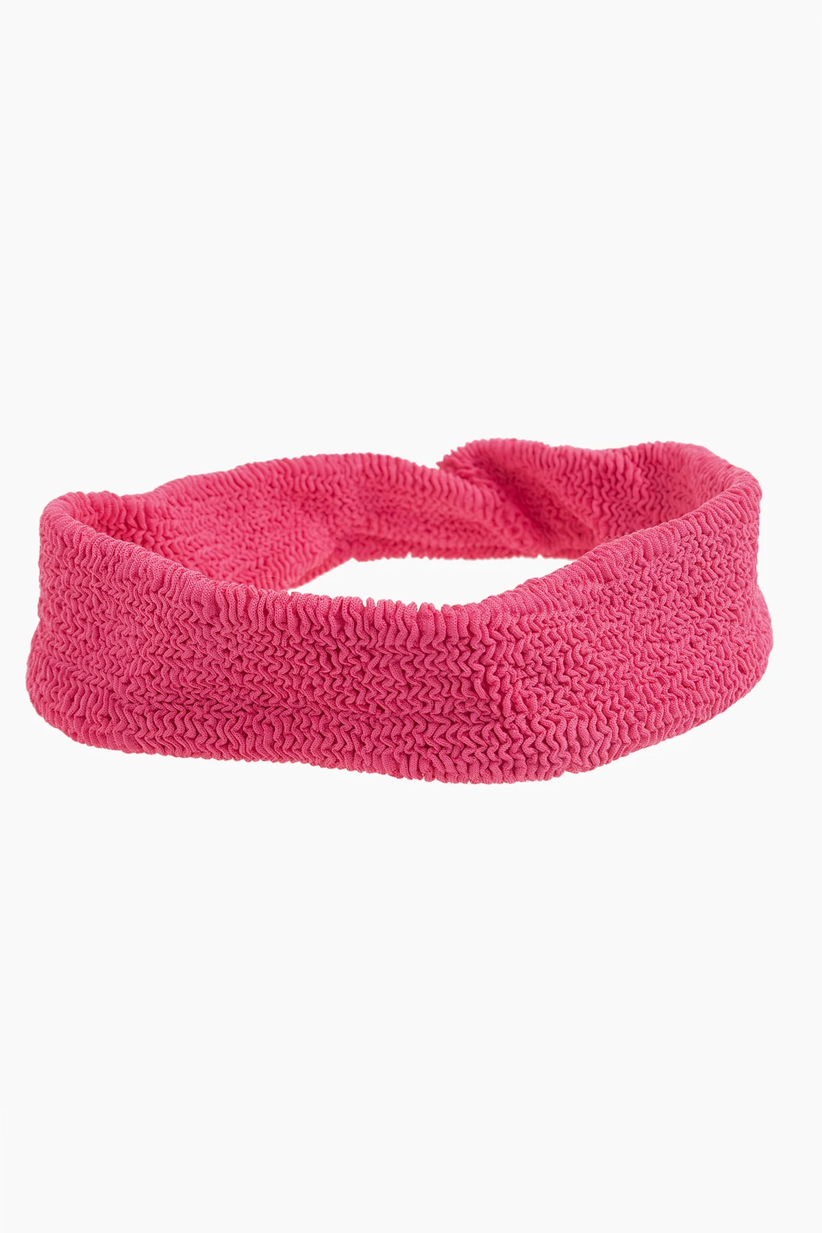 Różowa opaska na głowę Bond-Eye. Wykonana z materiałów pochodzących z recyklingu o specjalnej fakturze.