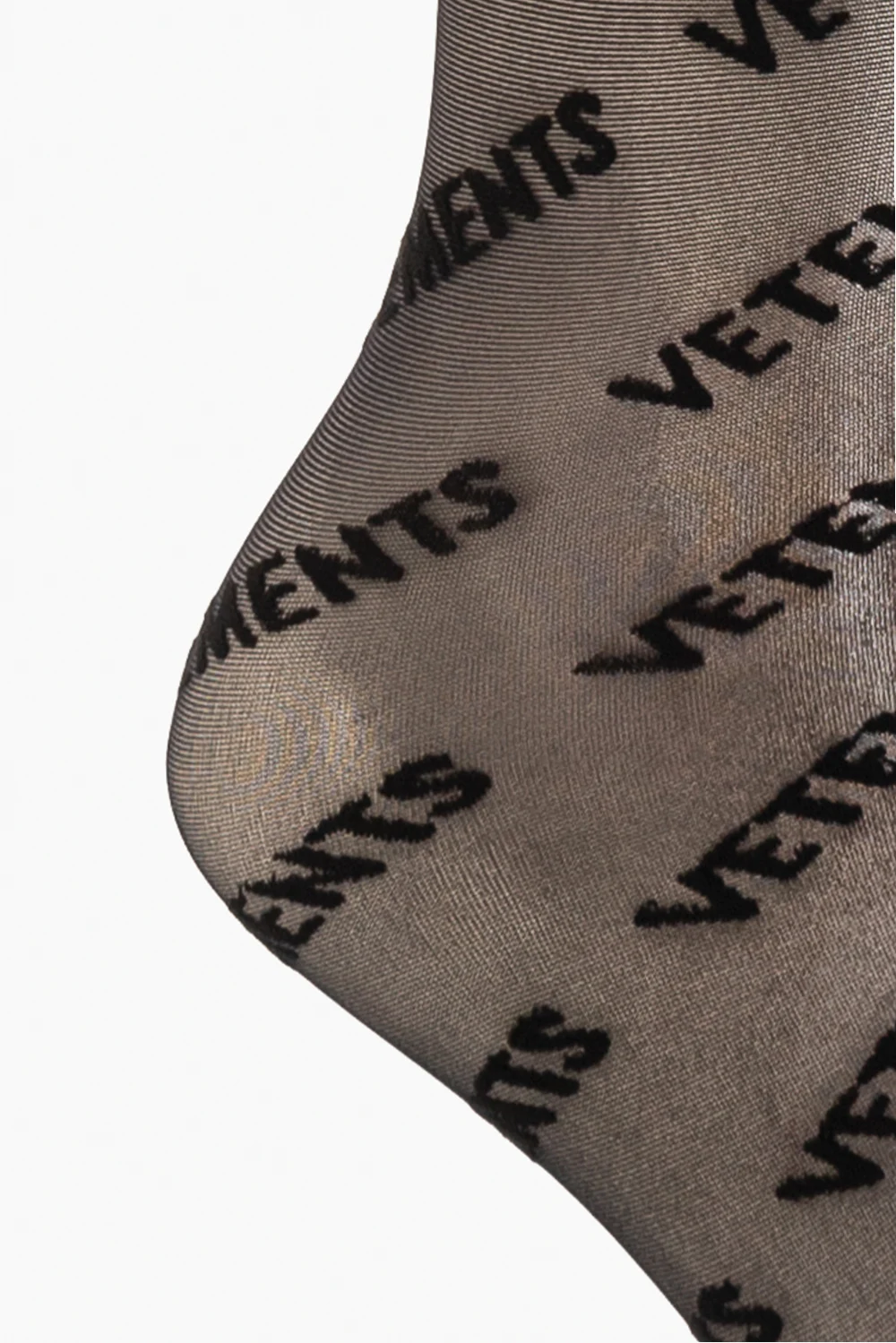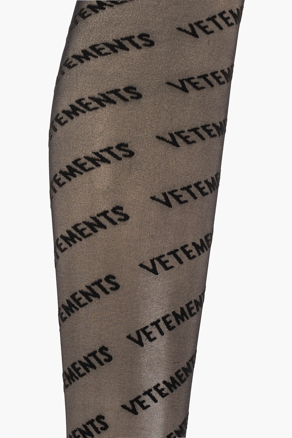 Czarne rajstopy VETEMENTS. W talii wszyta guma. Ozdobione wzorem z logo.
