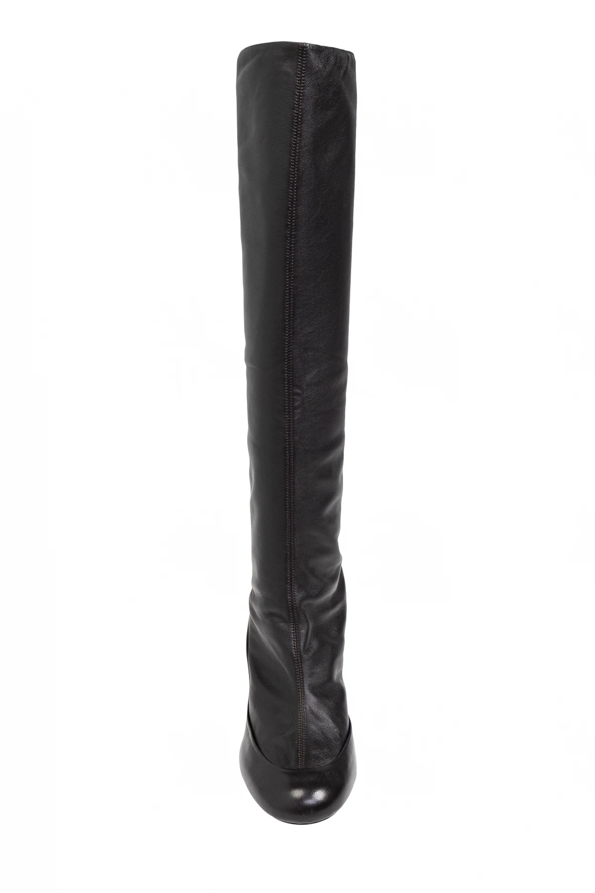 Przedstawiamy Państwu ekskluzywne skórzane kozaki typu ‘Glove’ od marki Lemaire . Te wyjątkowe buty, sięgające do kolan, zachwycają elegancją i minimalistycznym designem, który jest kwintesencją nowoczesnego stylu. Wykonane z najwyższej jakości skóry, gwarantują trwałość i komfort noszenia.