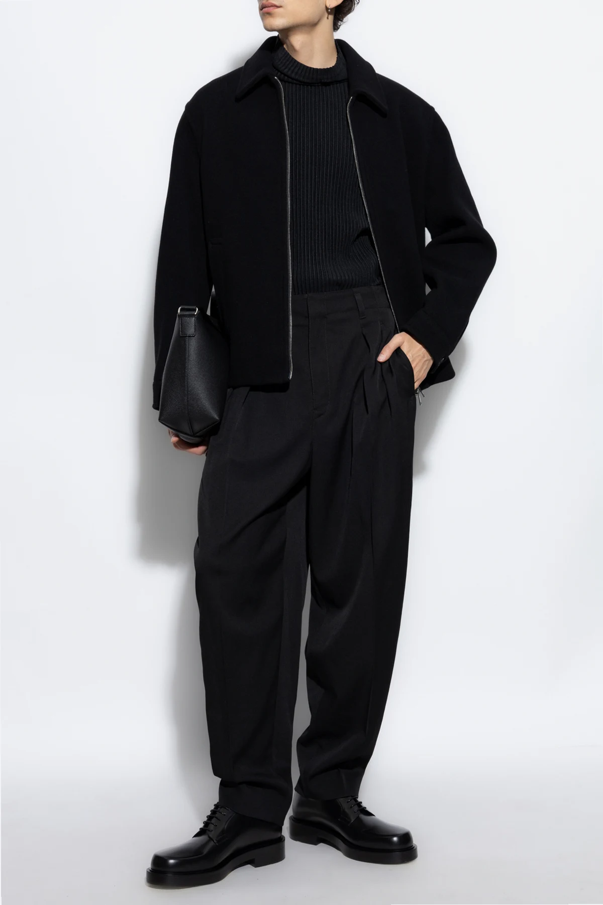 Głęboka czerń dodaje uniwersalności, czyniąc te spodnie idealnym wyborem zarówno do formalnych, jak i półformalnych stylizacji. Połączenie minimalistycznej formy z wyrafinowanym wzornictwem to cechy charakterystyczne kolekcji Lemaire .