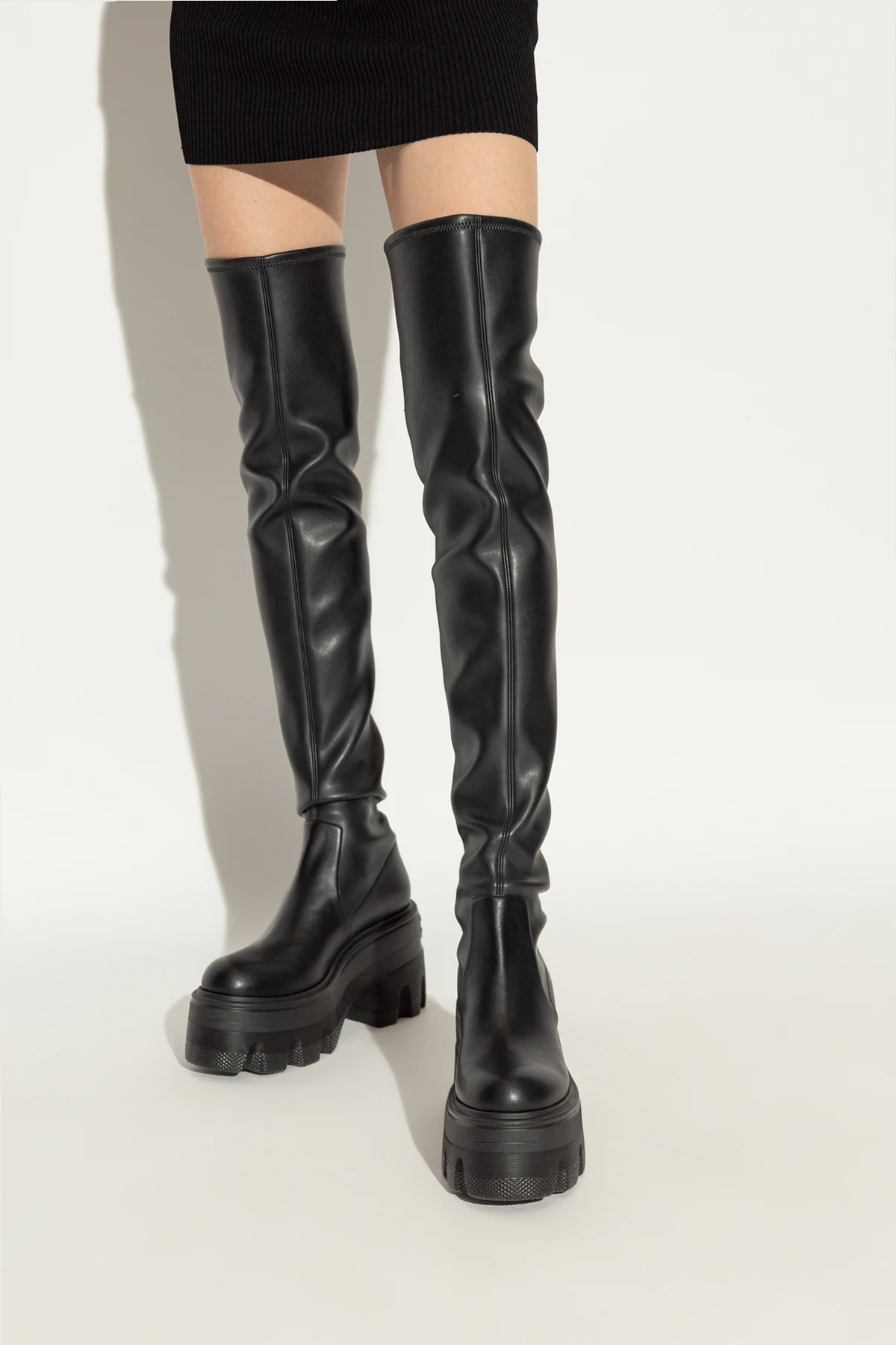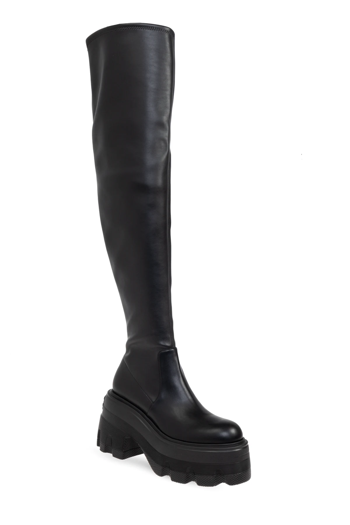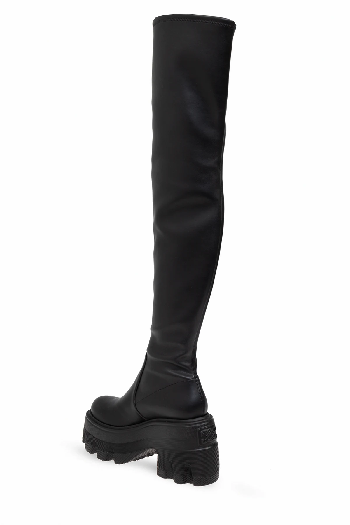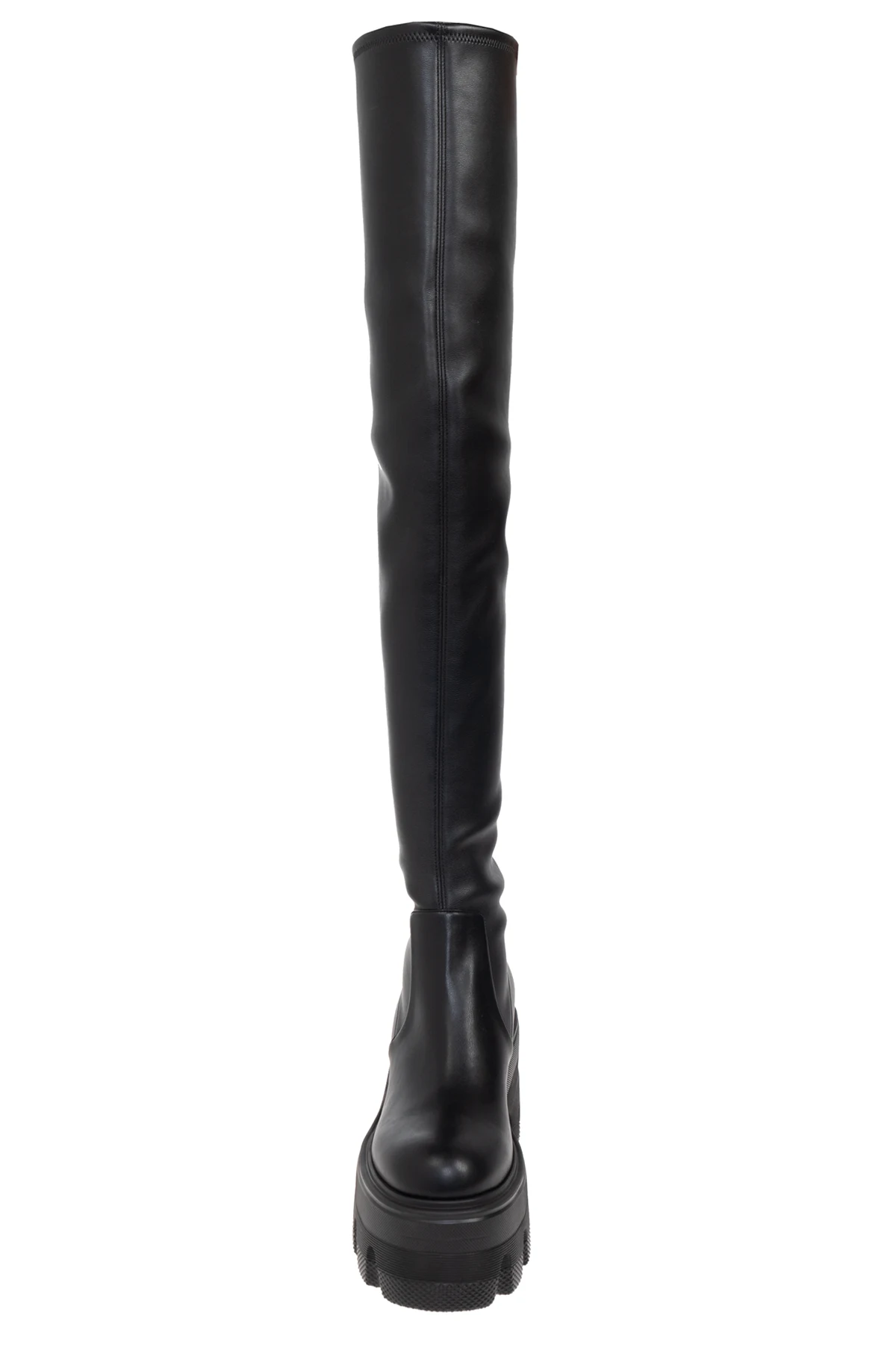 Ich unikatowy design charakteryzuje się długą, luźno dopasowaną cholewką, sięgającą powyżej kolan, co dodaje sylwetce smukłości i wydłuża nogi. Solidne, gumowe podeszwy z wyraźnym bieżnikiem gwarantują doskonałą przyczepność i trwałość, a platformowy obcas łączy w sobie funkcjonalność z najnowszymi trendami mody, subtelnie podkreślając każdą stylizację.